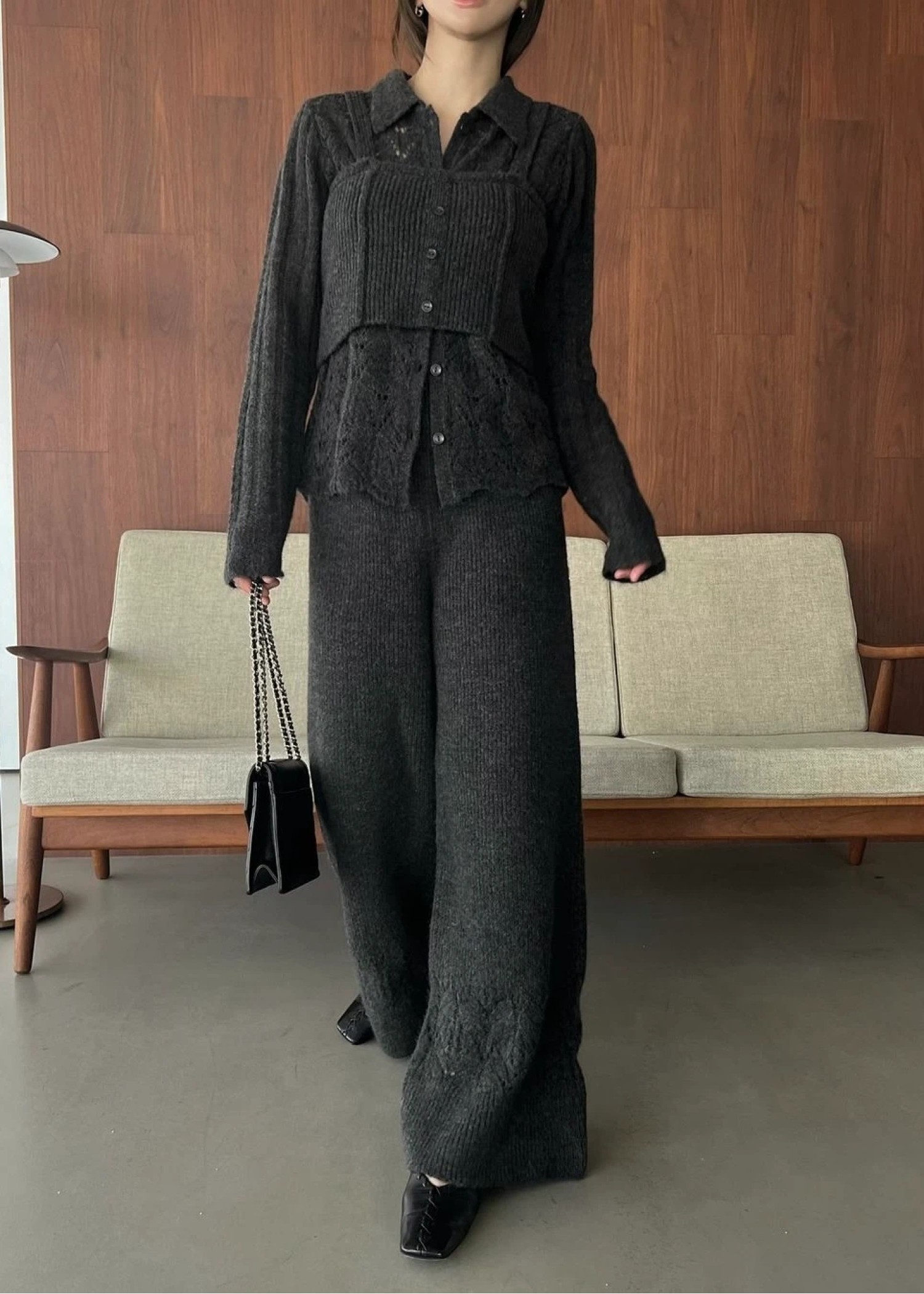 switching hem sheer crochet knit PT