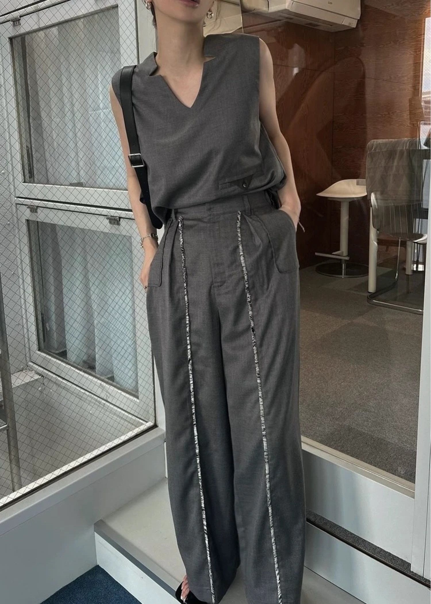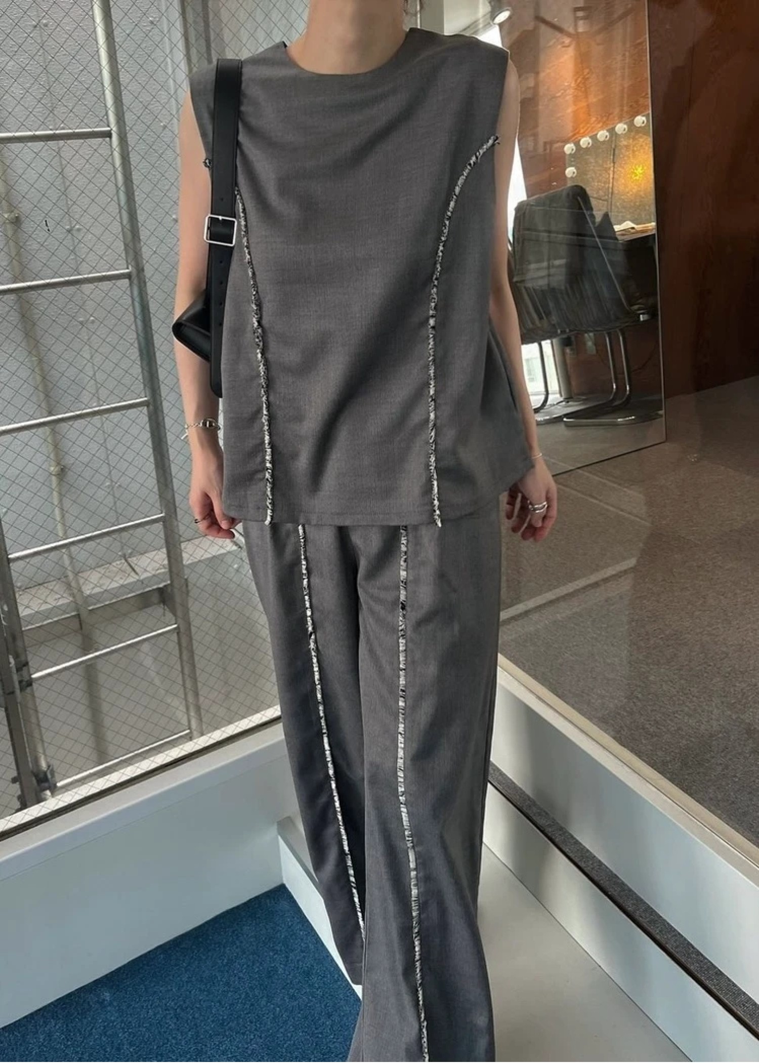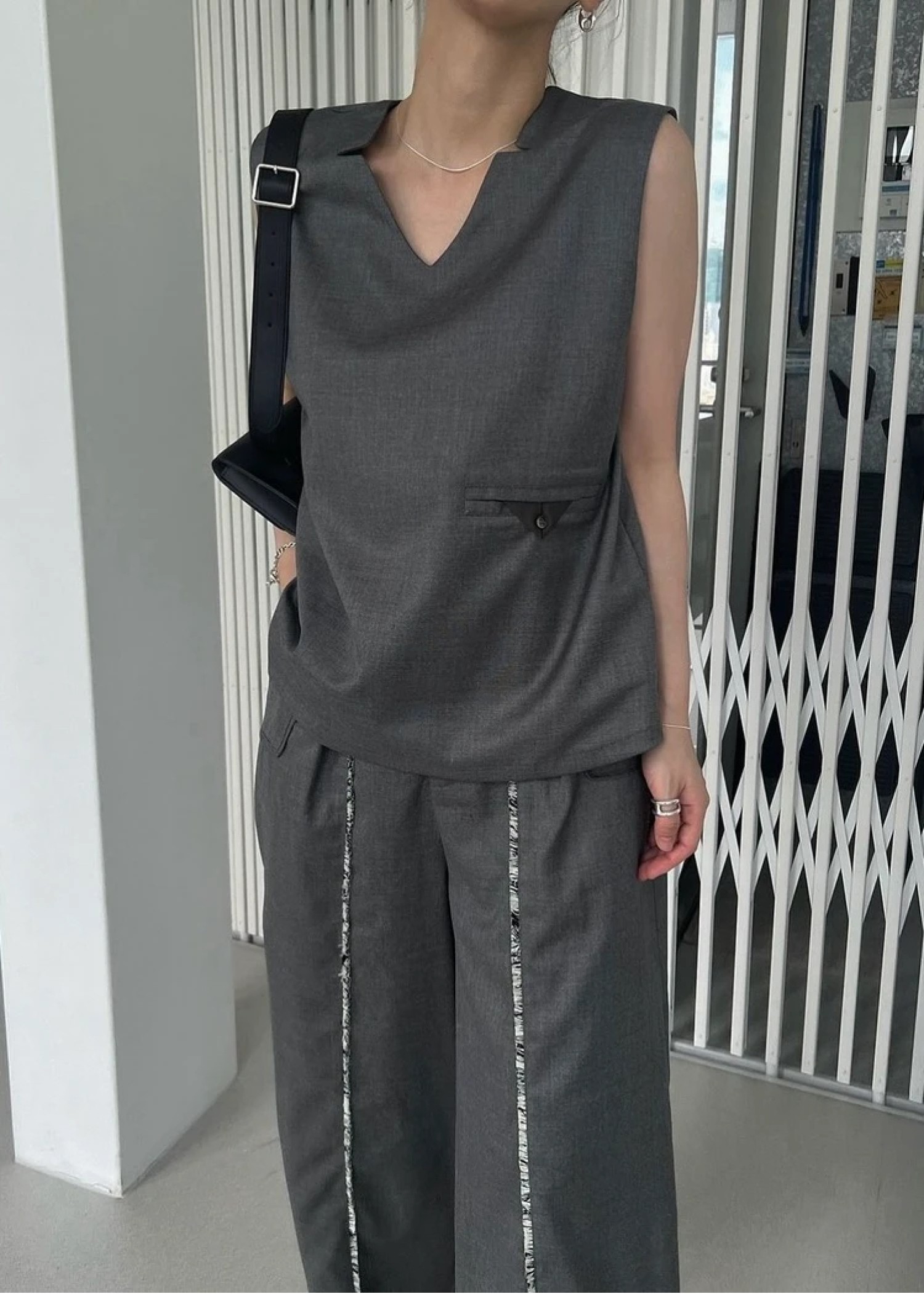 2way incision neck fringe no sleeve tops