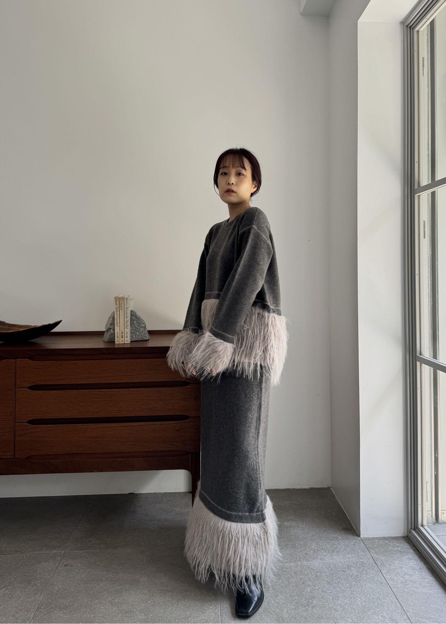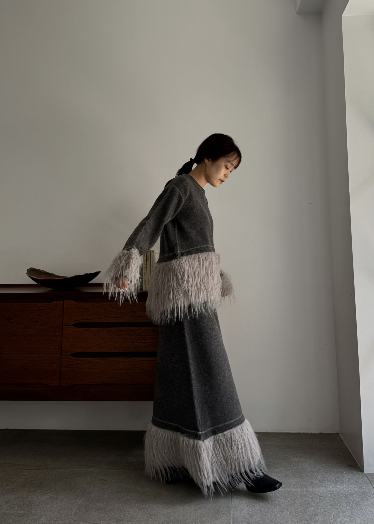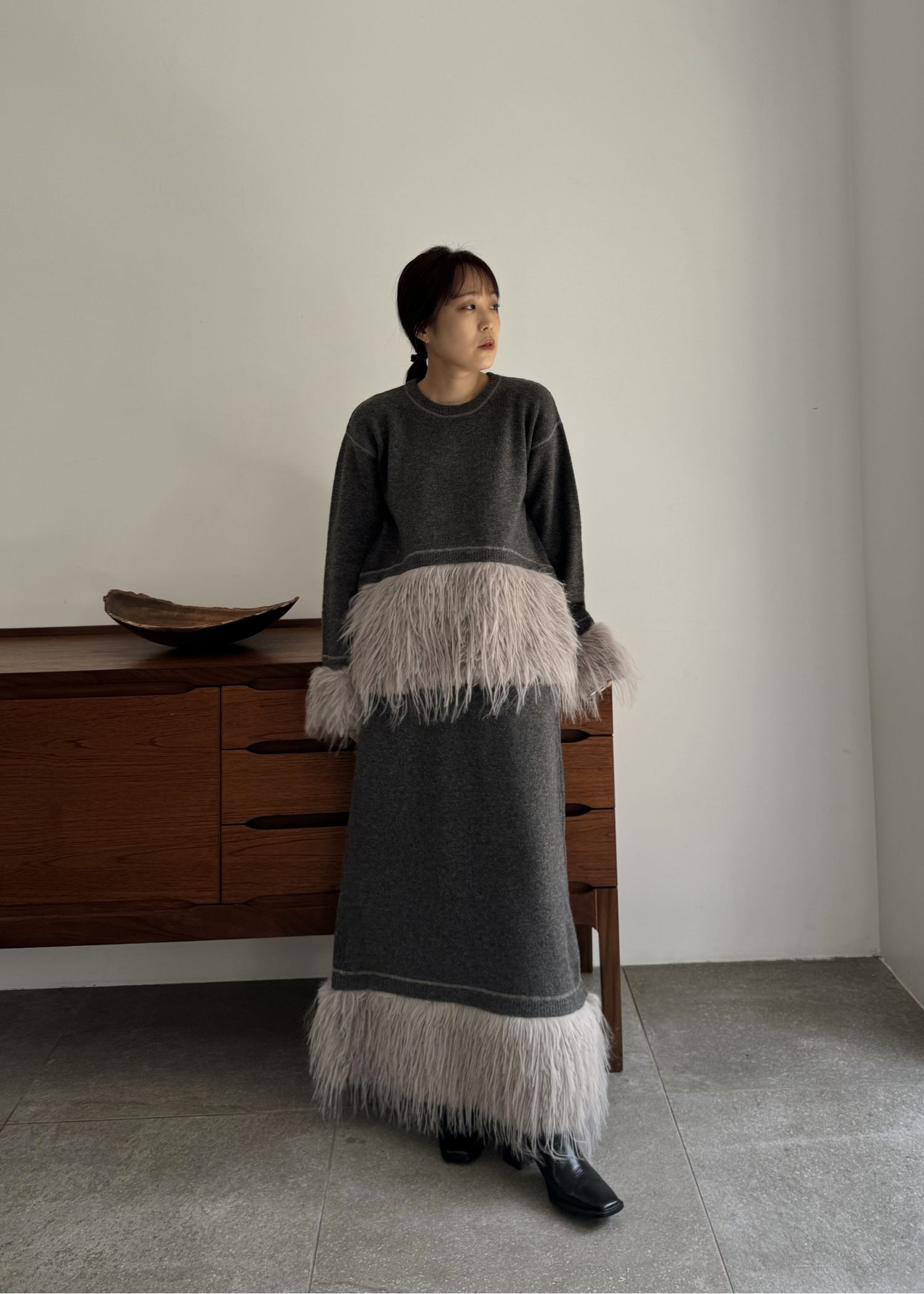 round hem partial fur gently knit