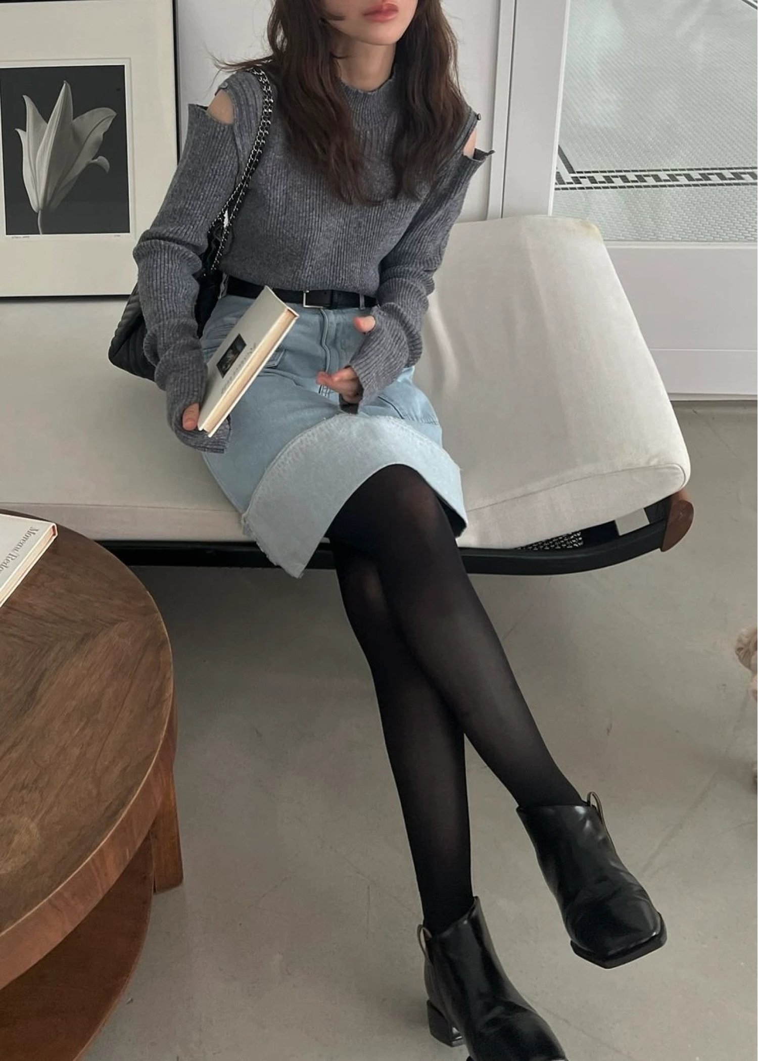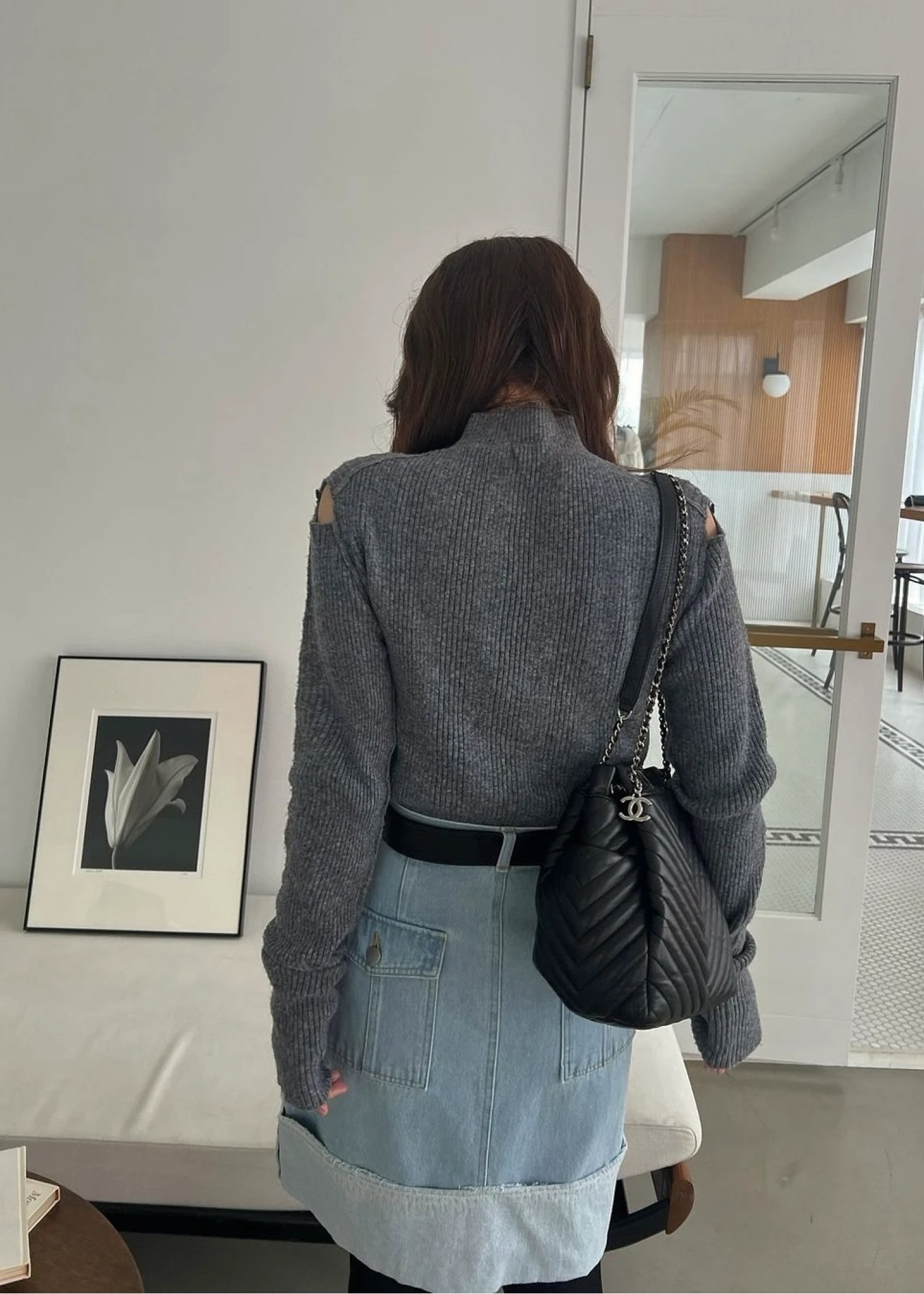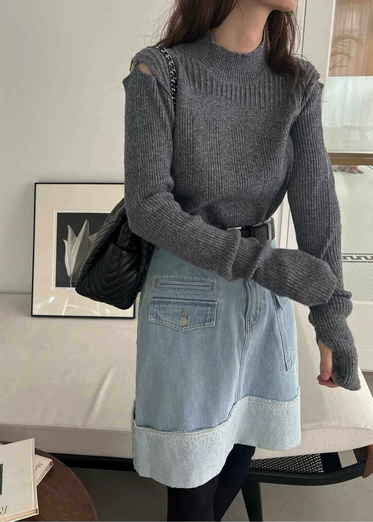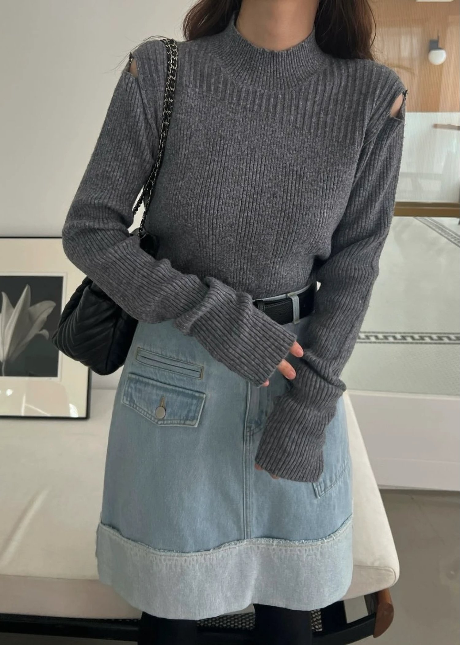 shoulder notch finger hole rib knit