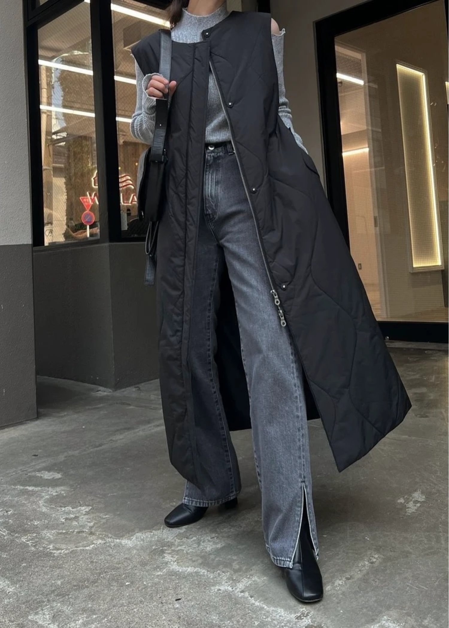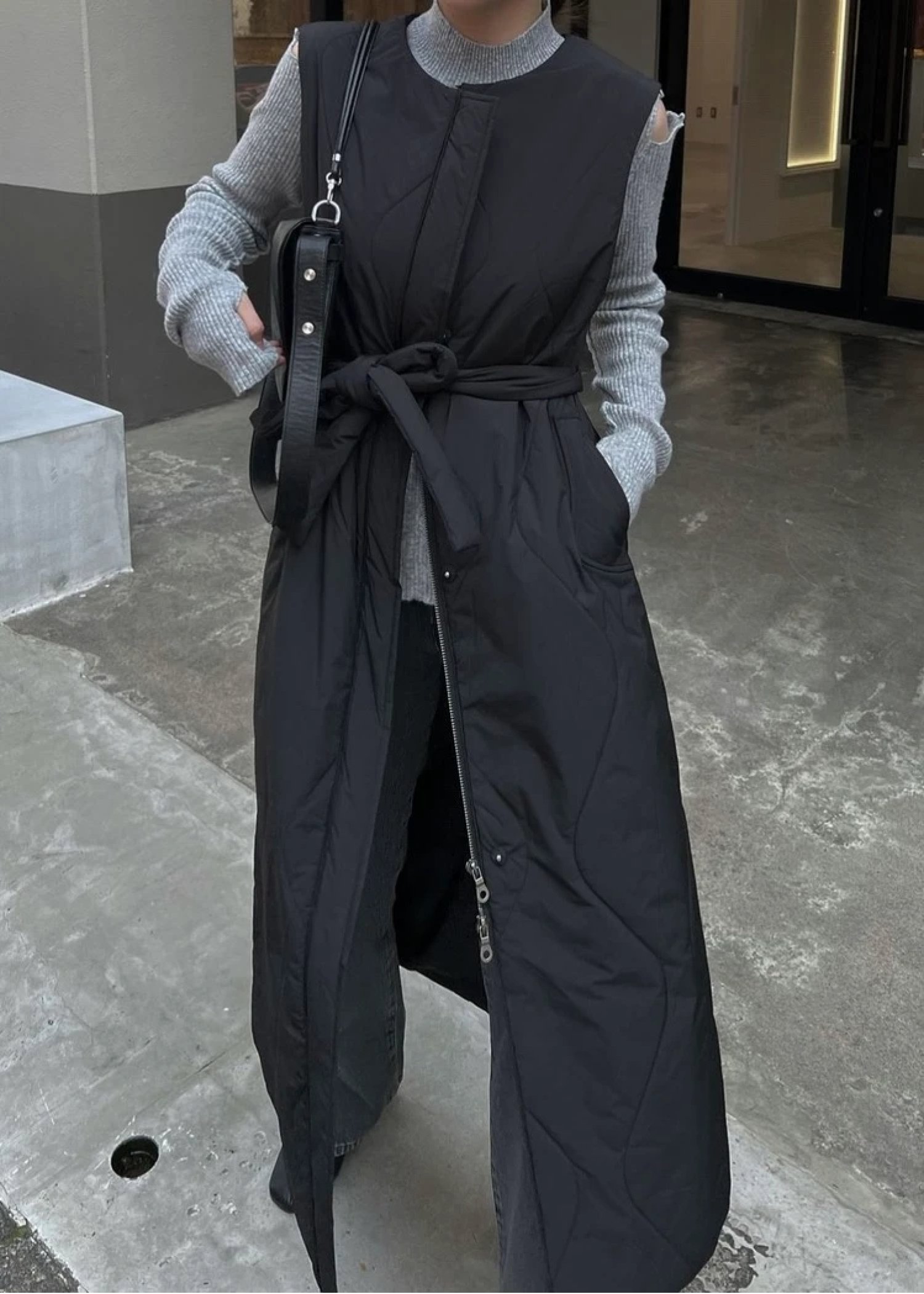 short frill jacket × wave quilting long gilet set coat