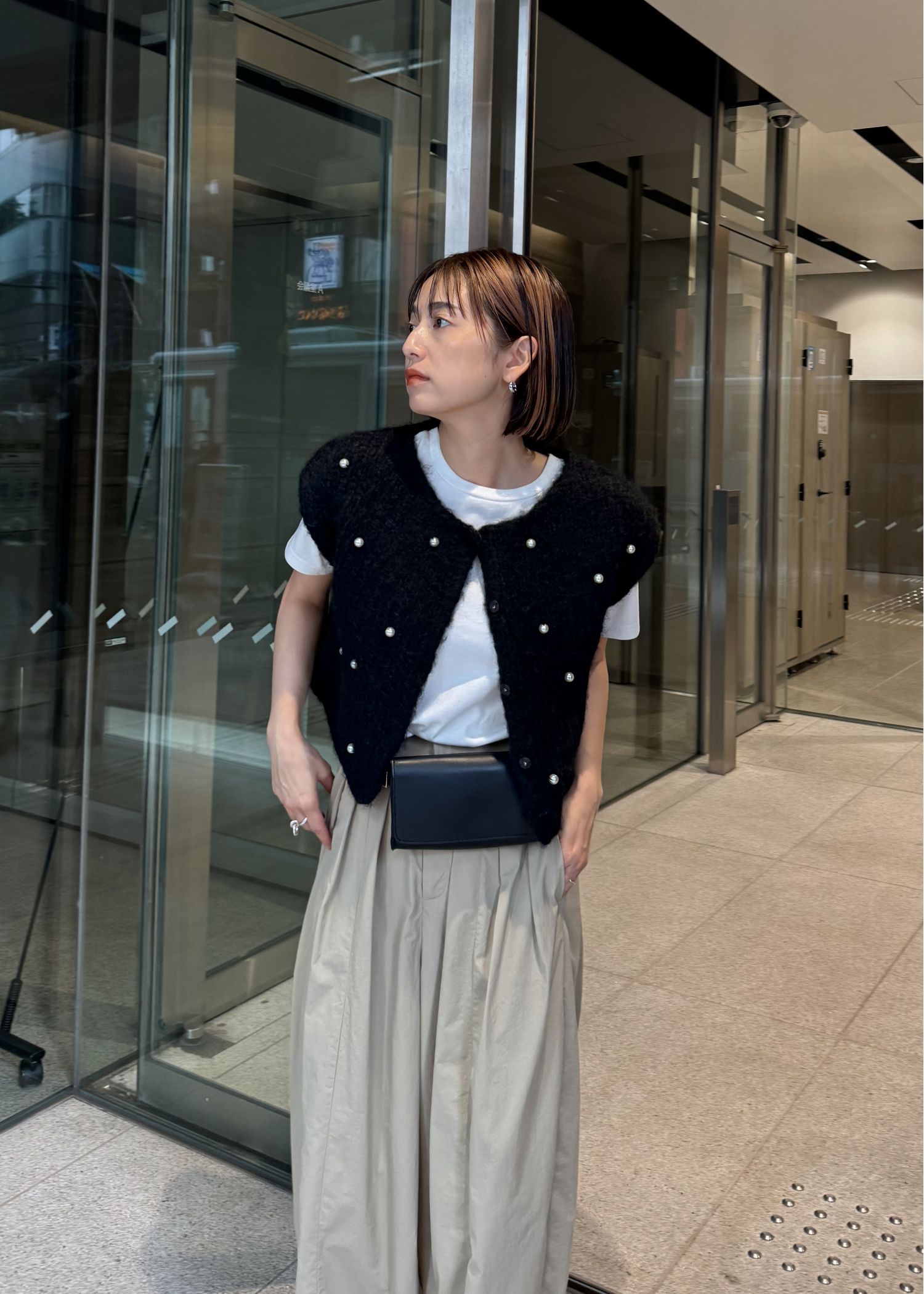 handmade random pearl knit vest