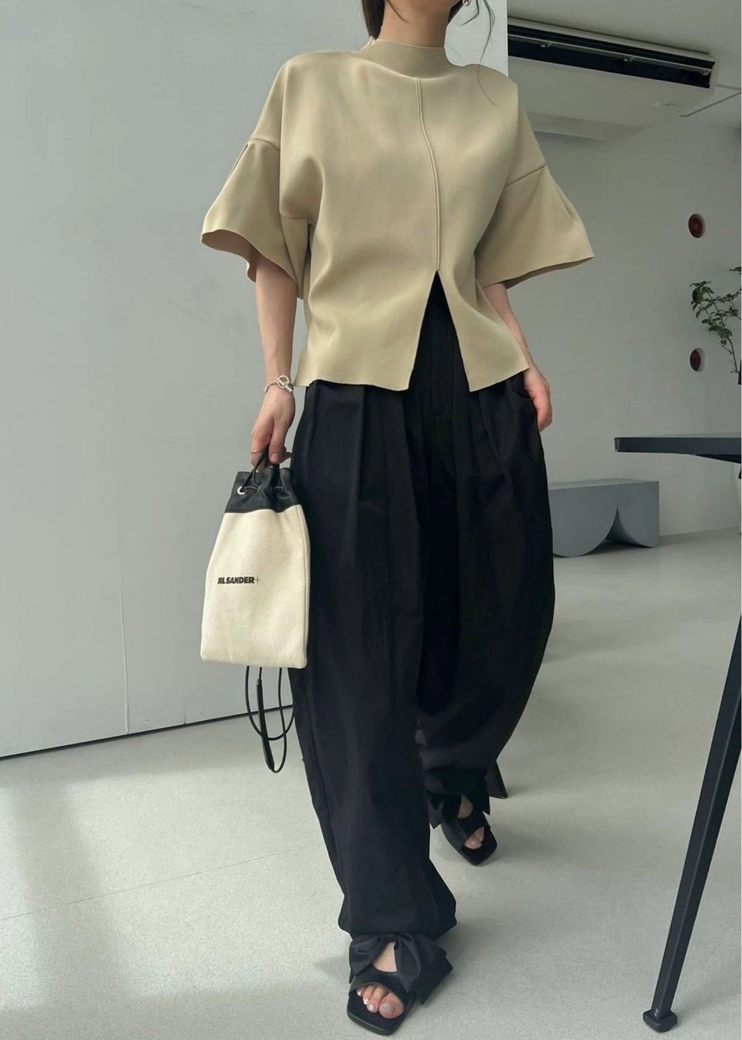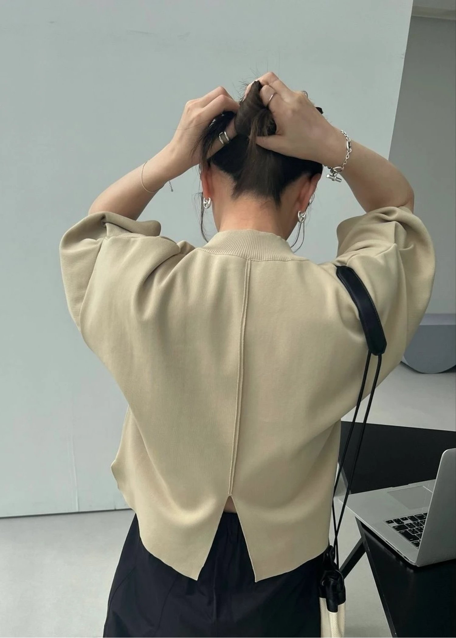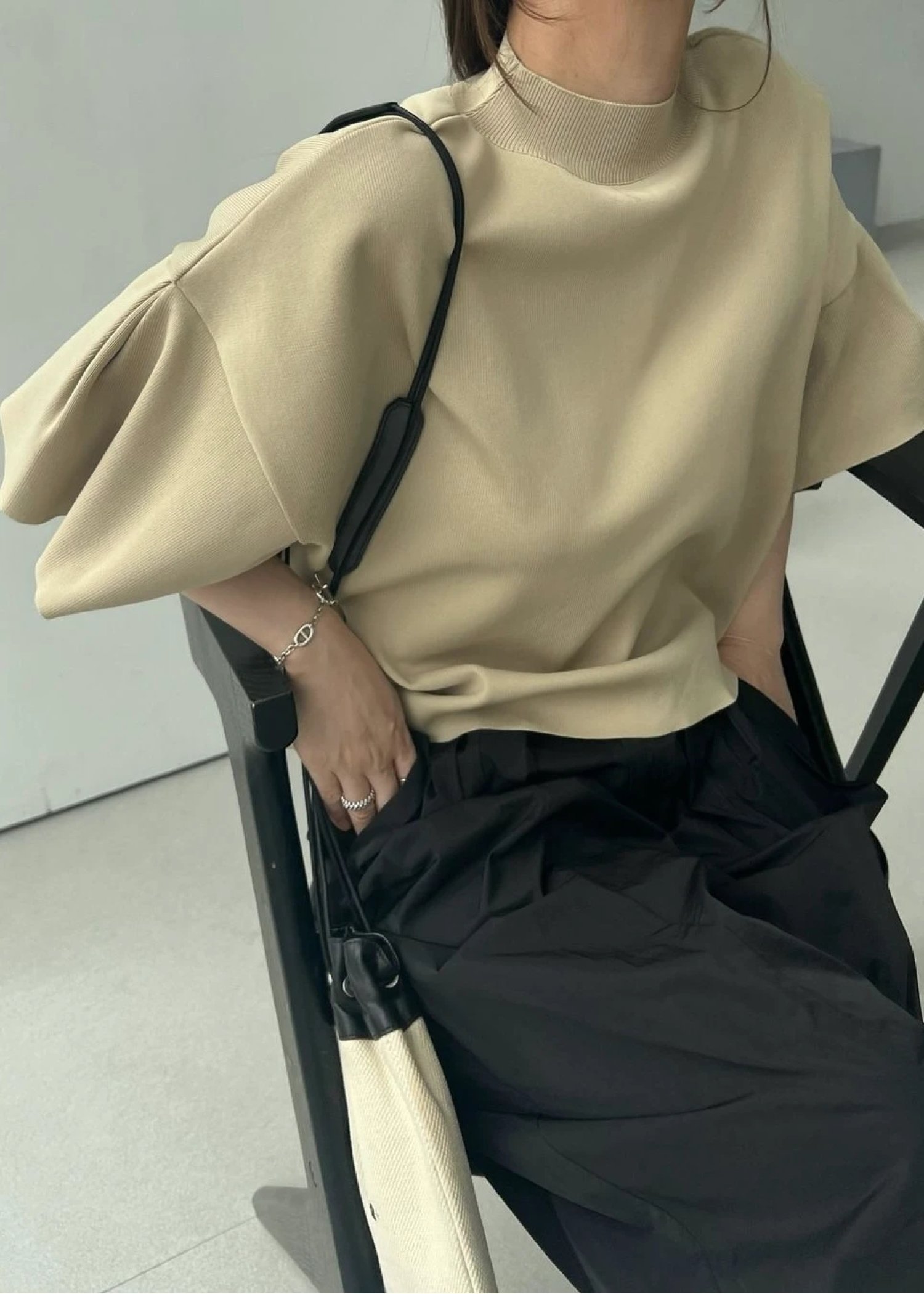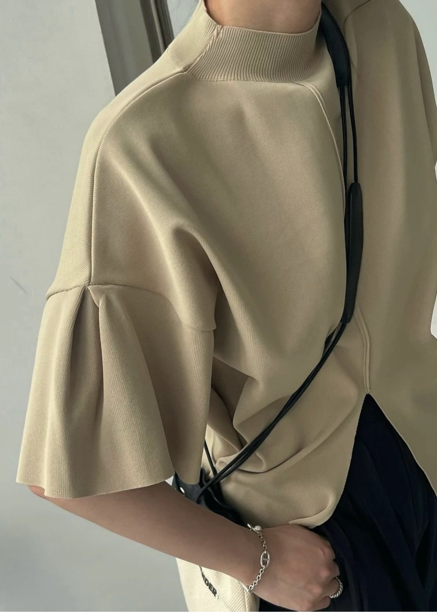mockneck half sleeve tuck knit