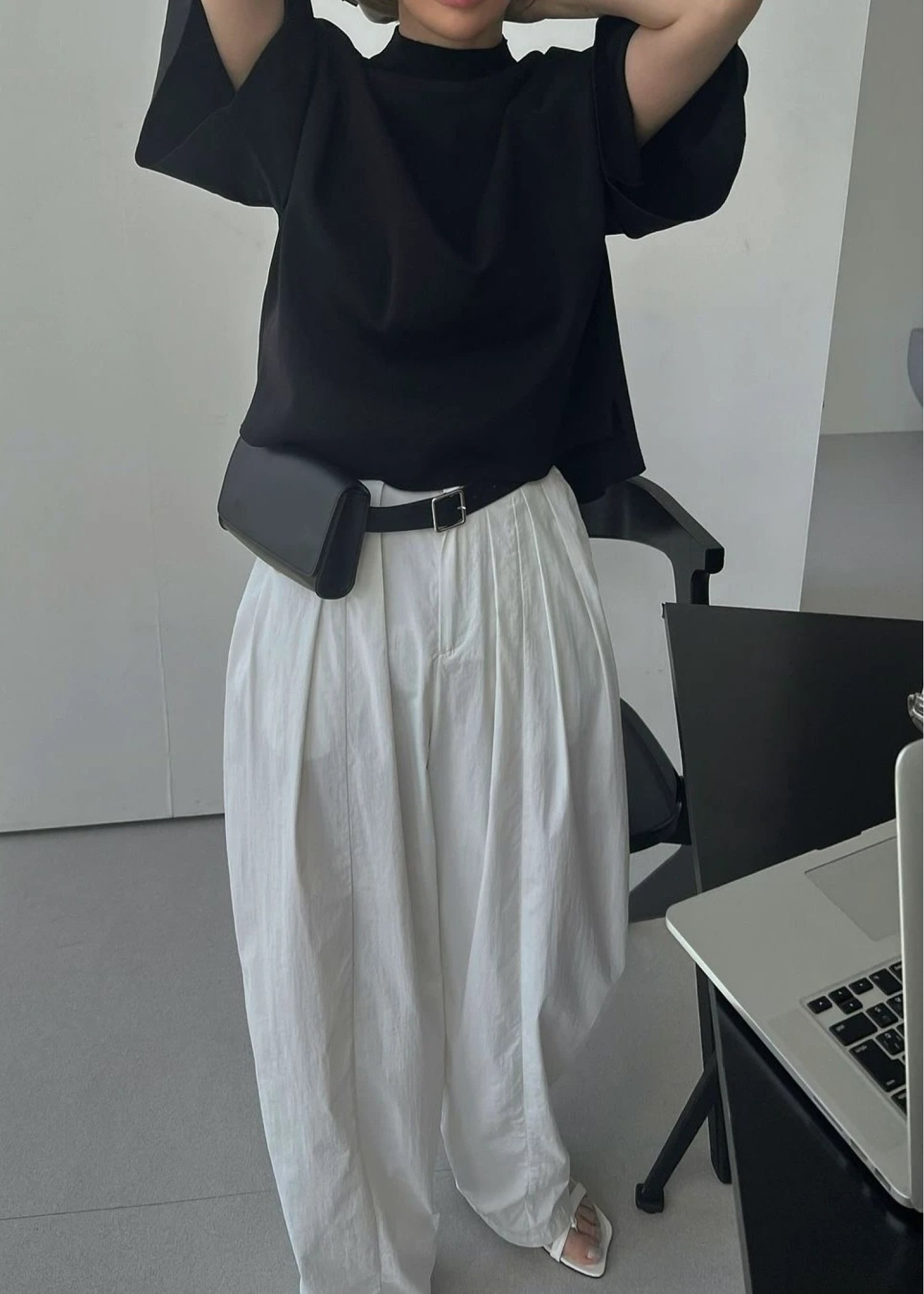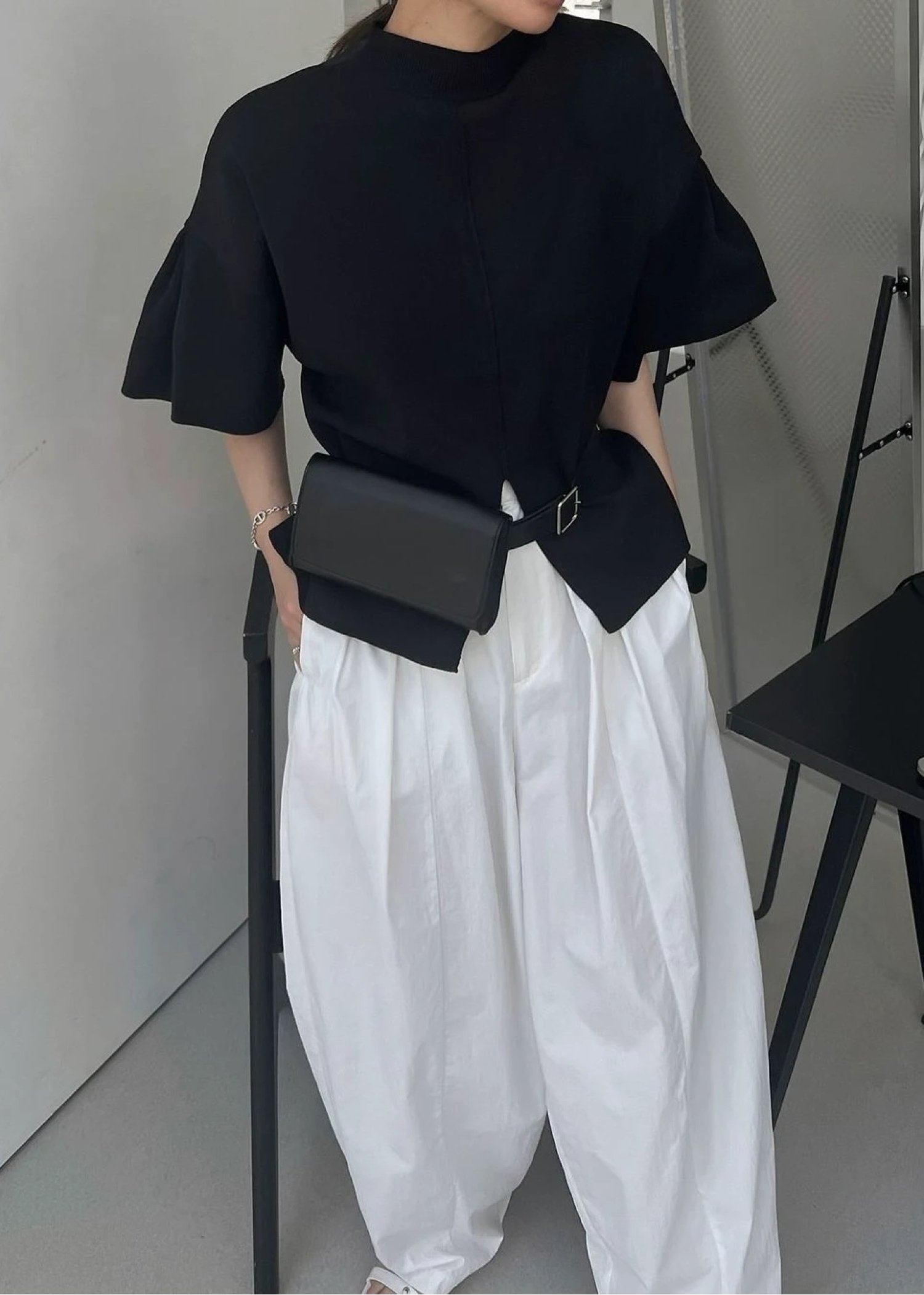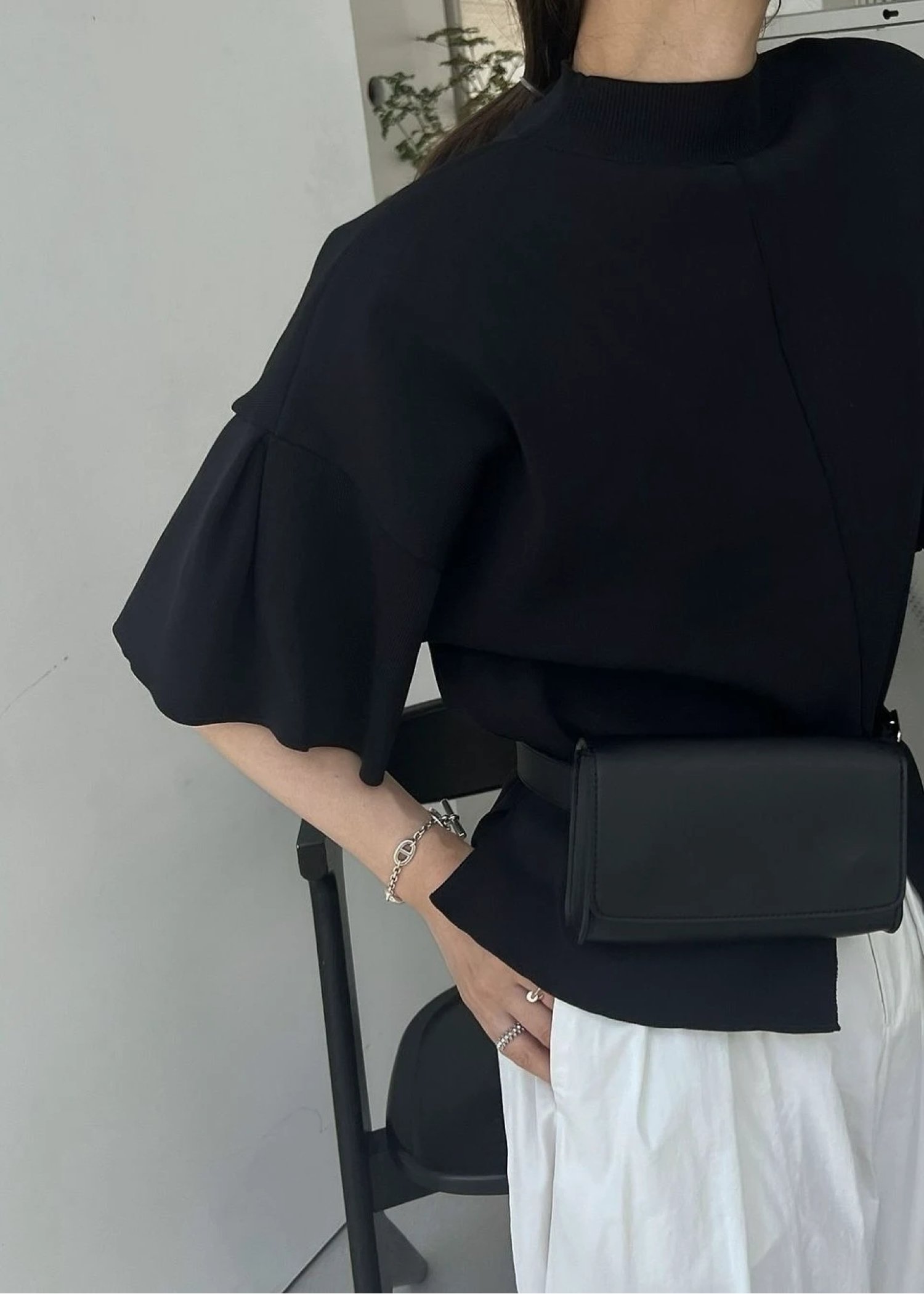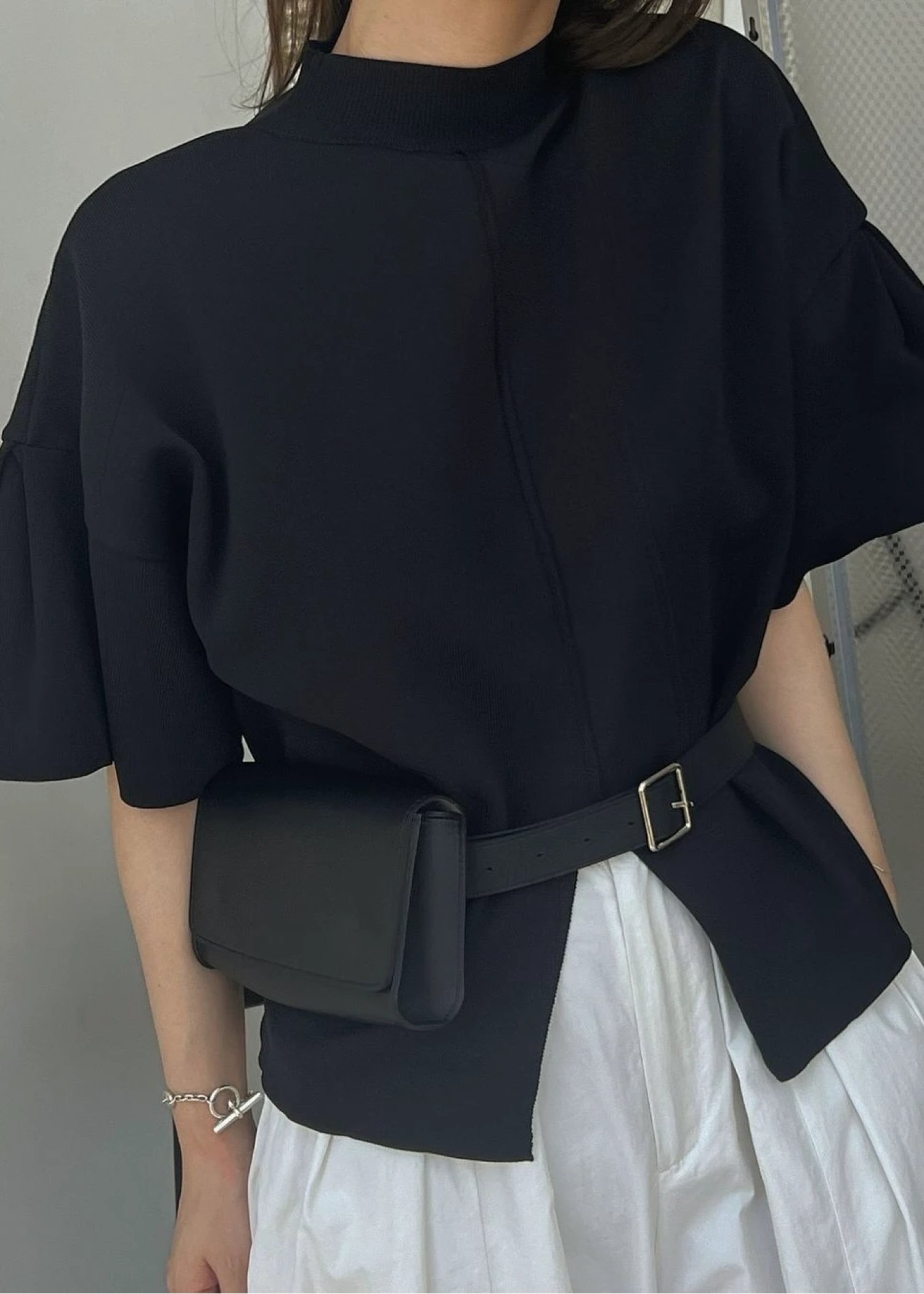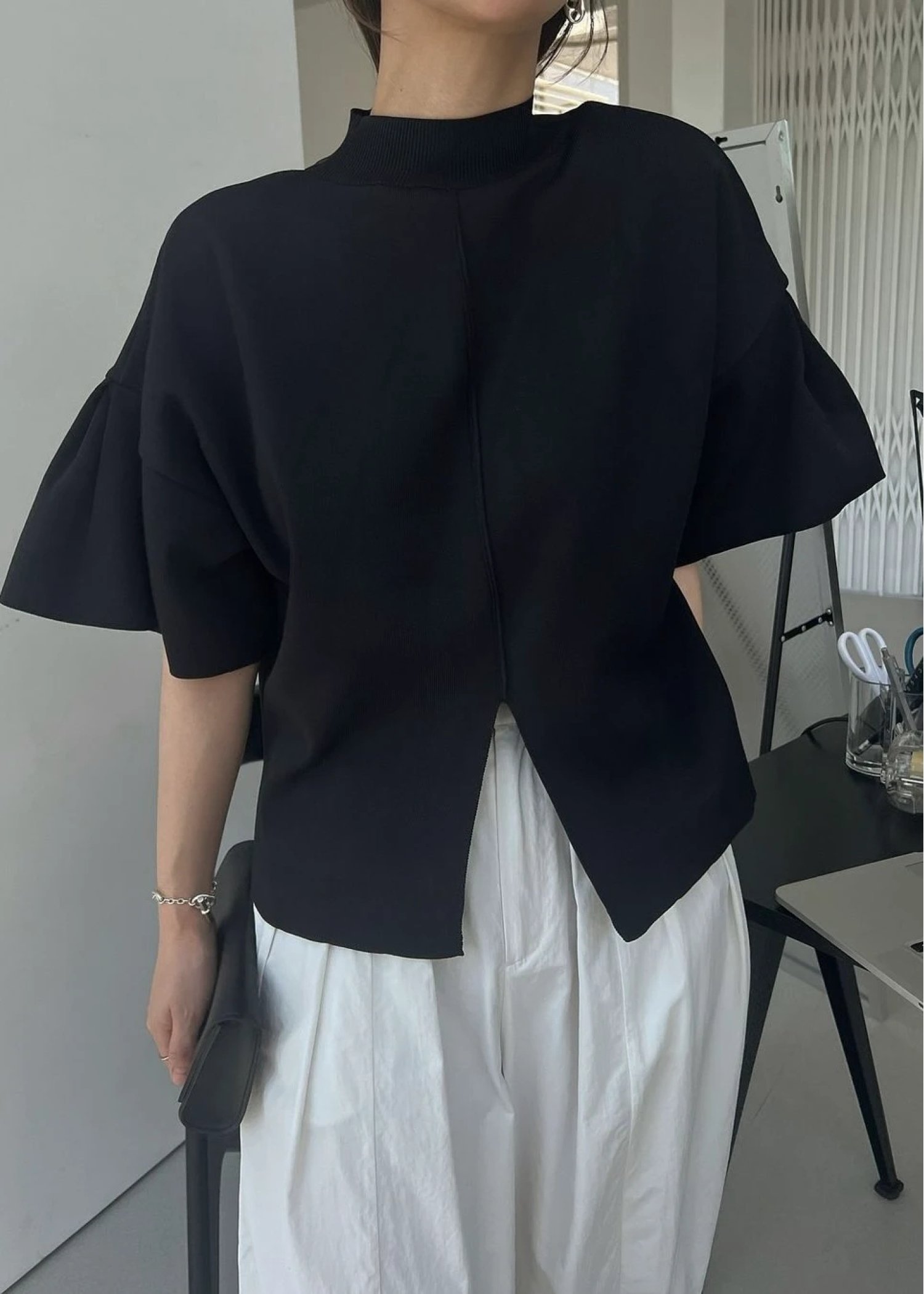 mockneck half sleeve tuck knit
