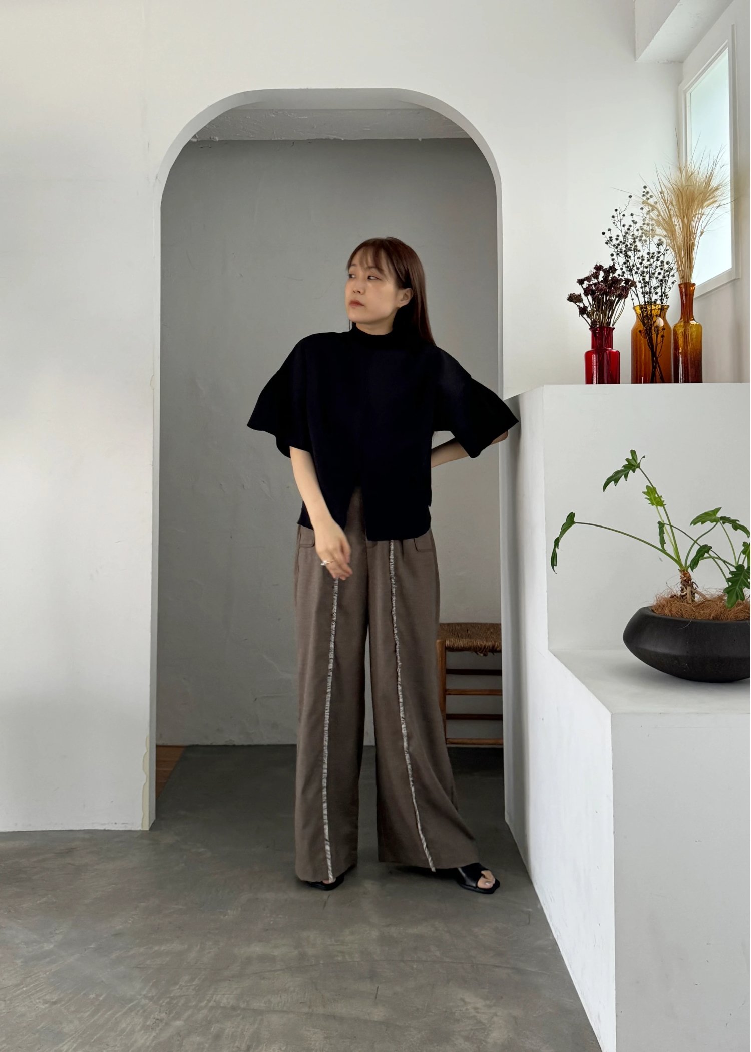 mockneck half sleeve tuck knit