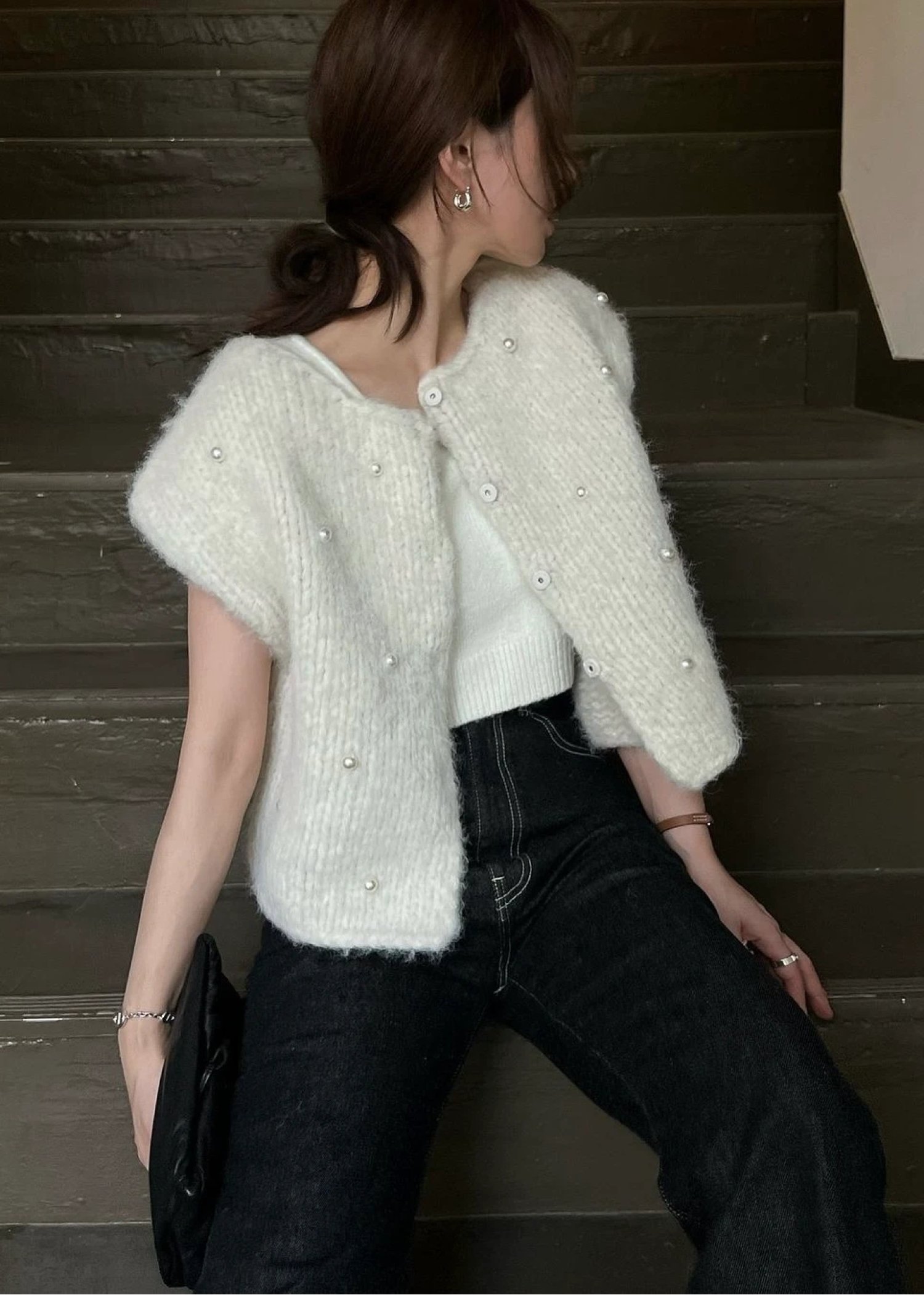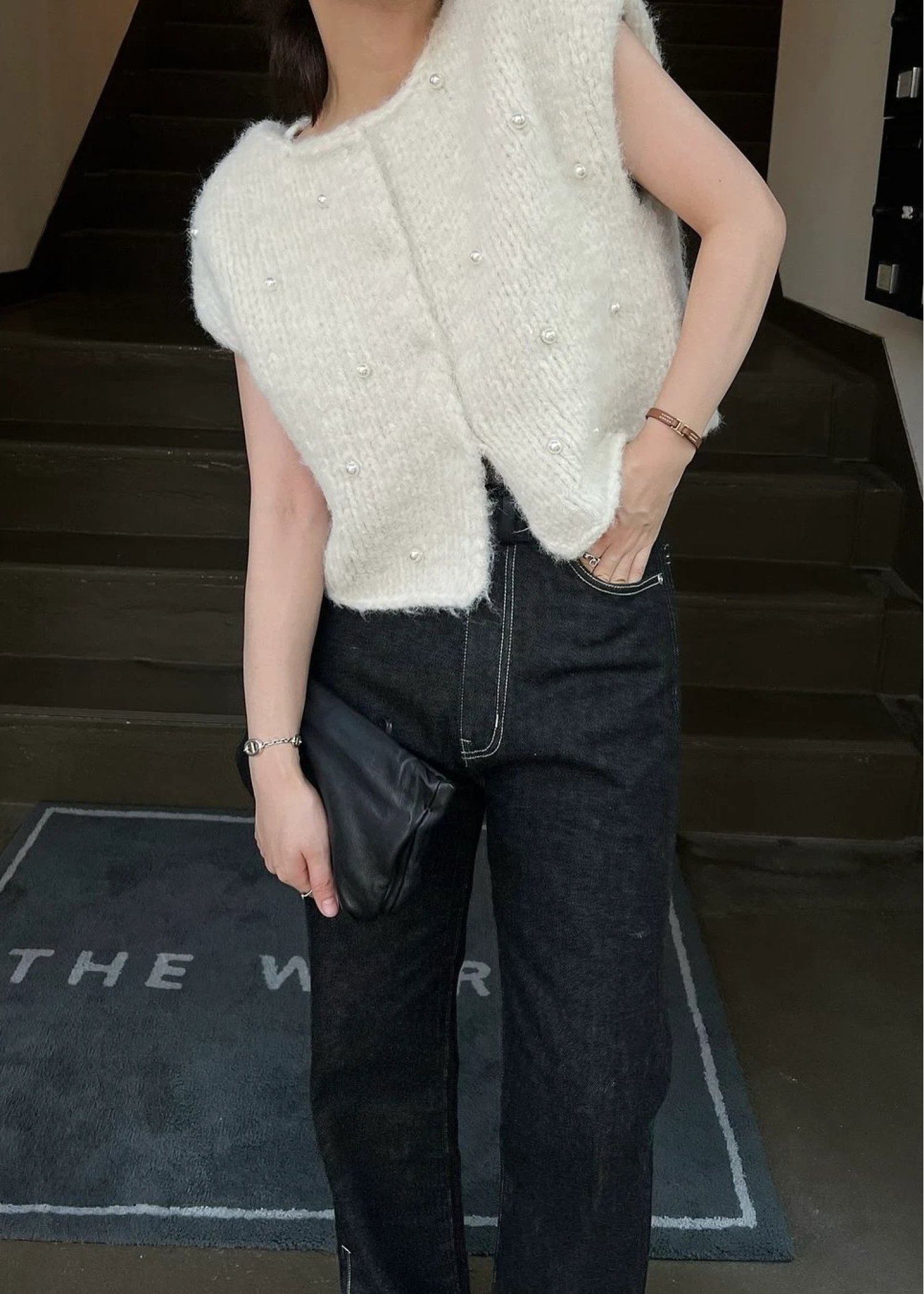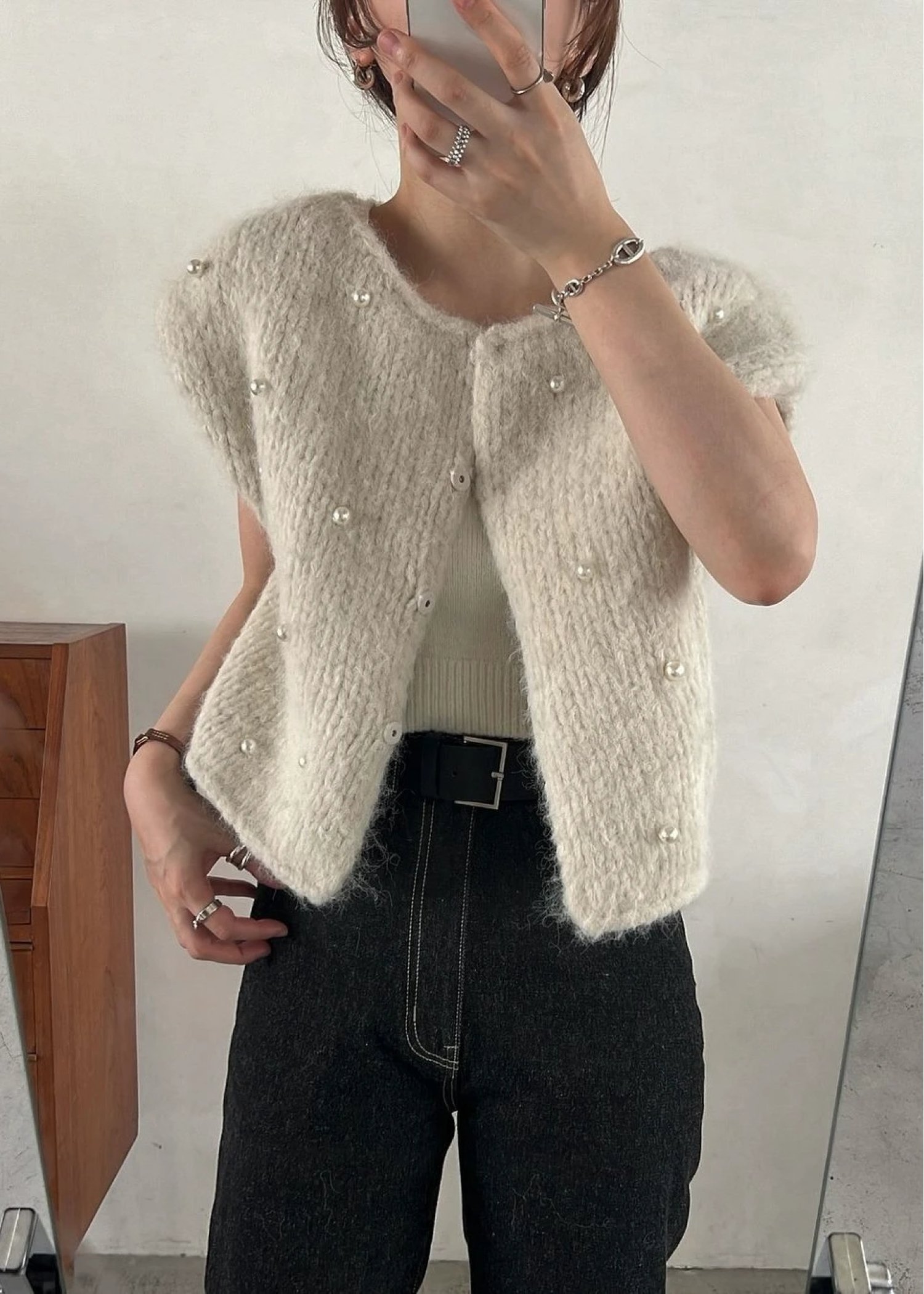 handmade random pearl knit vest