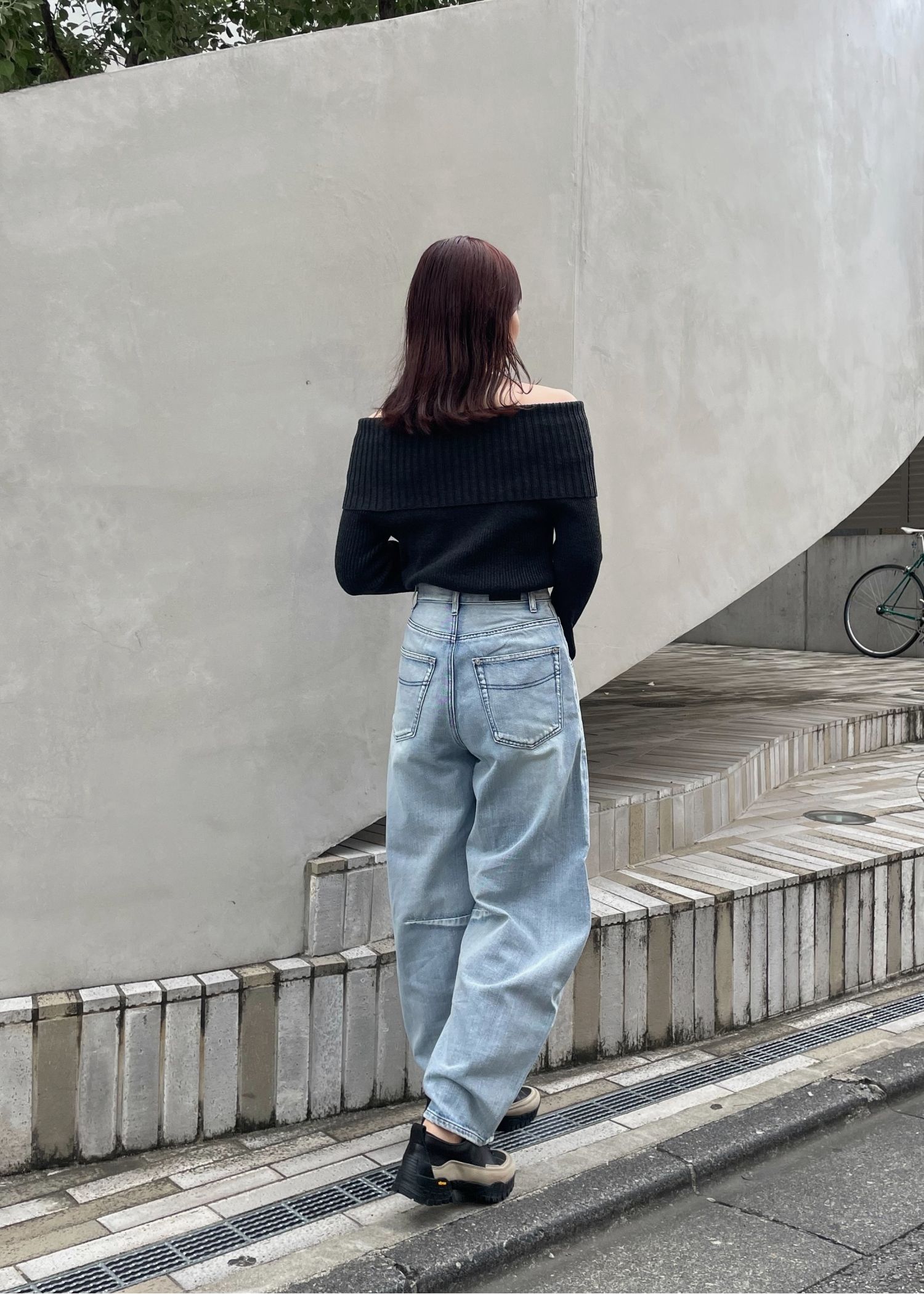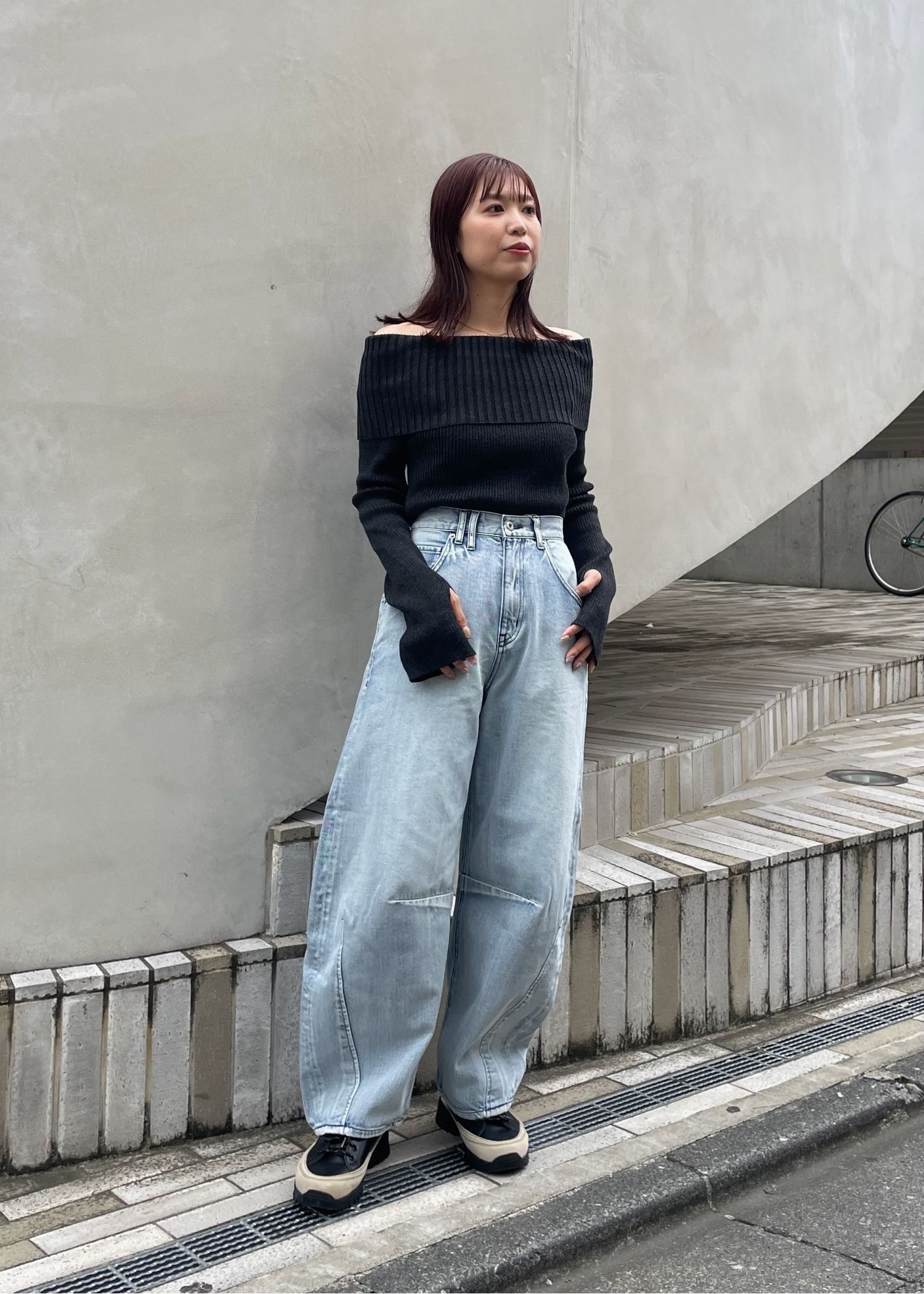 rib turnup off shoulder color schem knit