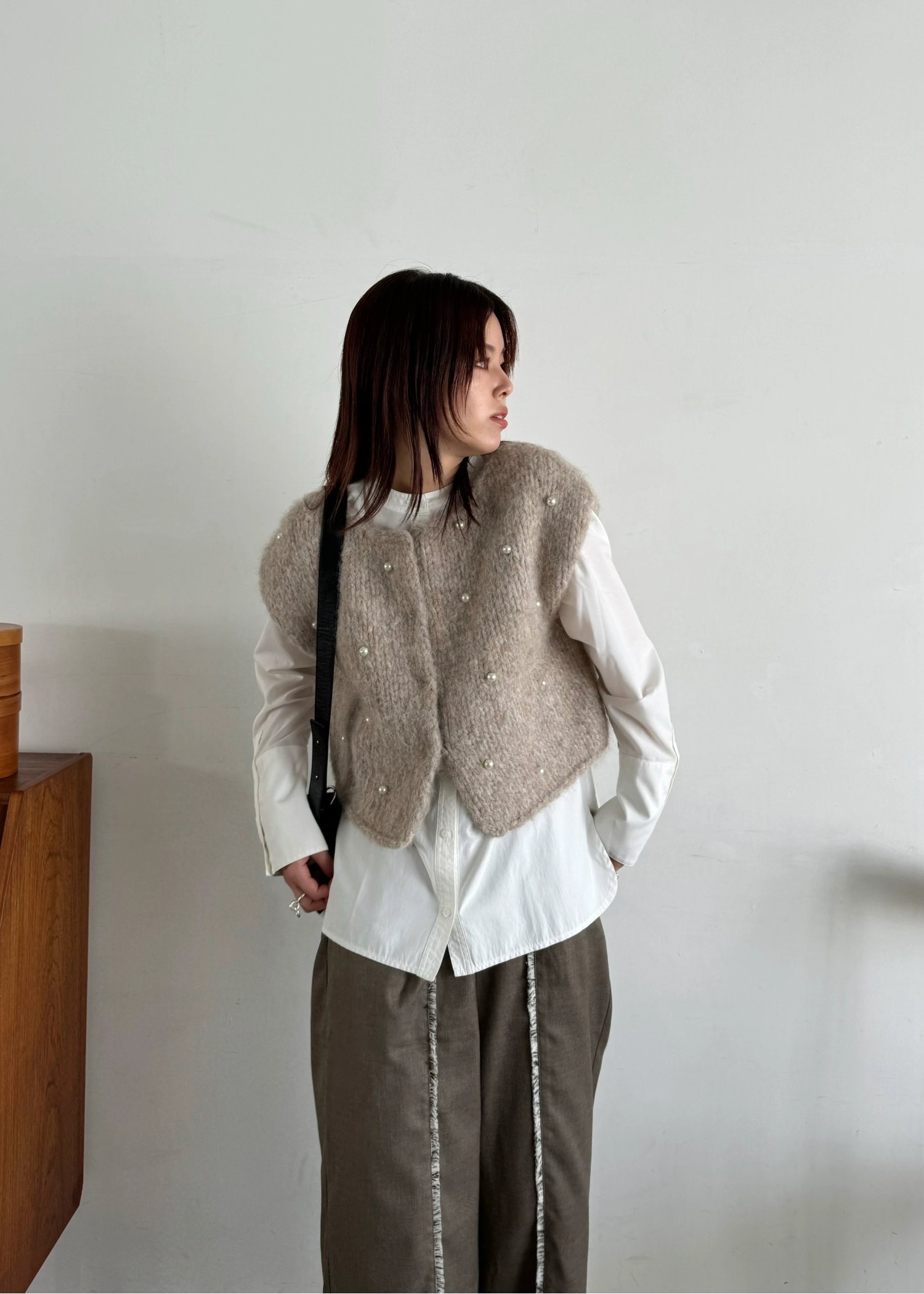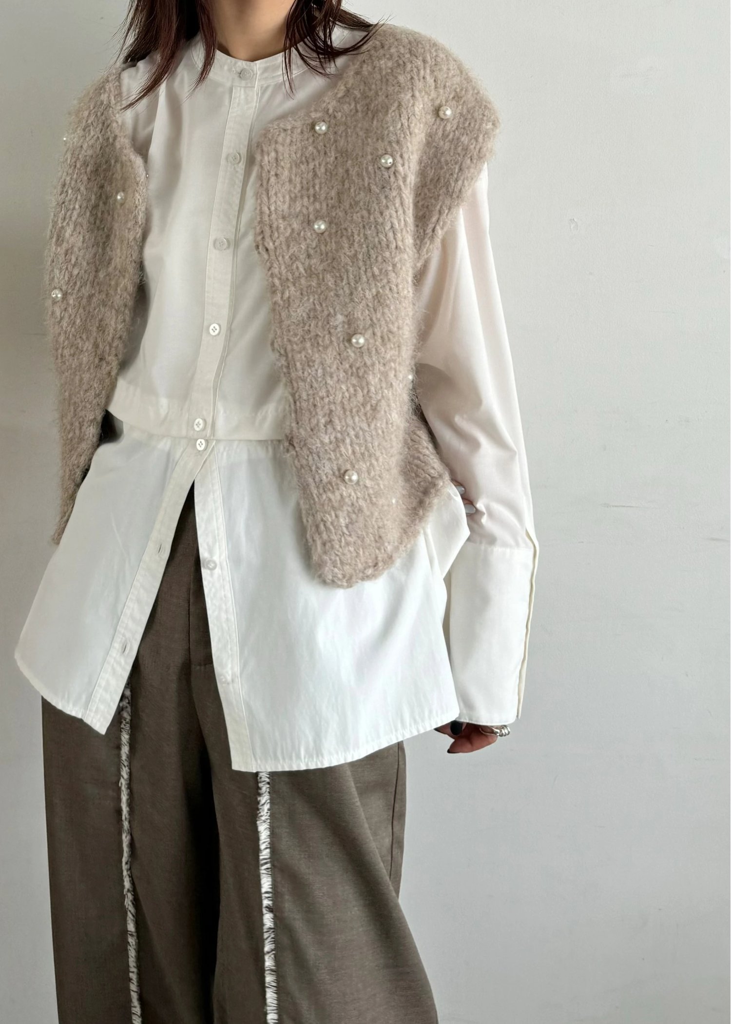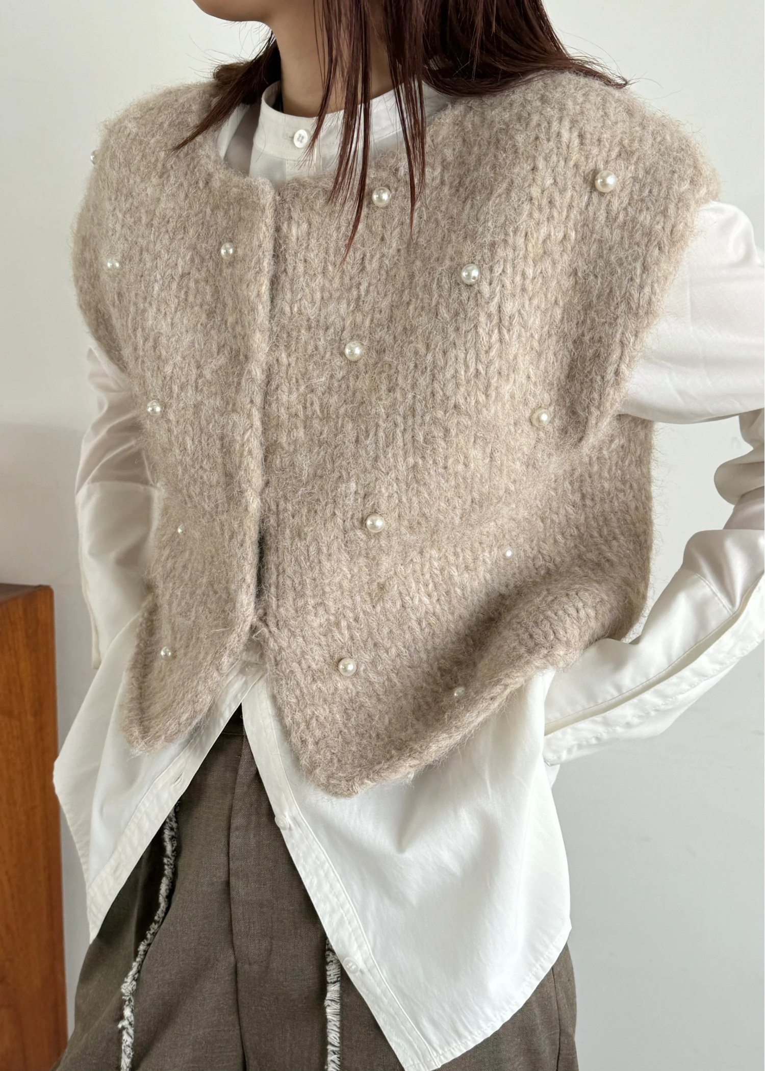 handmade random pearl knit vest