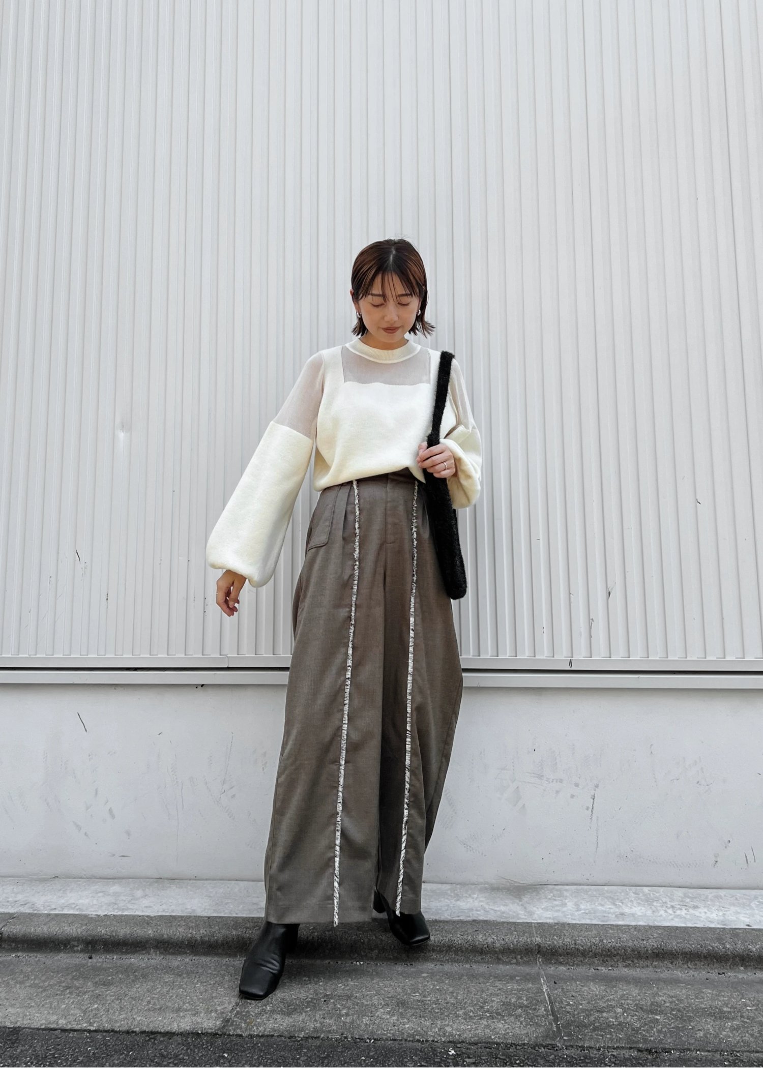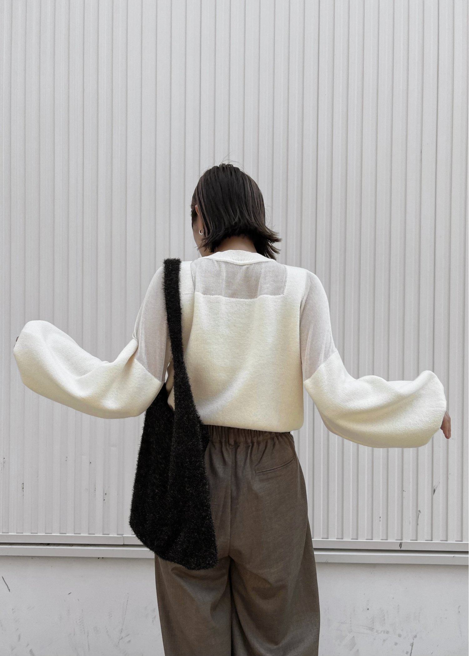 decollete sheer deployment volume sleeve knit