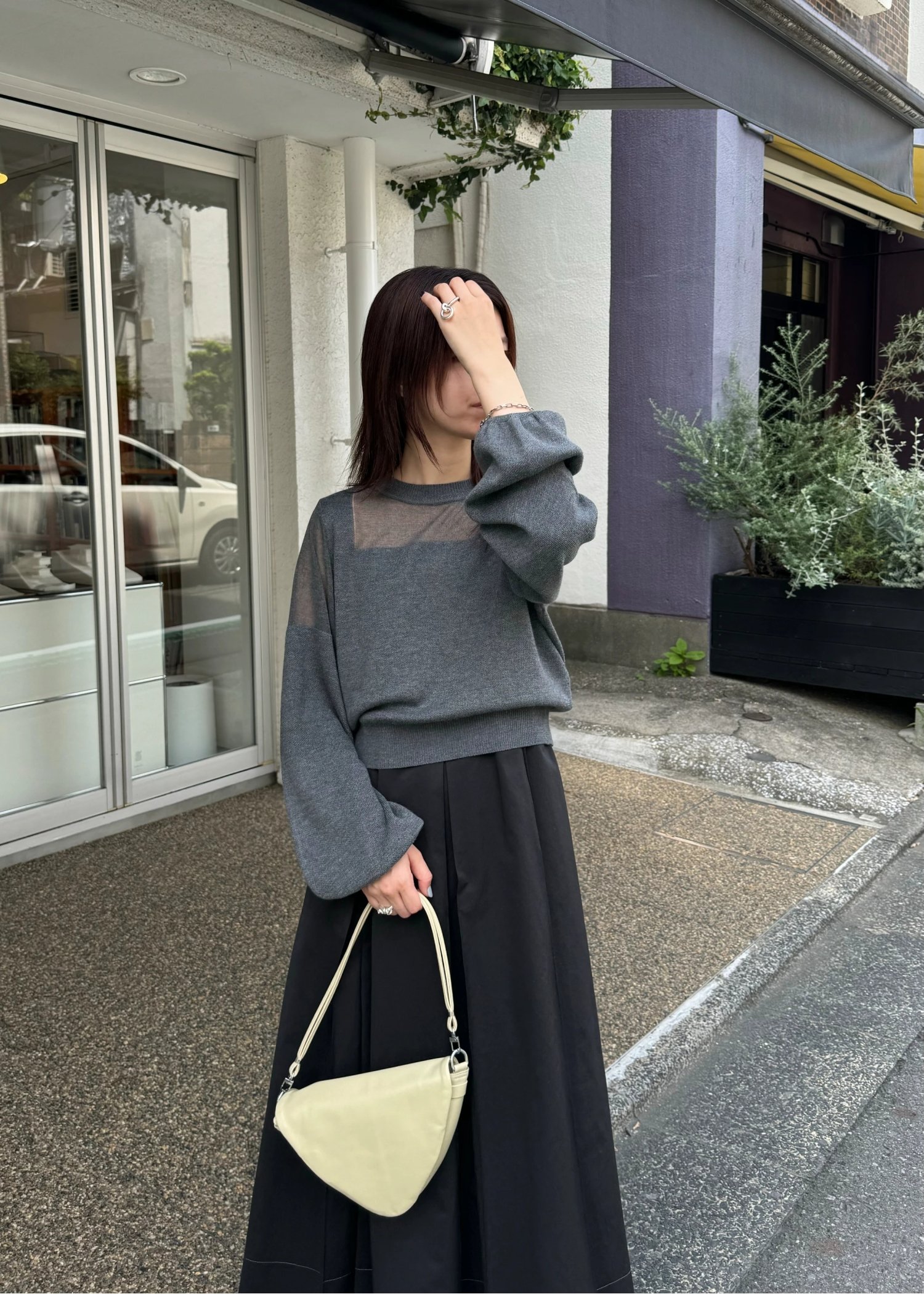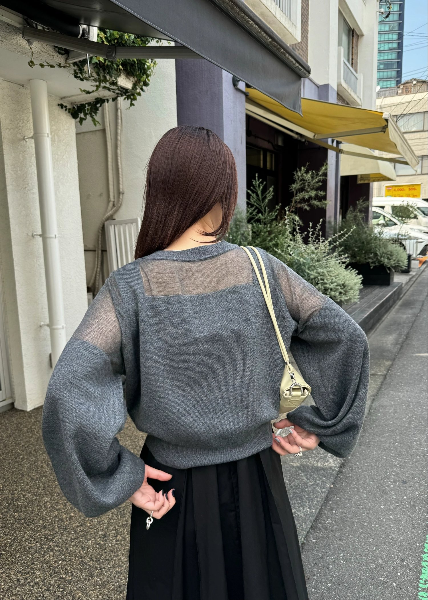 decollete sheer deployment volume sleeve knit