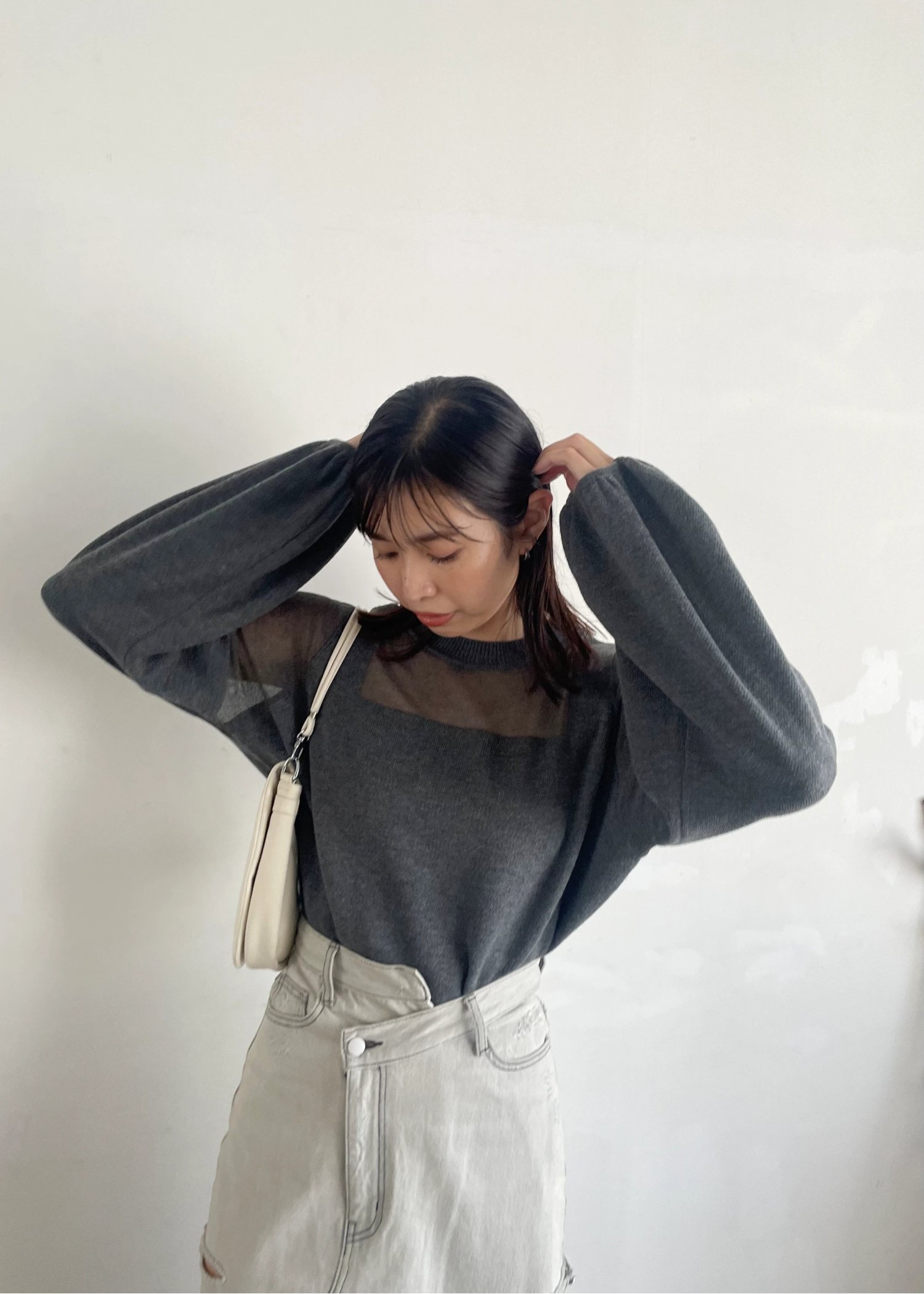 decollete sheer deployment volume sleeve knit