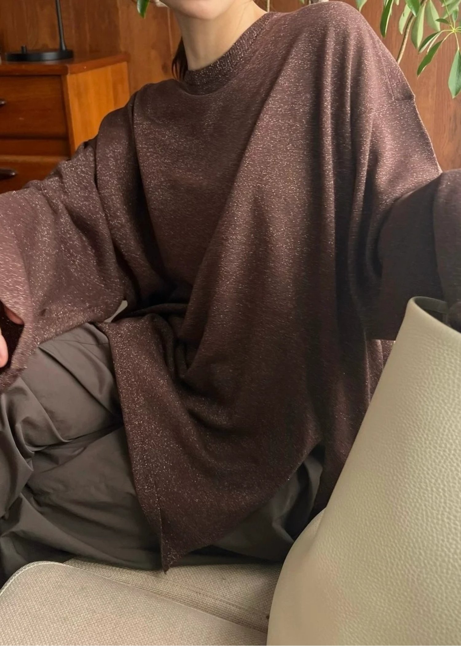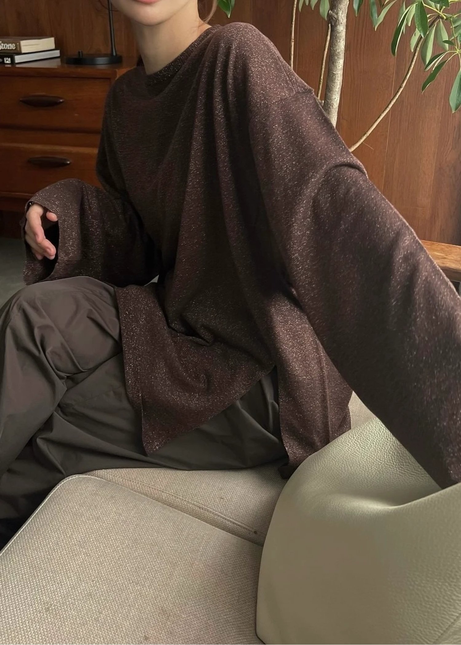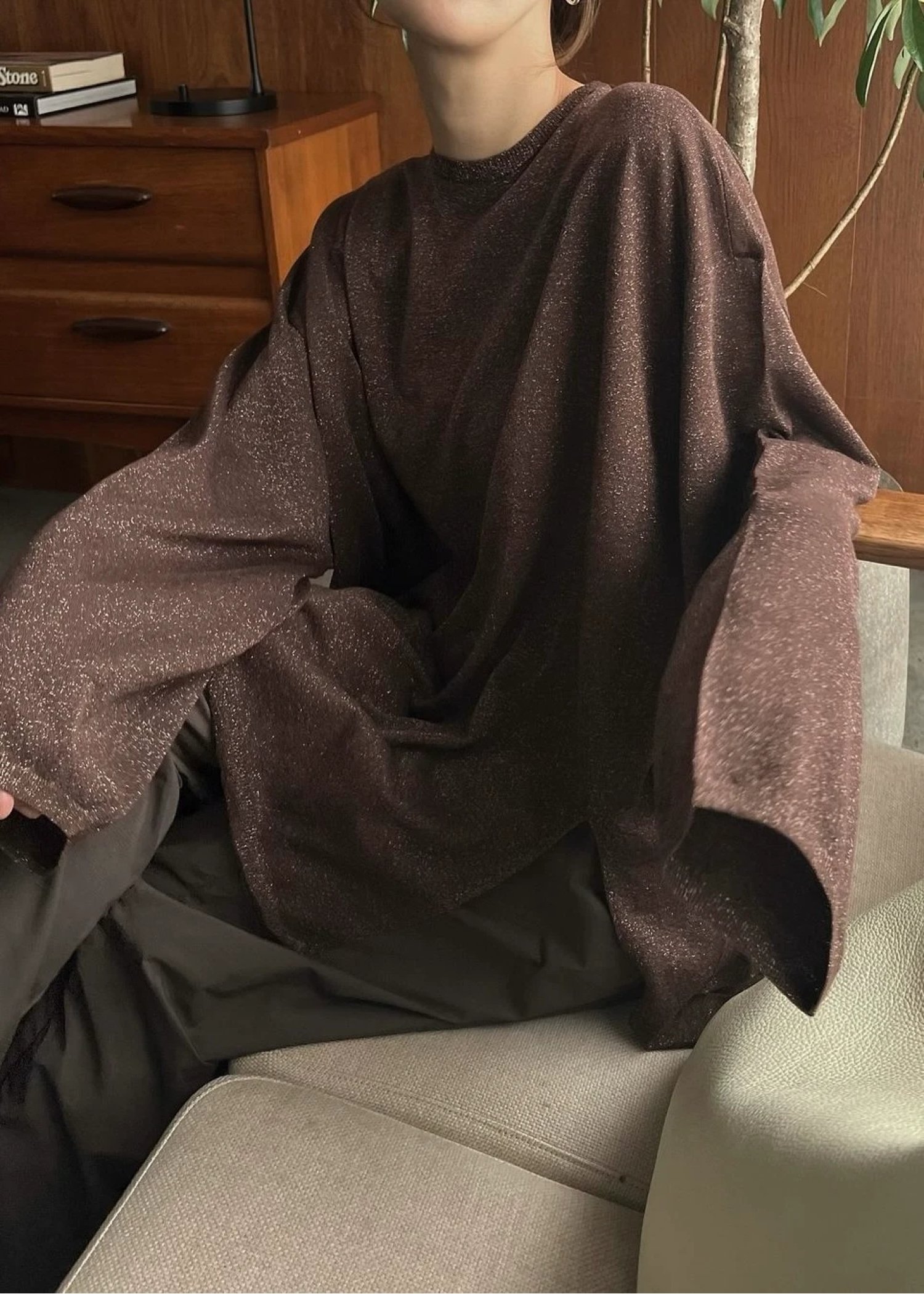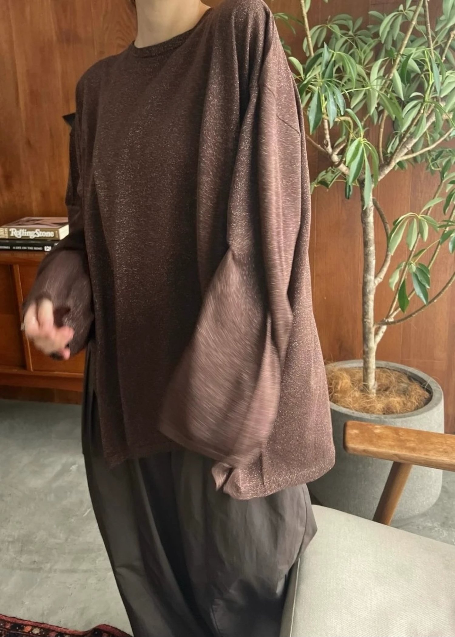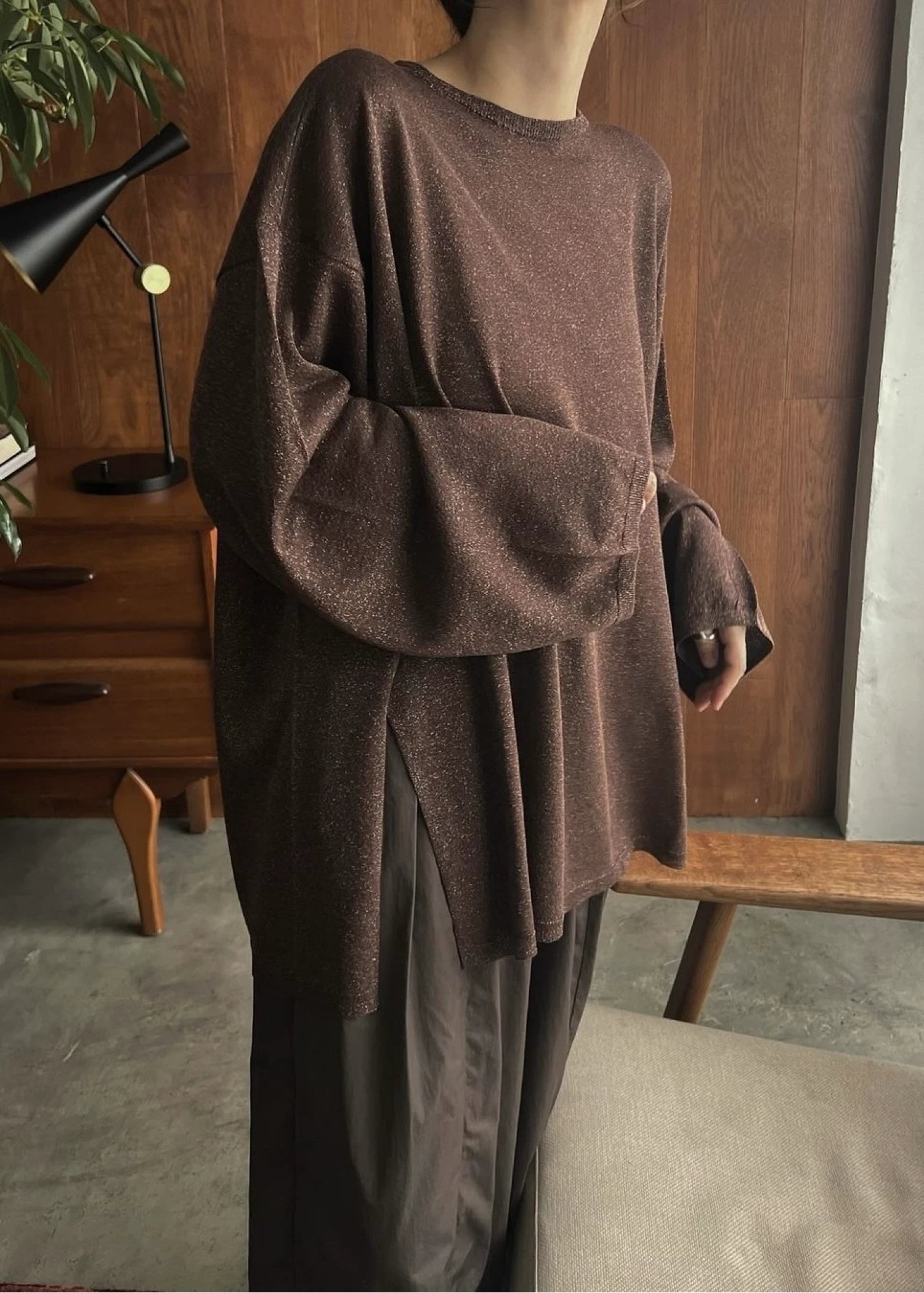 lame knit side cut generous long T