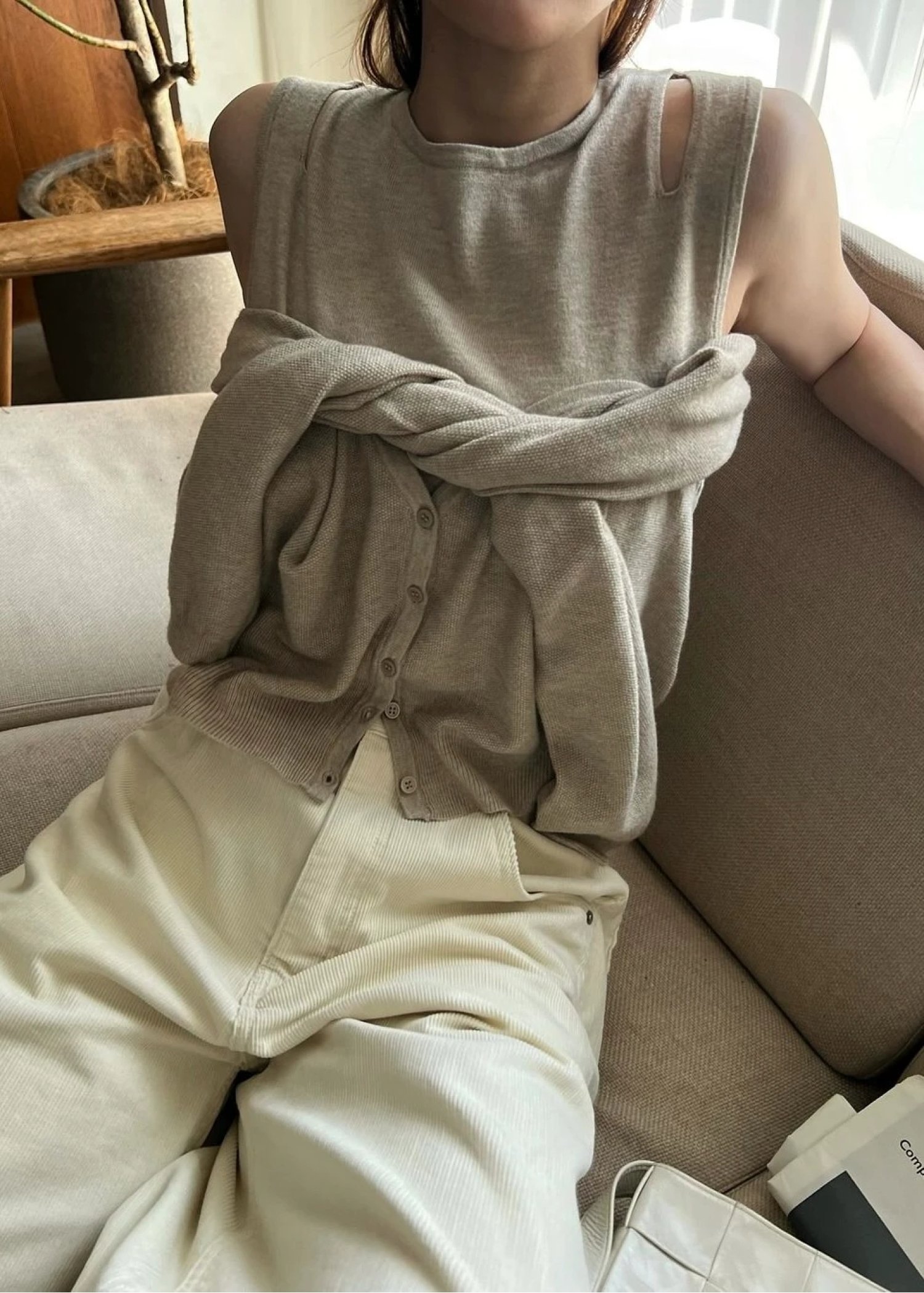 slit tank & seed stitch CD knit ensemble