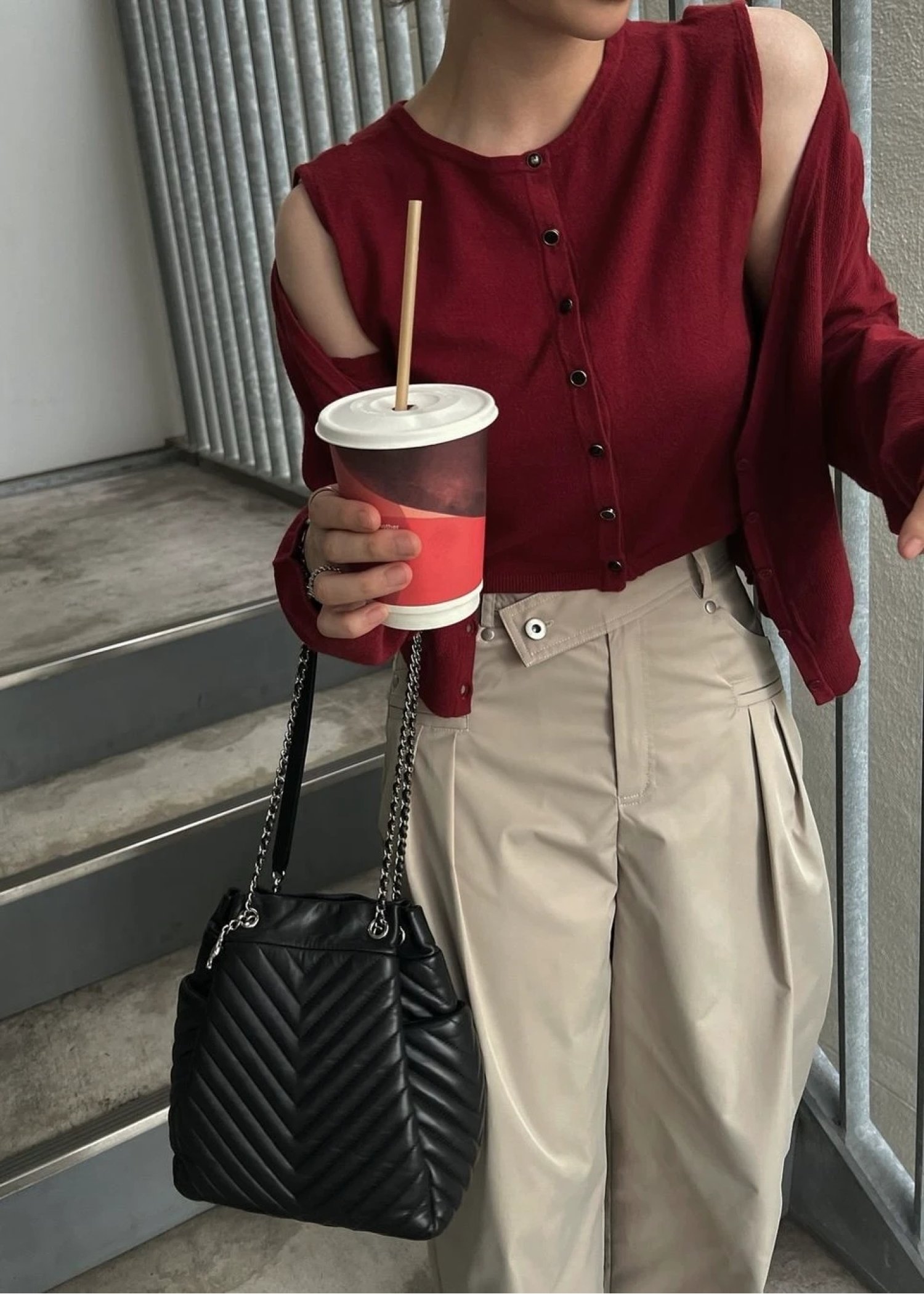 slit tank & seed stitch CD knit ensemble