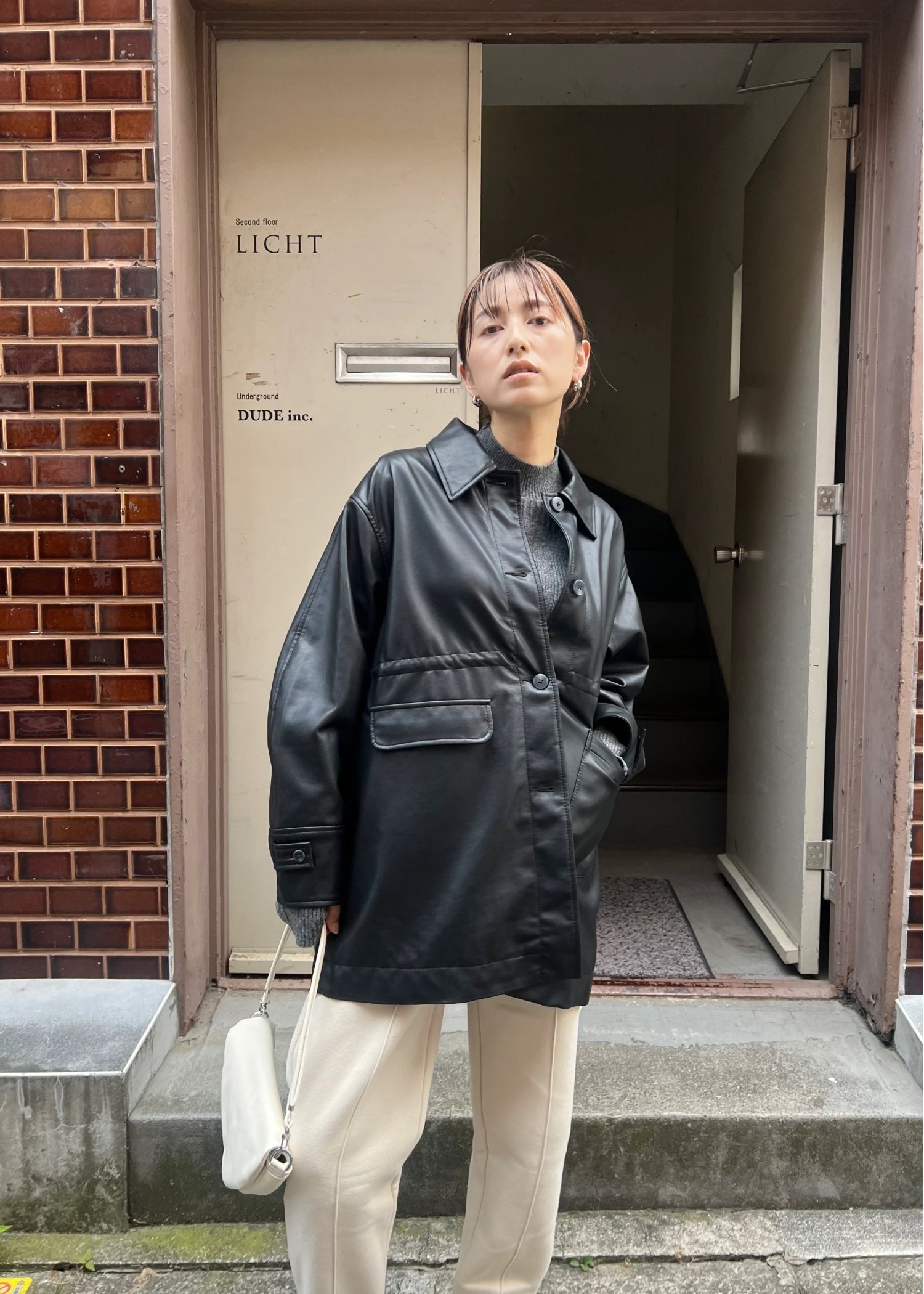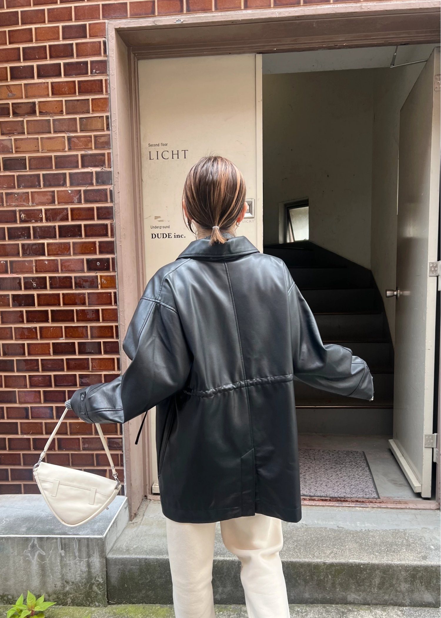 waist gather peplum synthetic leather JK