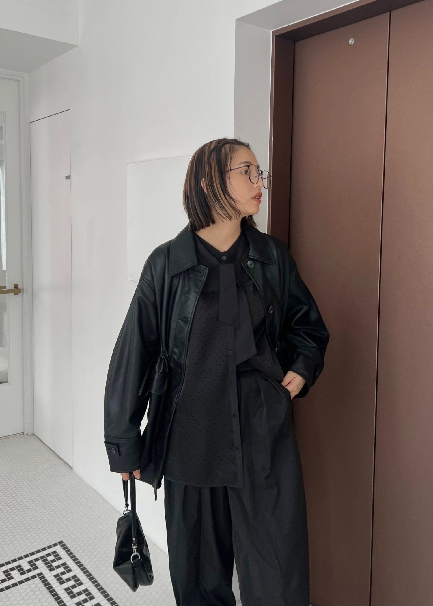 waist gather peplum synthetic leather JK