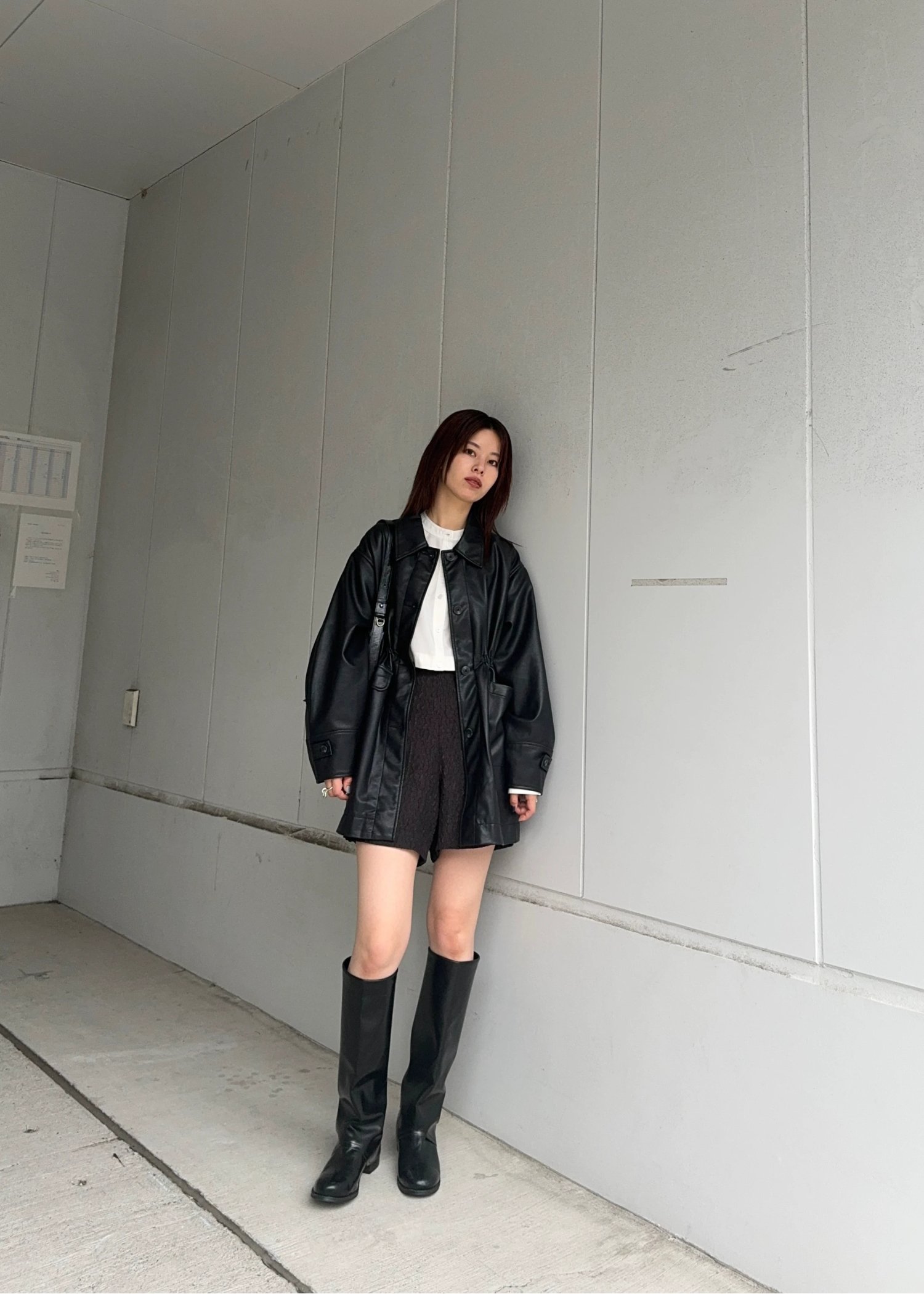 waist gather peplum synthetic leather JK