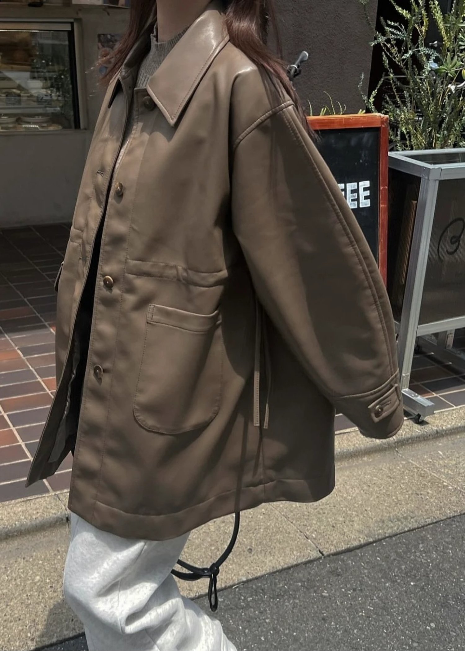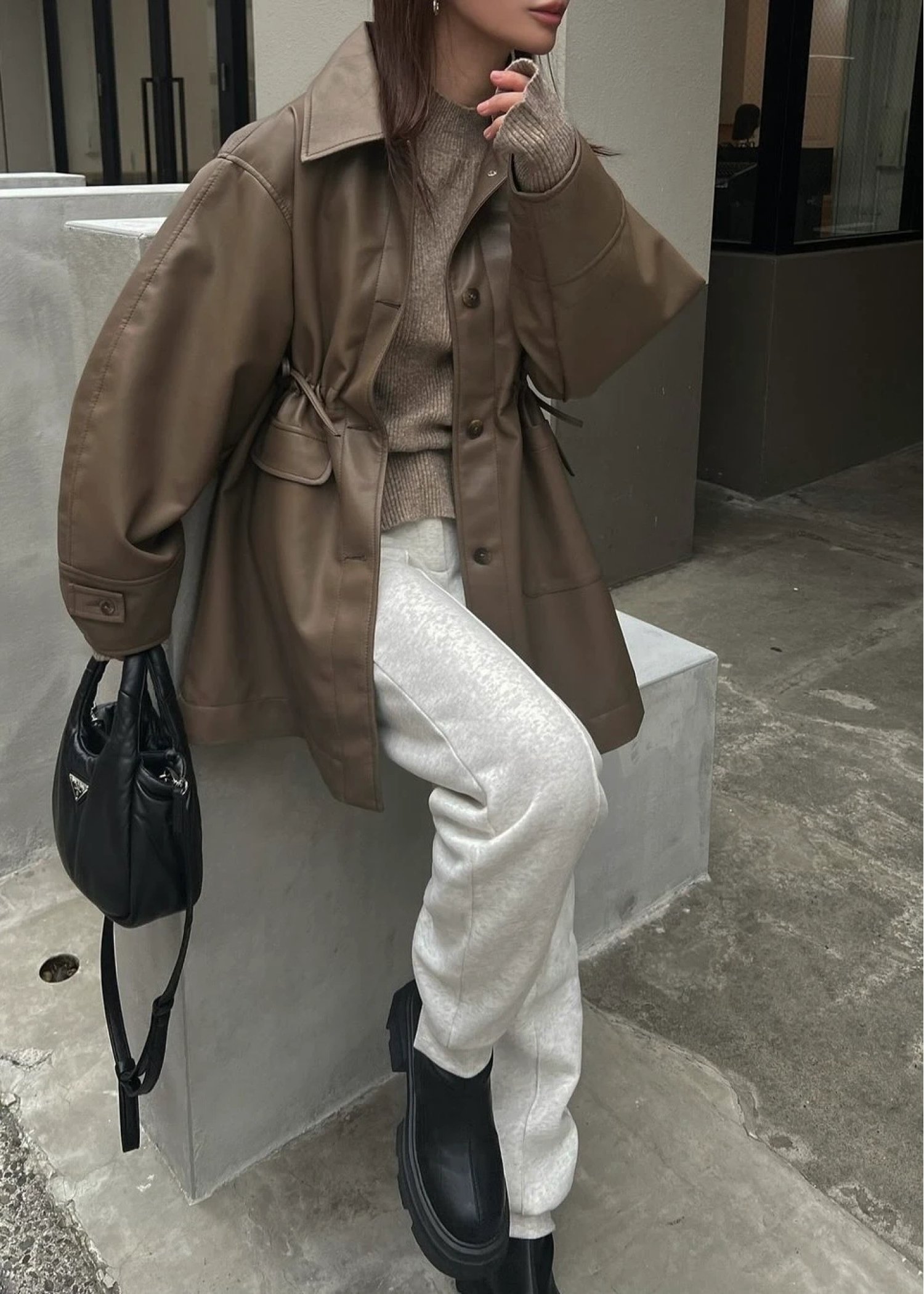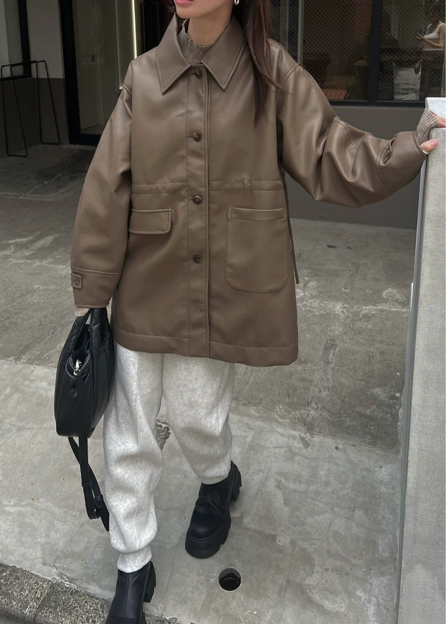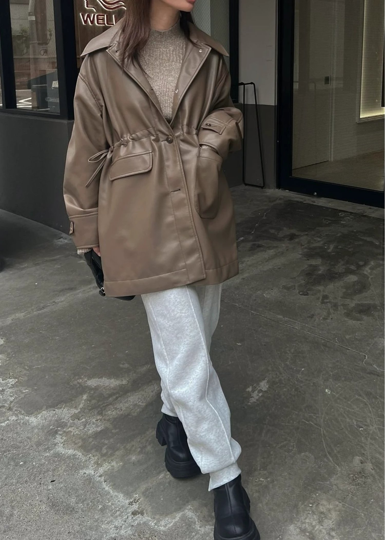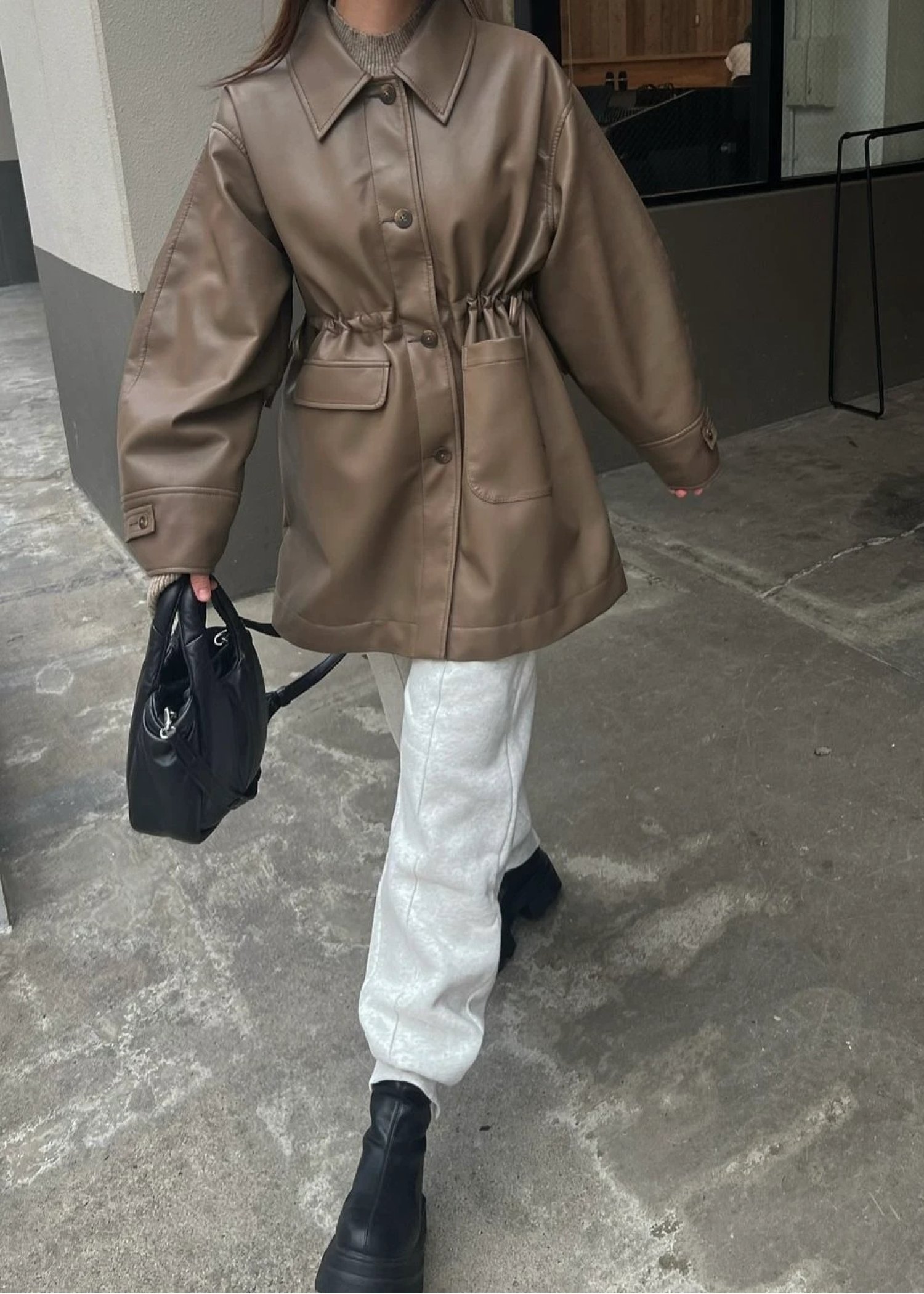 waist gather peplum synthetic leather JK