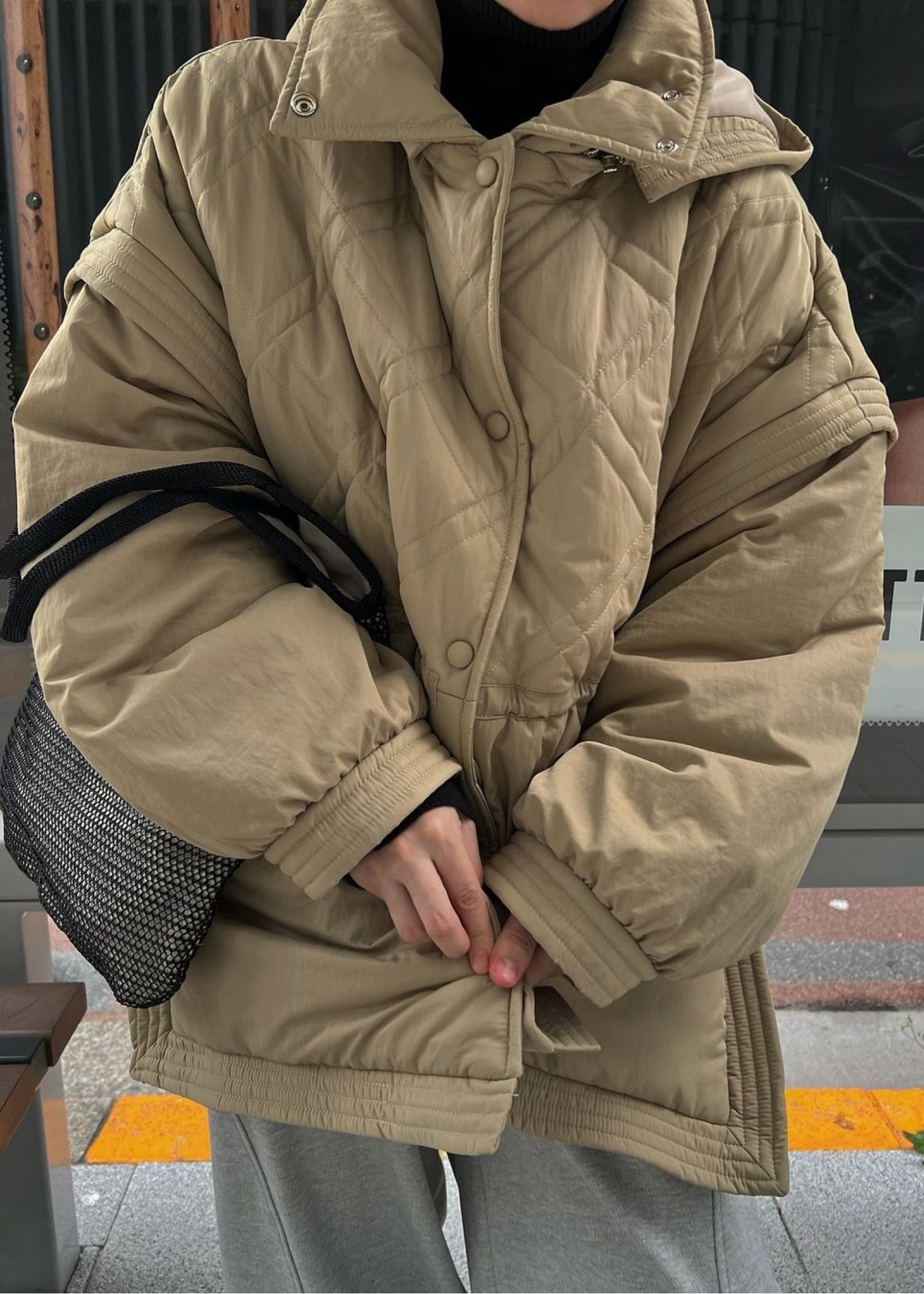 poncho deformation panel quilting coat