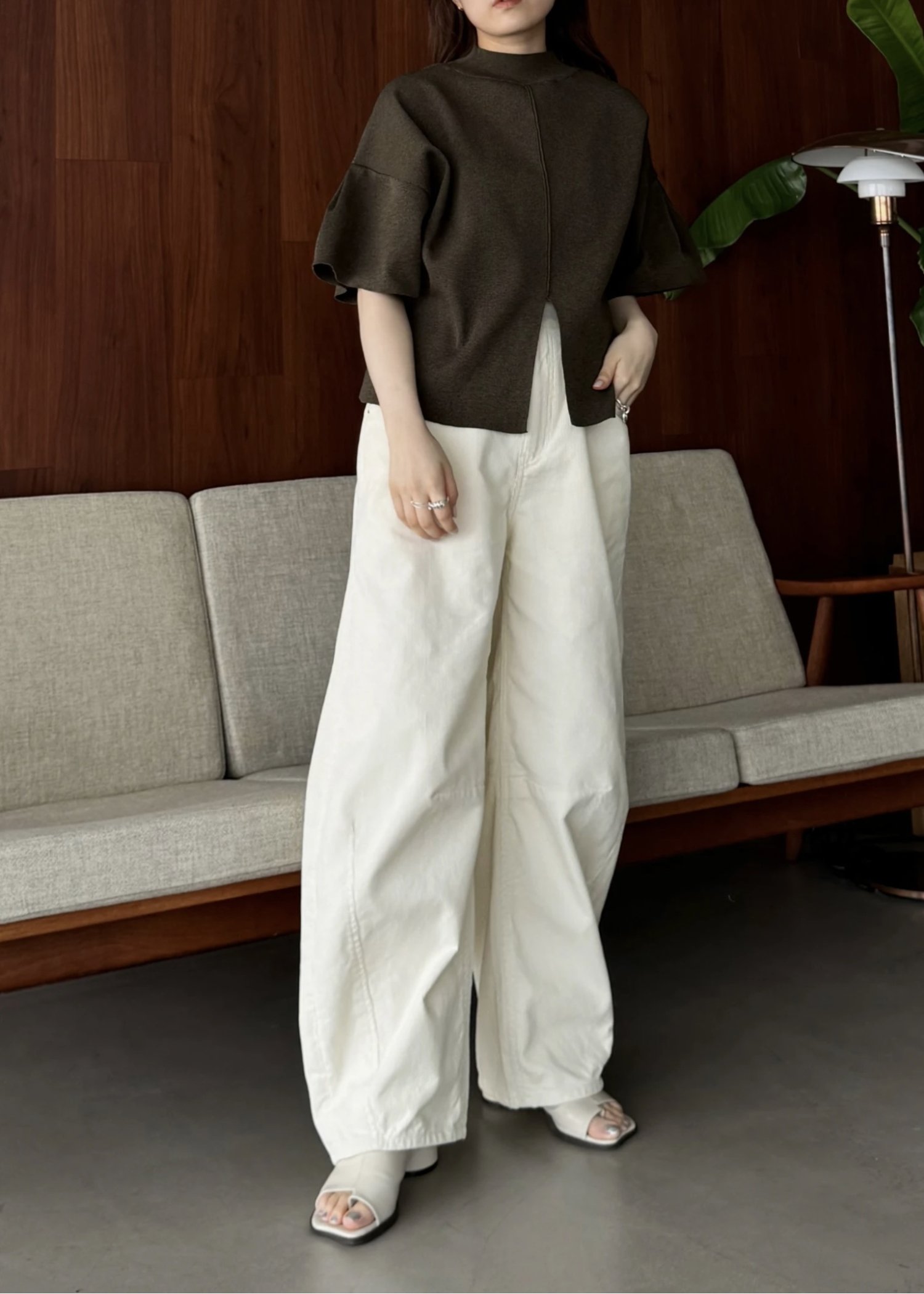 mockneck half sleeve tuck knit