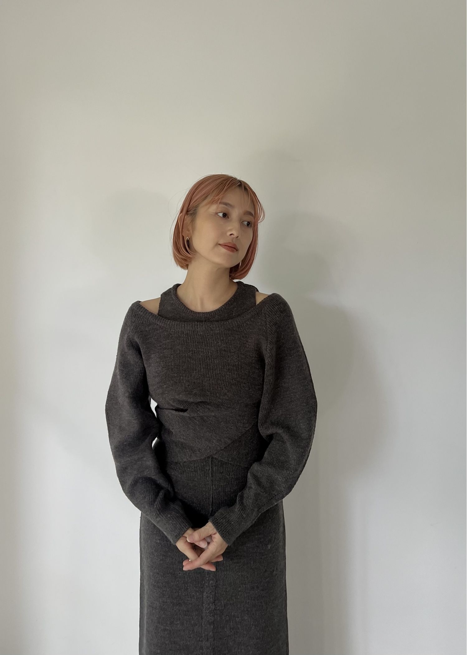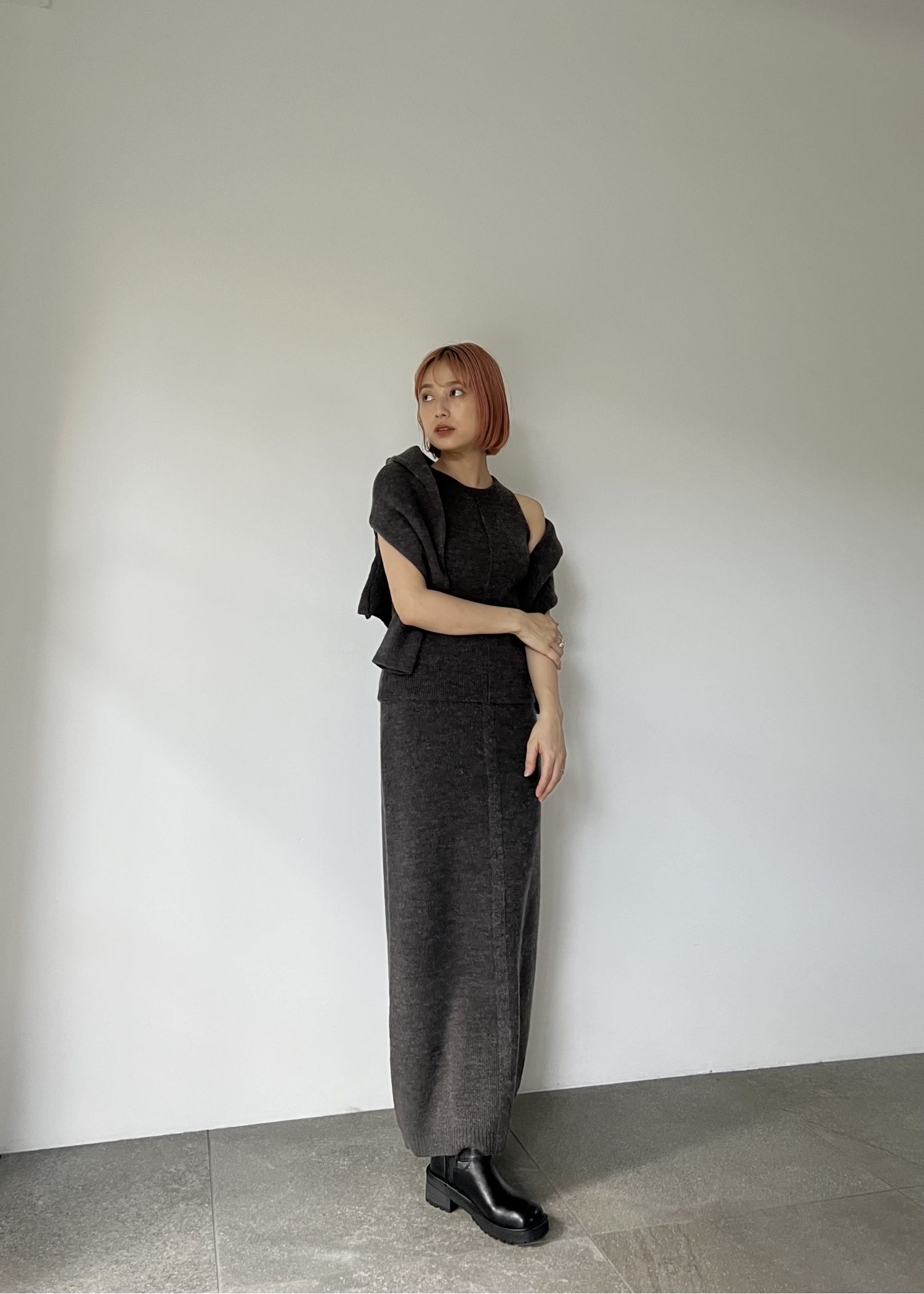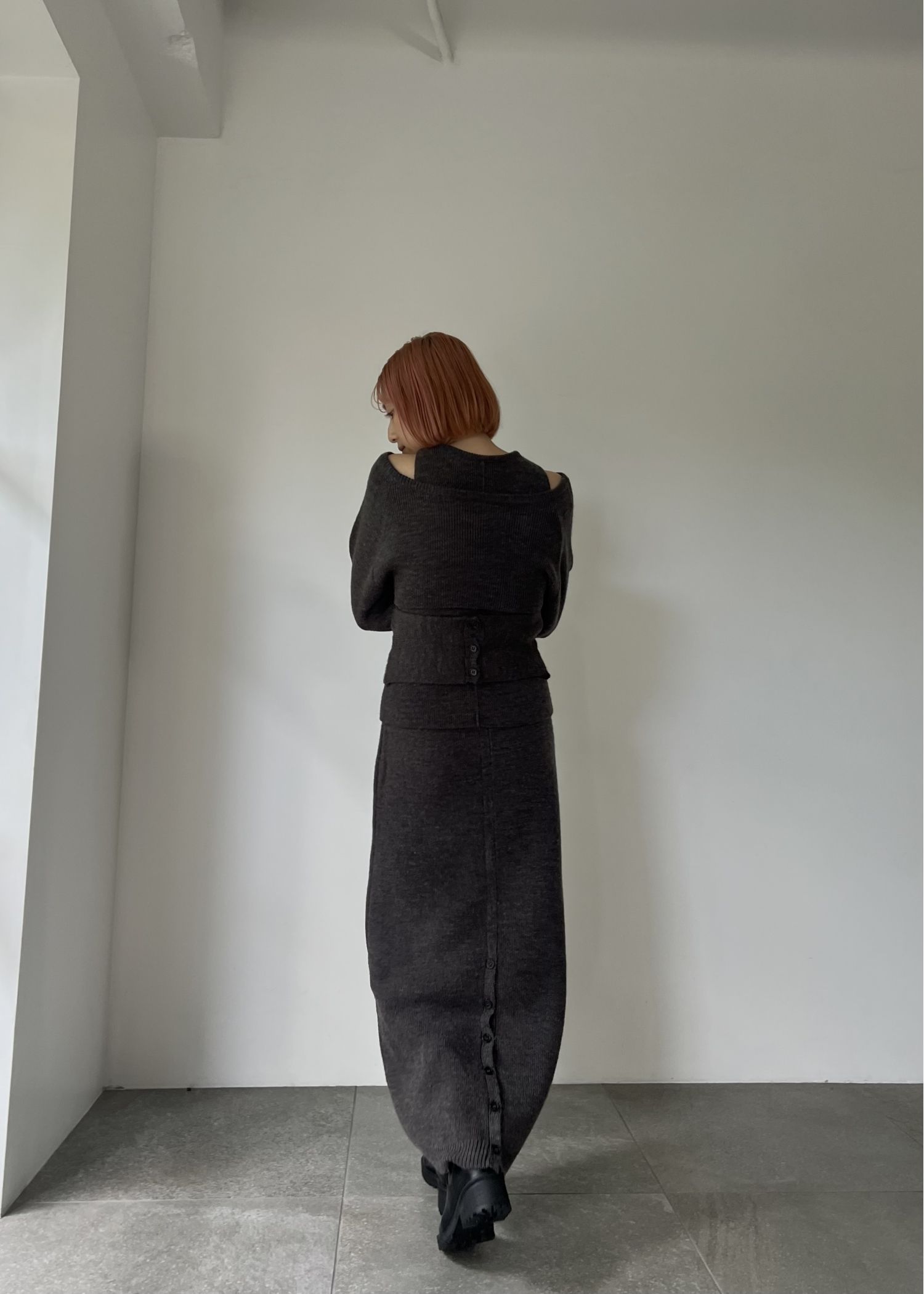button slit cocoon knit skirt