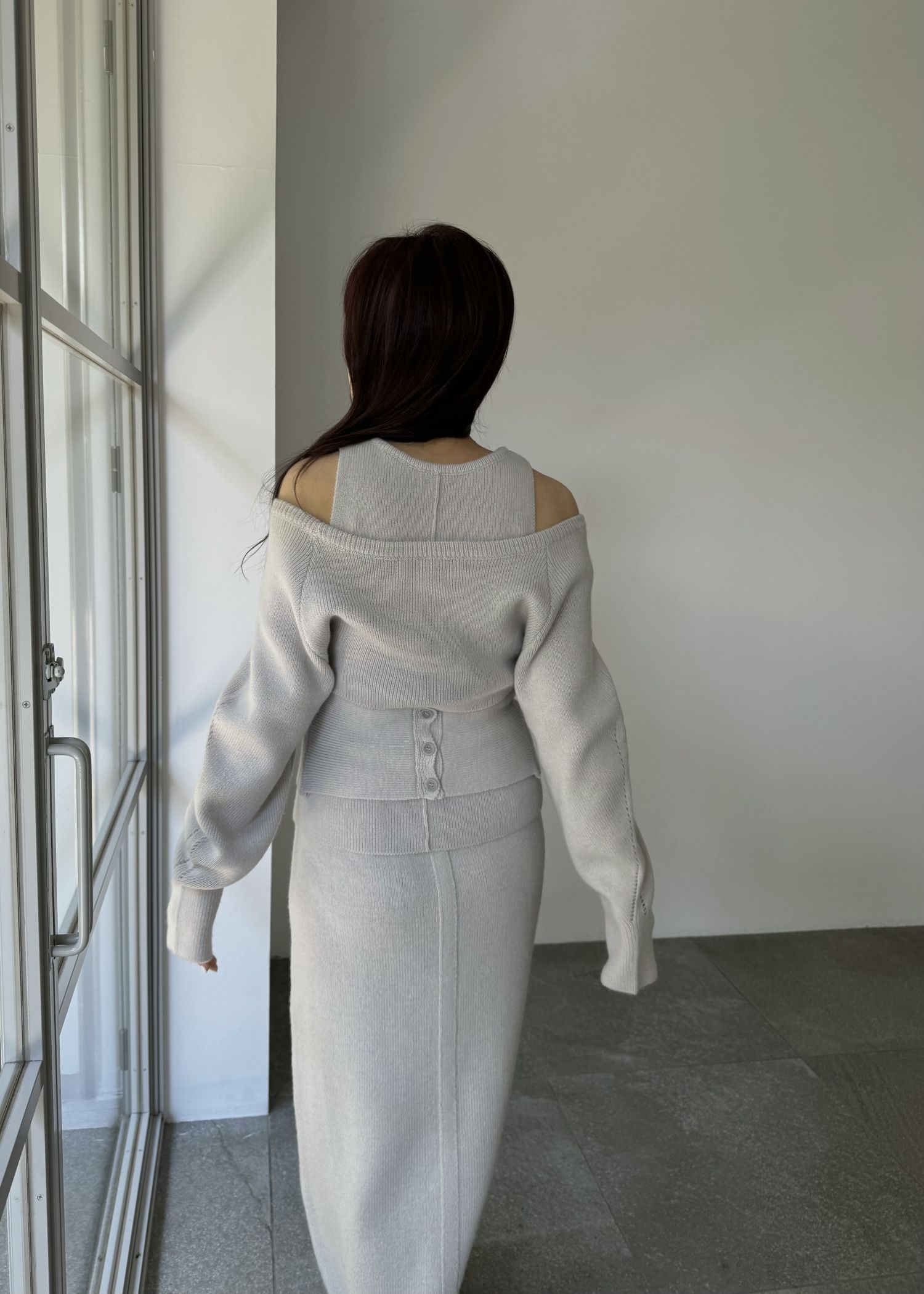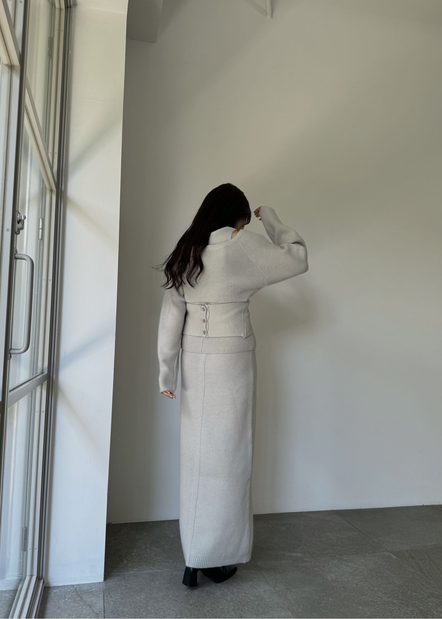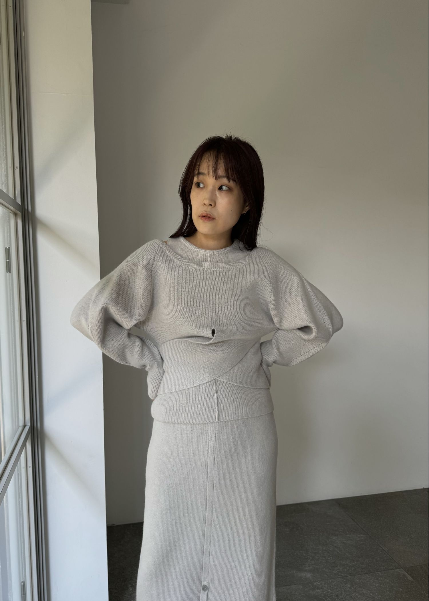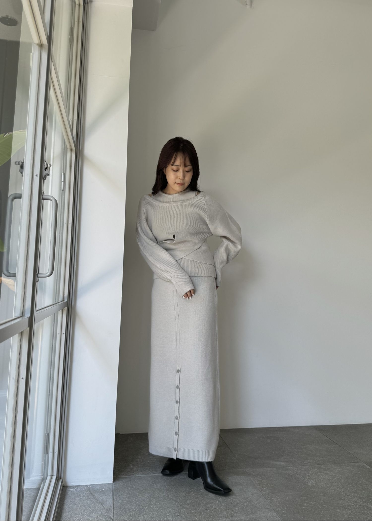 button slit cocoon knit skirt