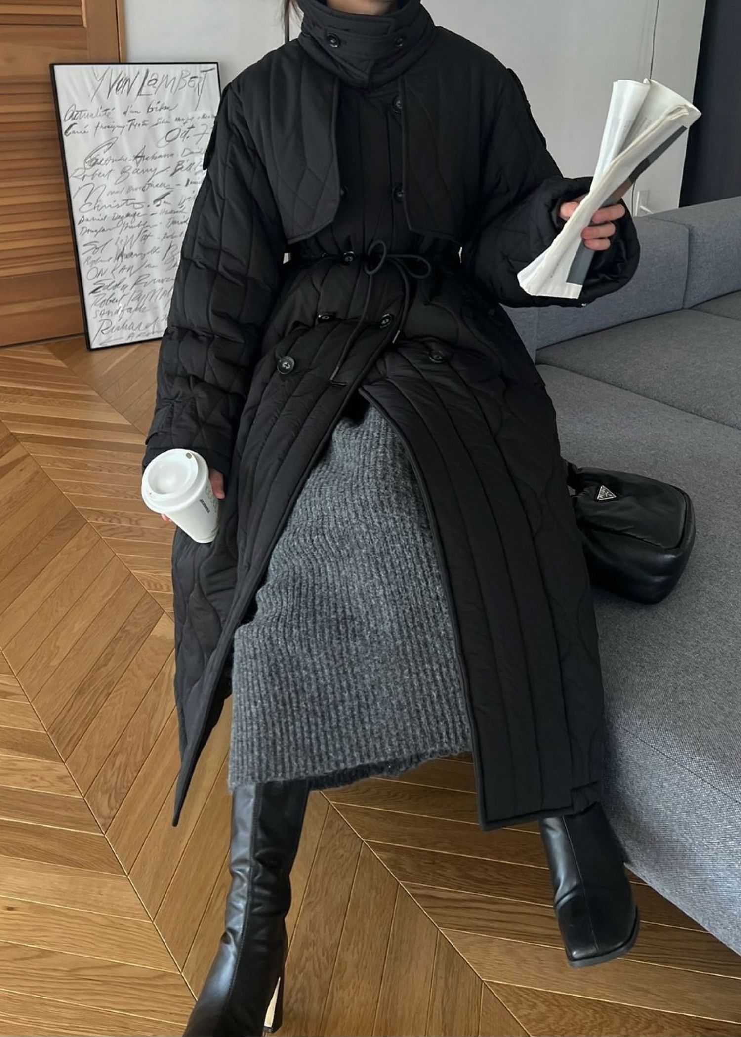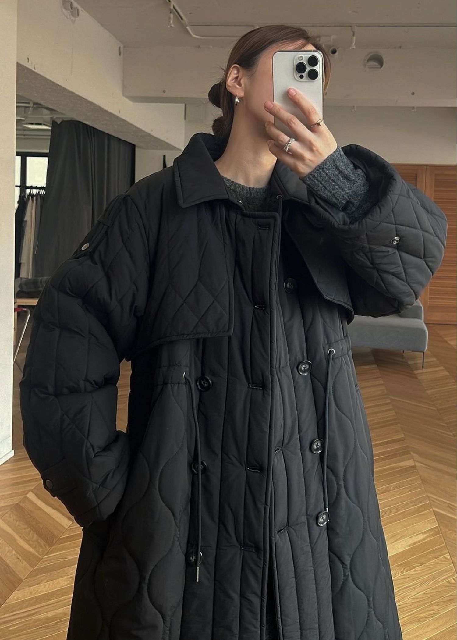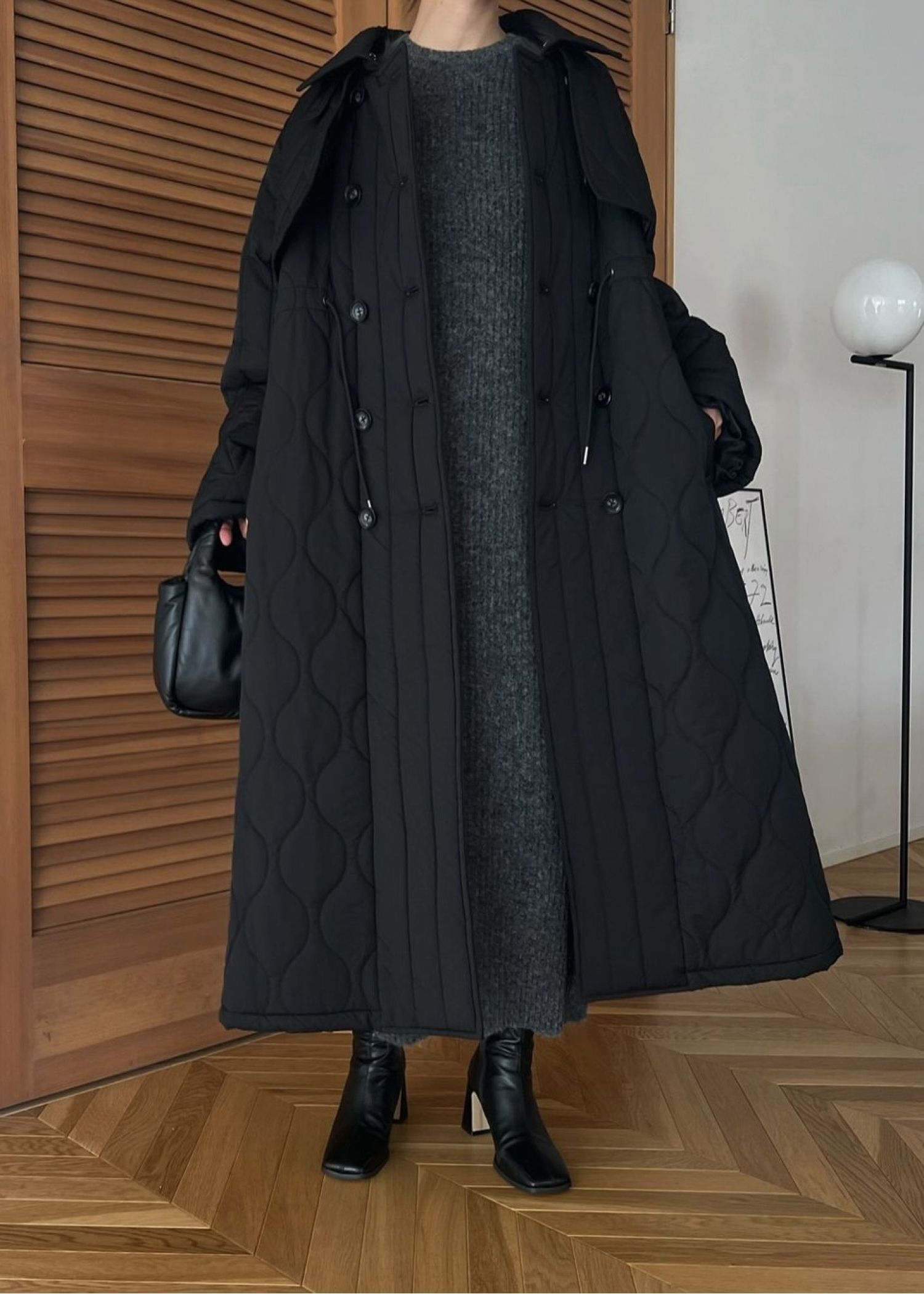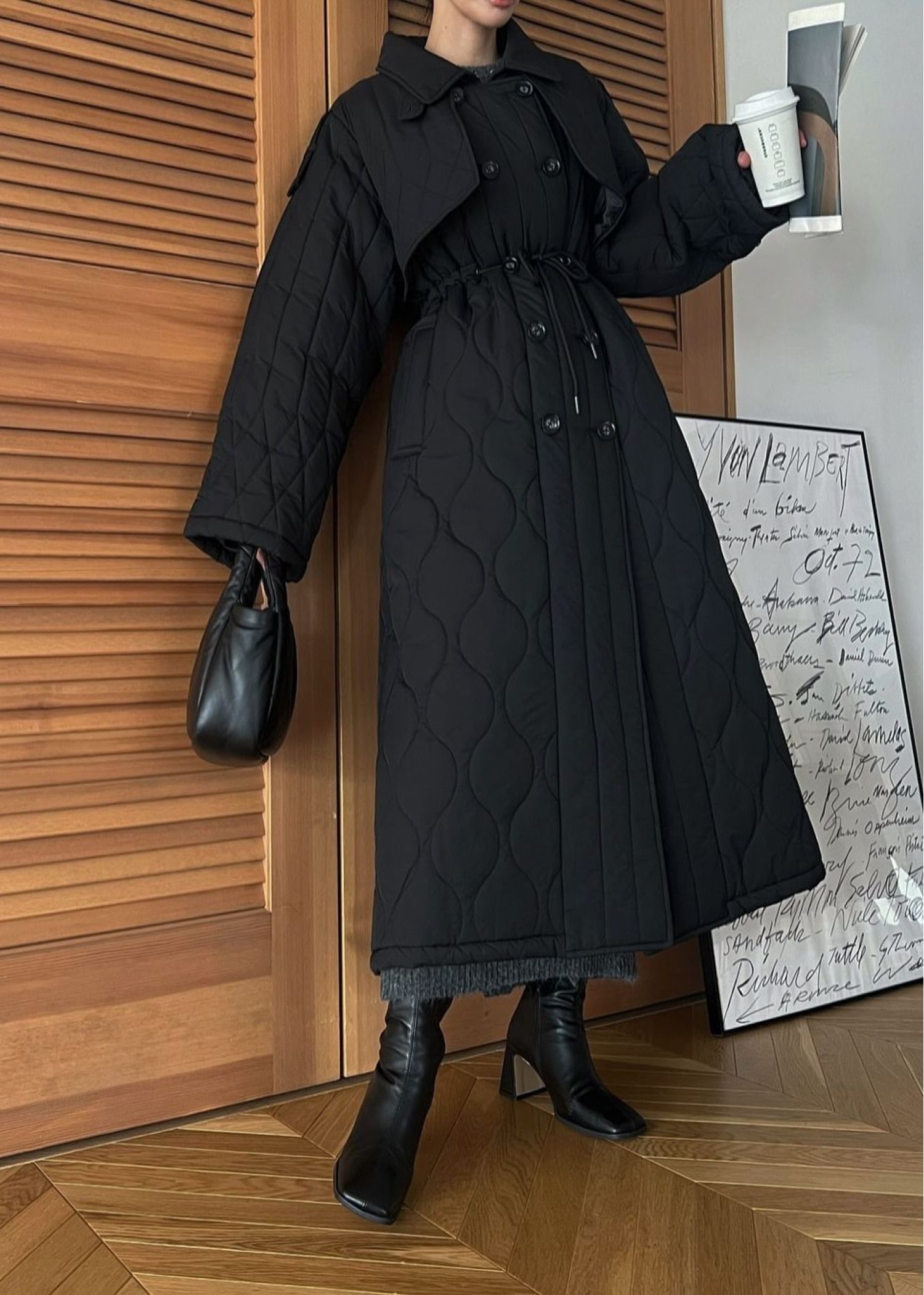 traverse quilting trench detail coat