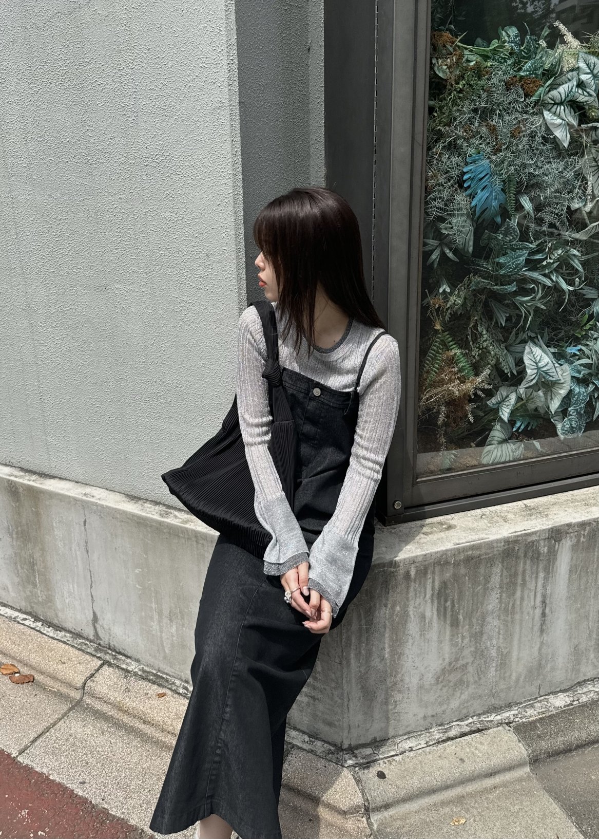double flare sleeve lame rib knit