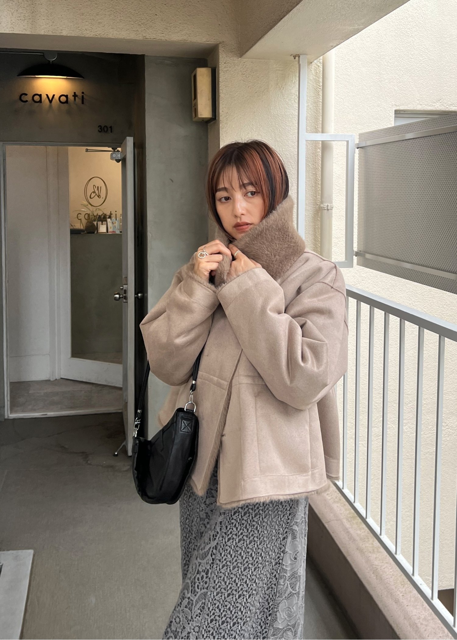 reversible fur suede soutien collar JK/coat