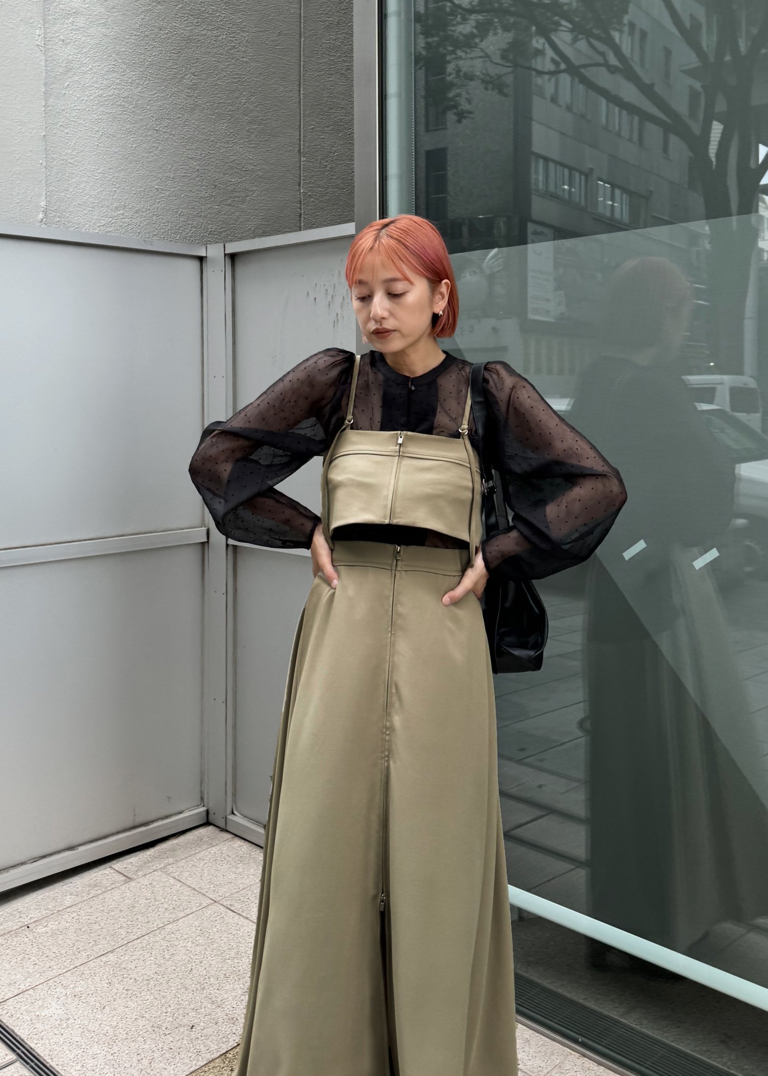 volume gather sleeve dot sheer BL