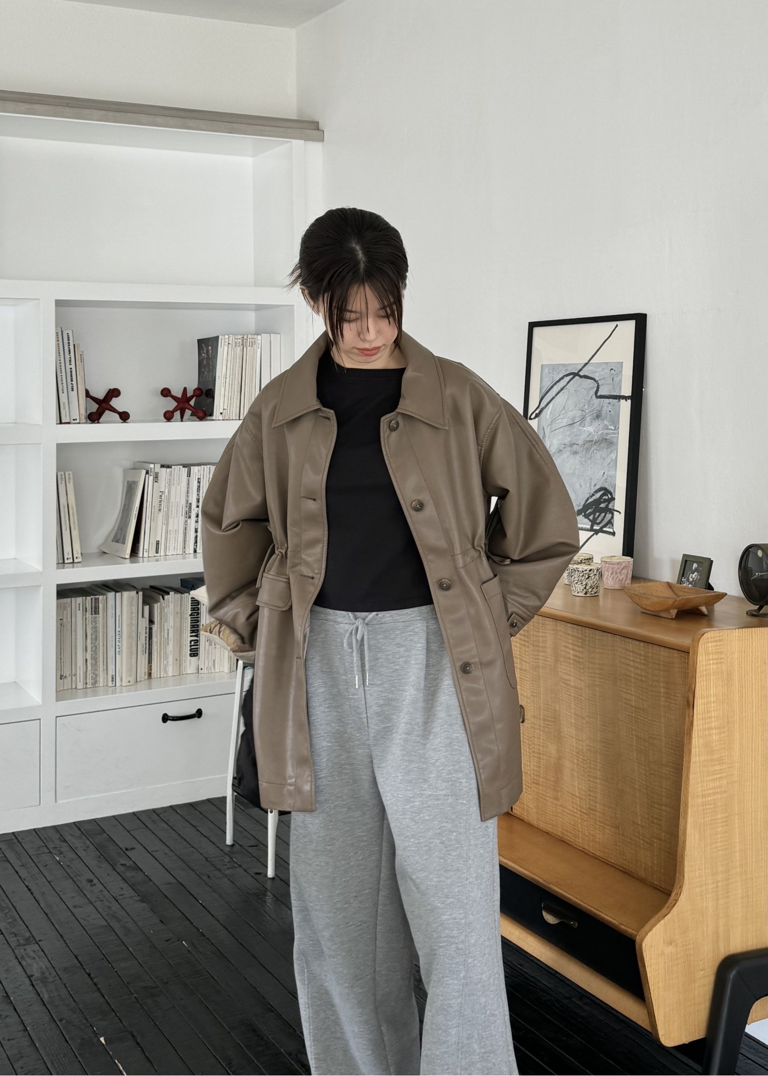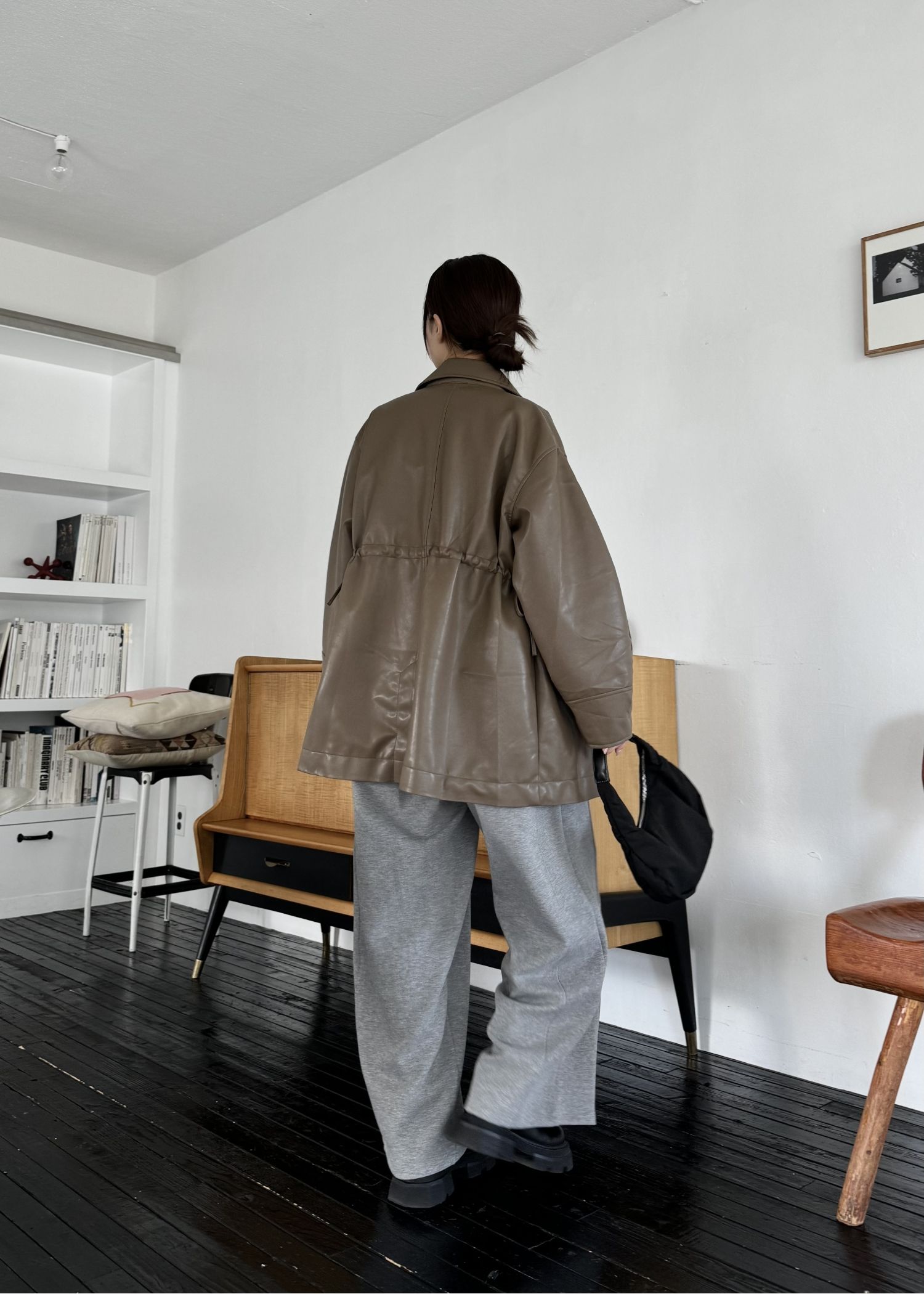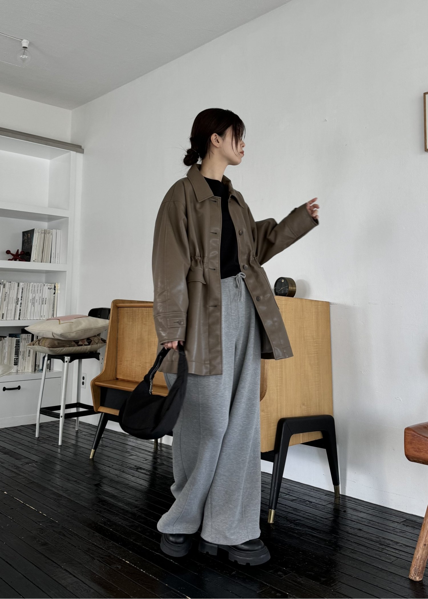 waist gather peplum synthetic leather JK