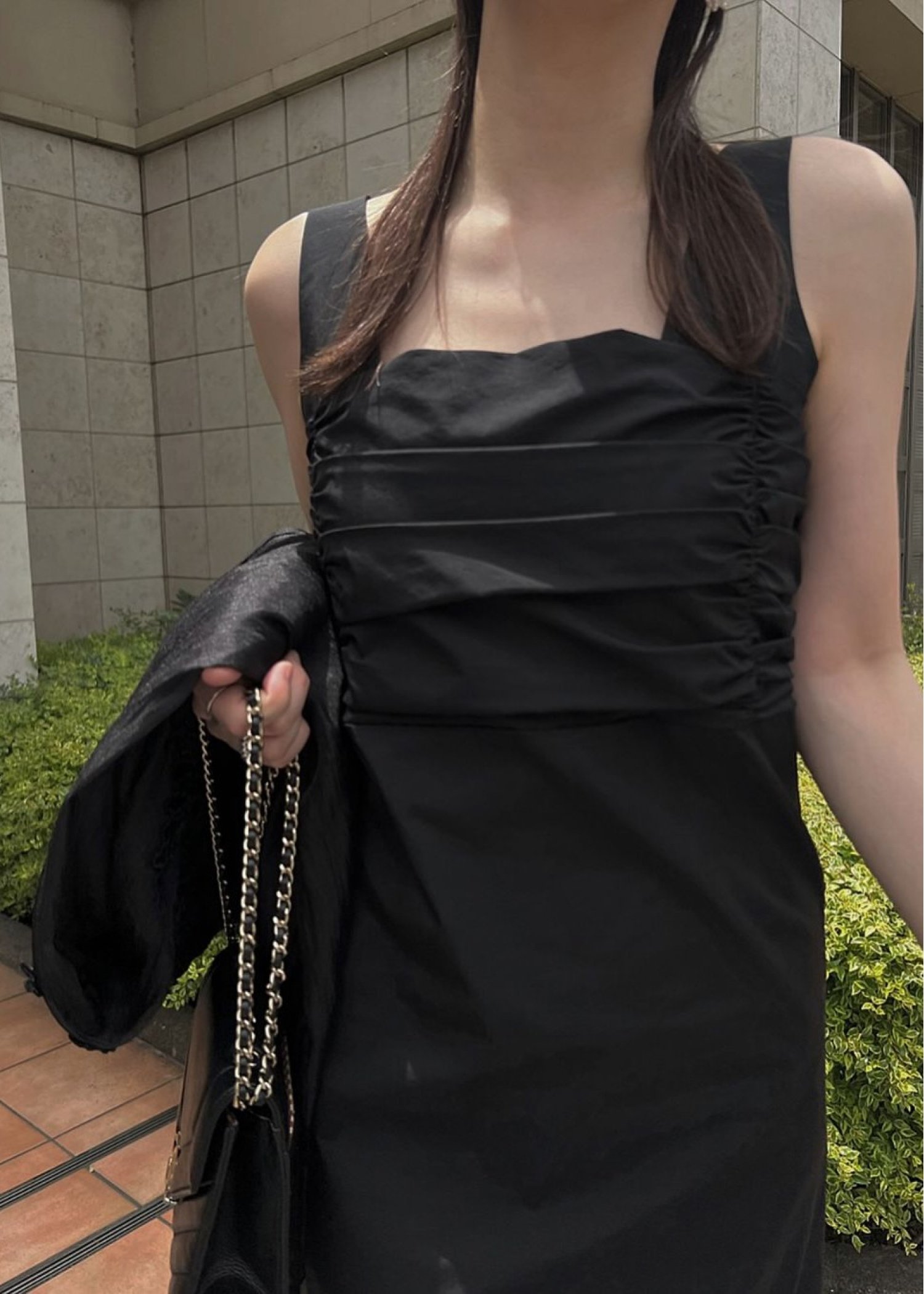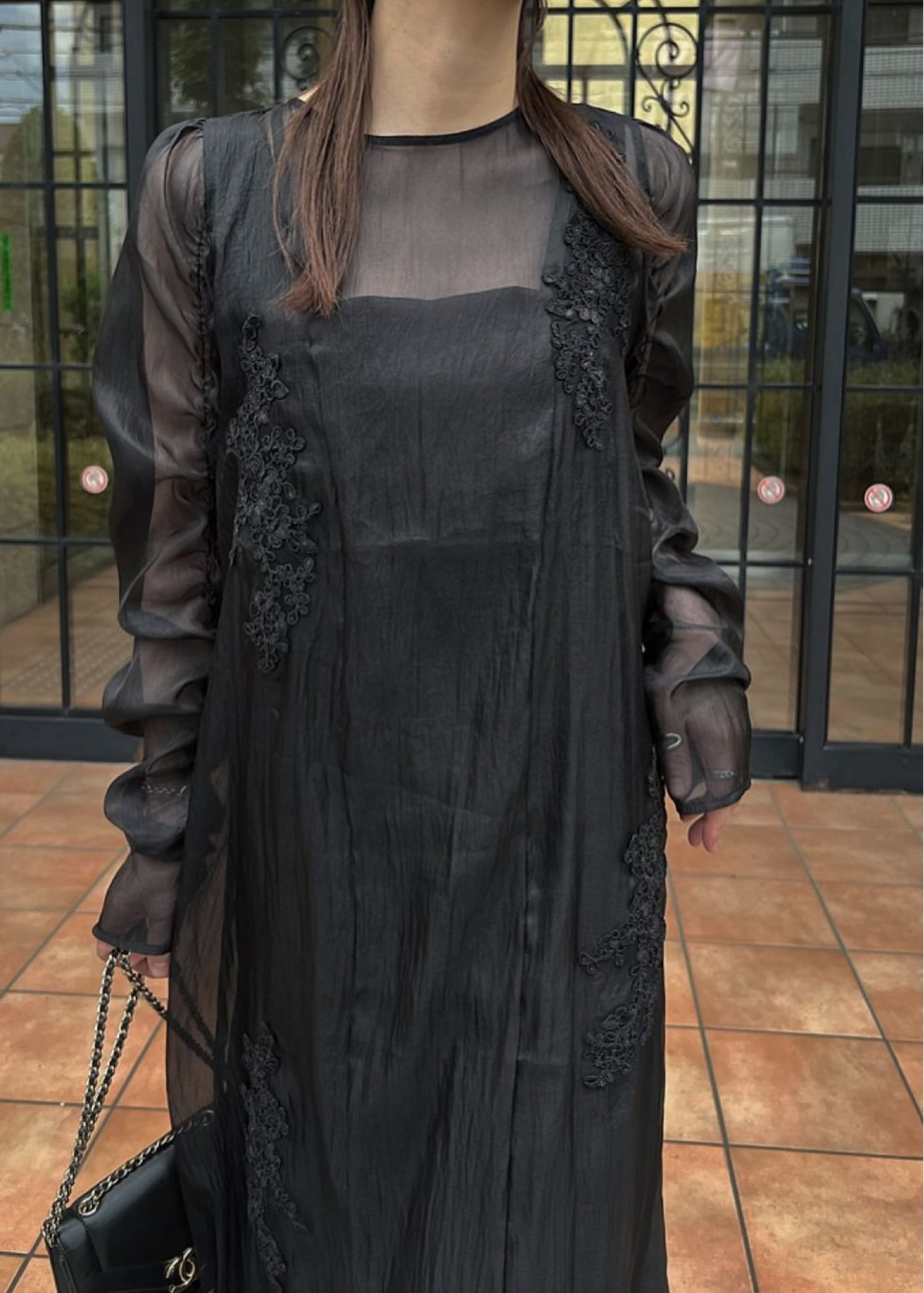 sheer motif lace OP & gather breast tank OP SET