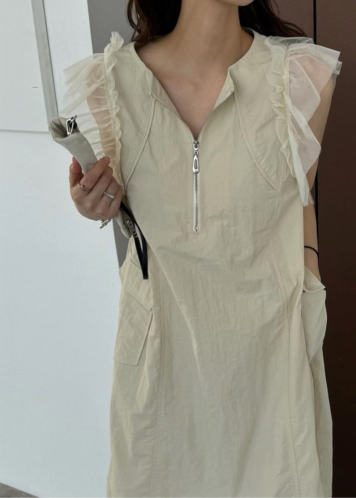 tulle frill no sleeve nylon zip OP