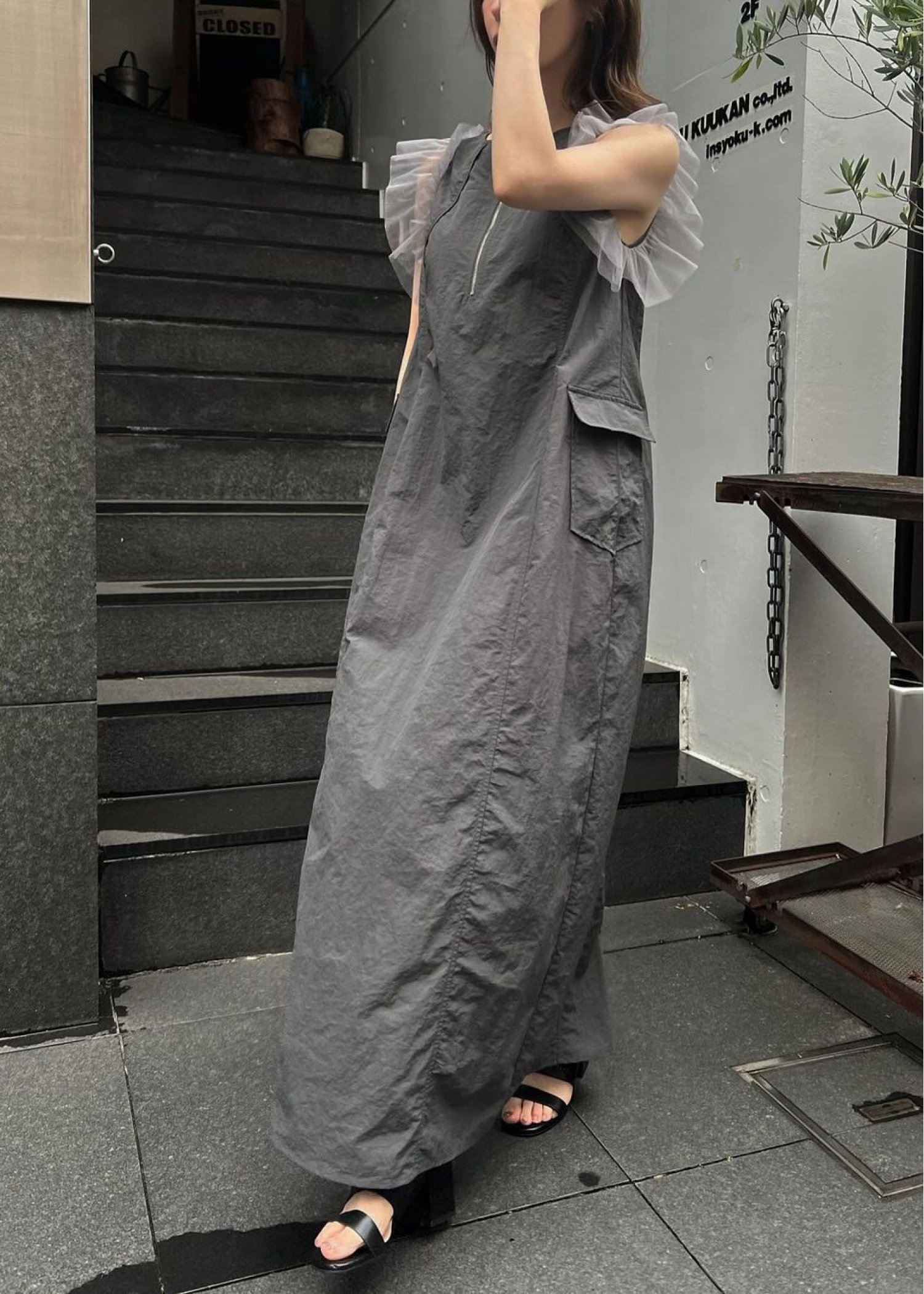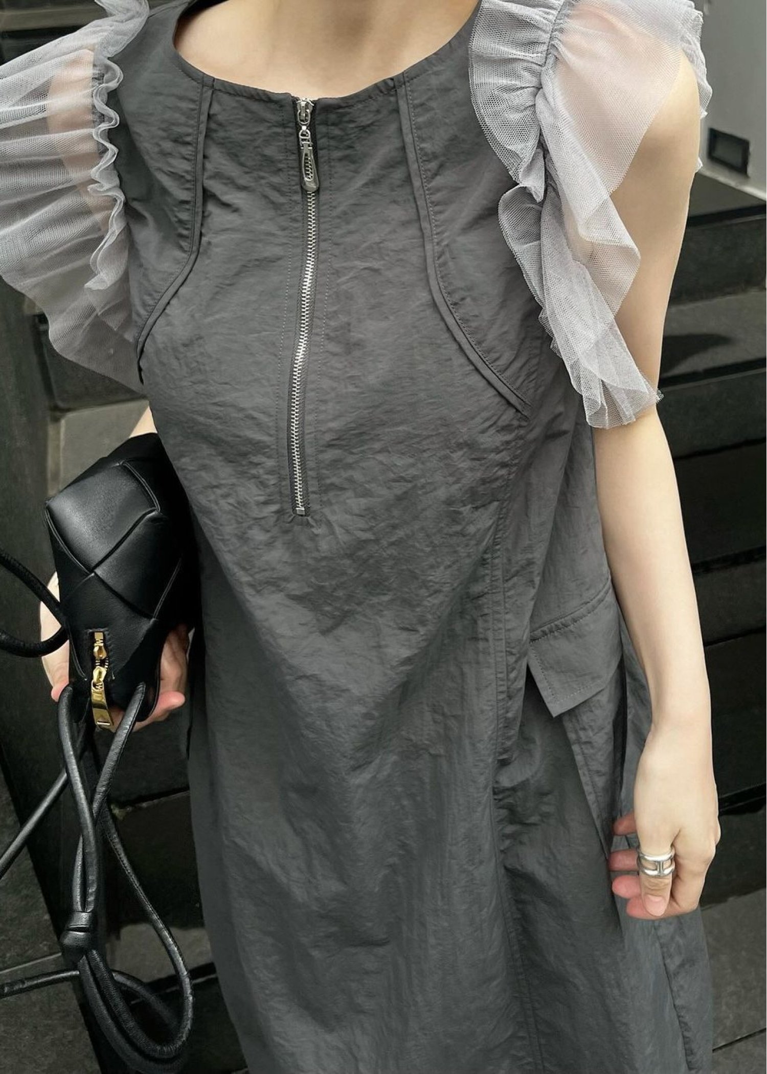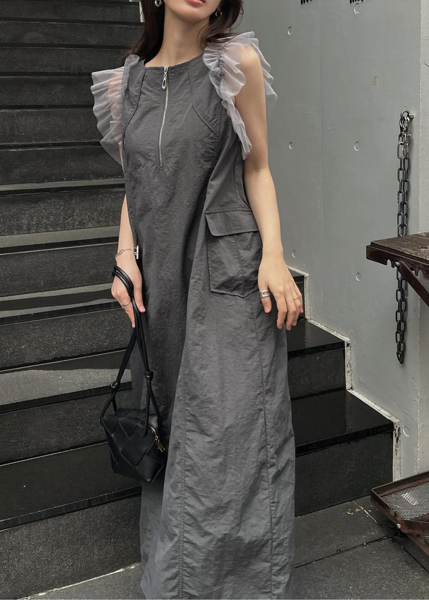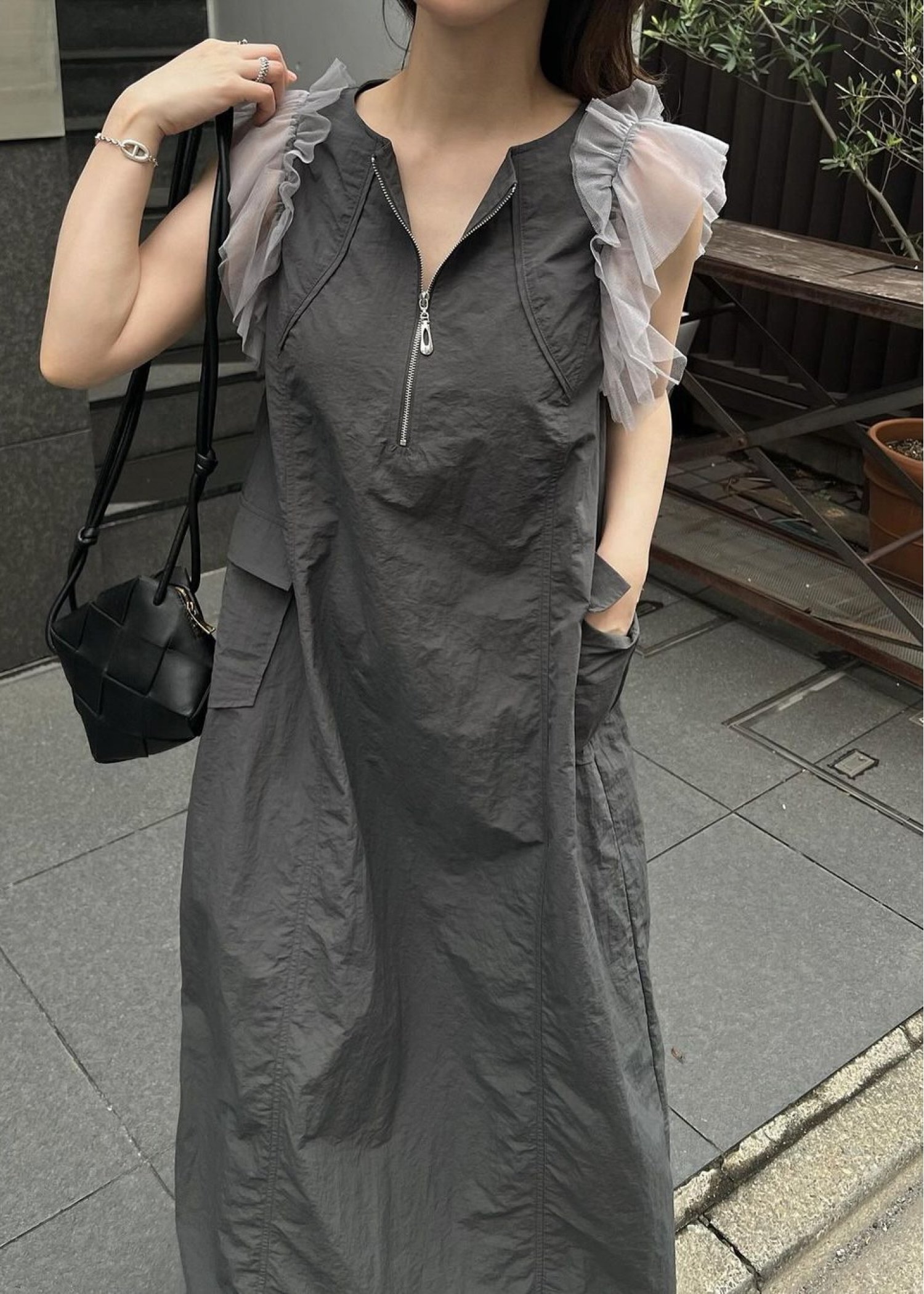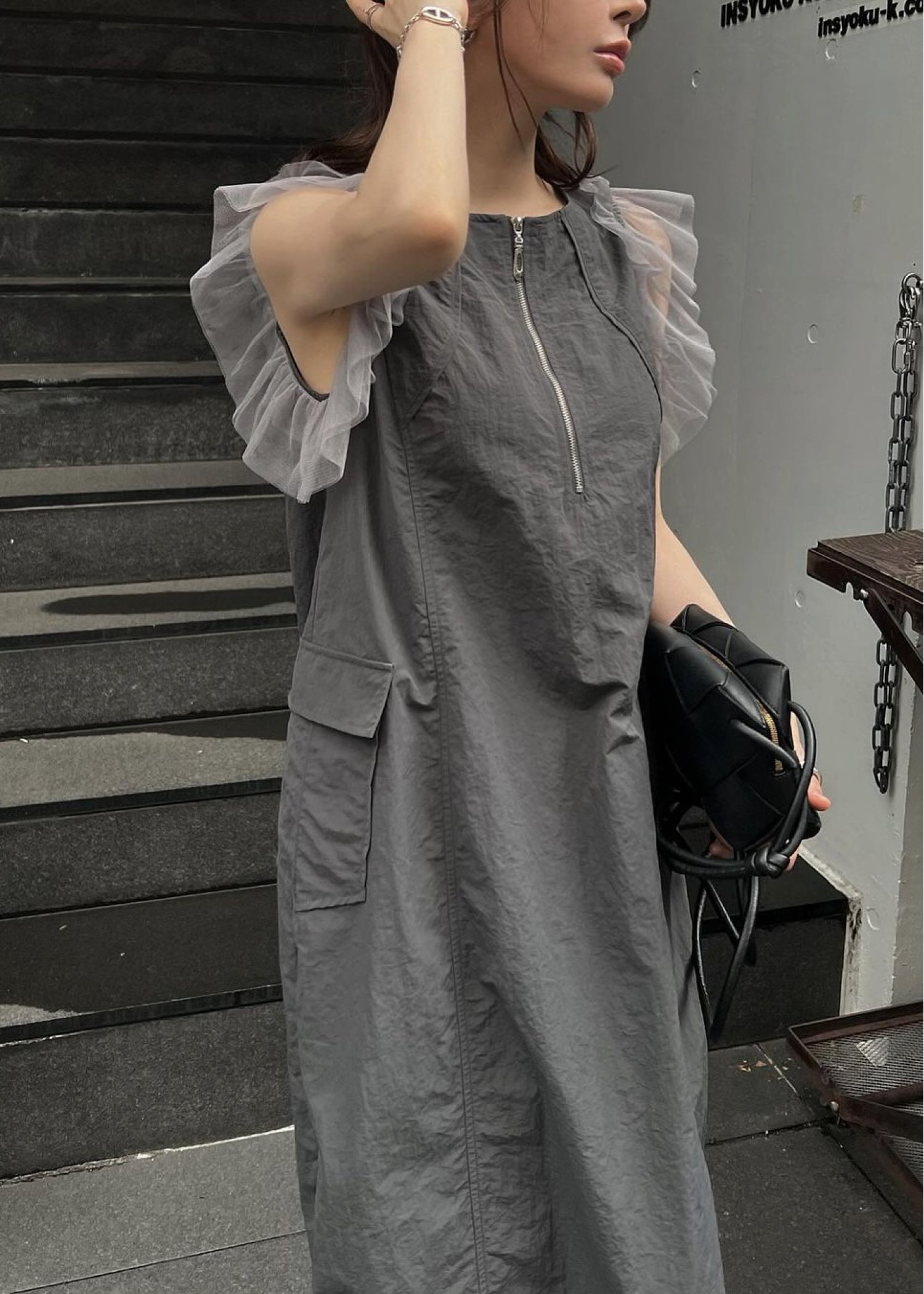 tulle frill no sleeve nylon zip OP