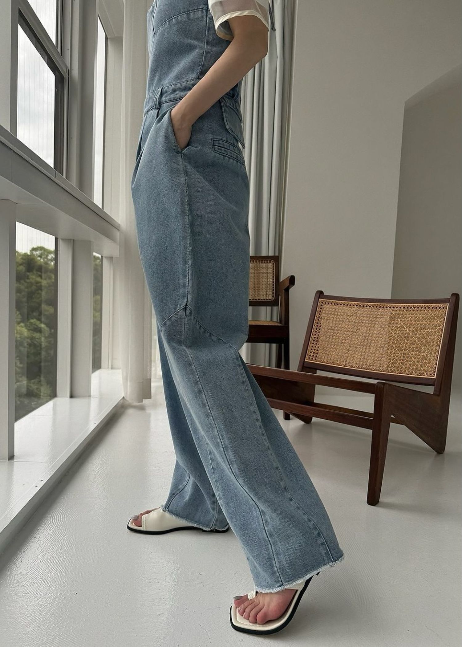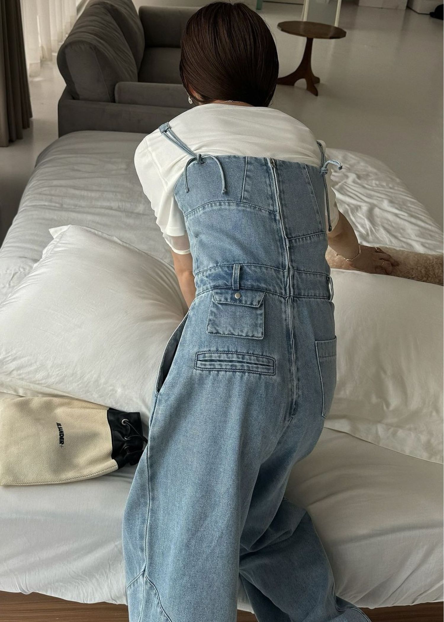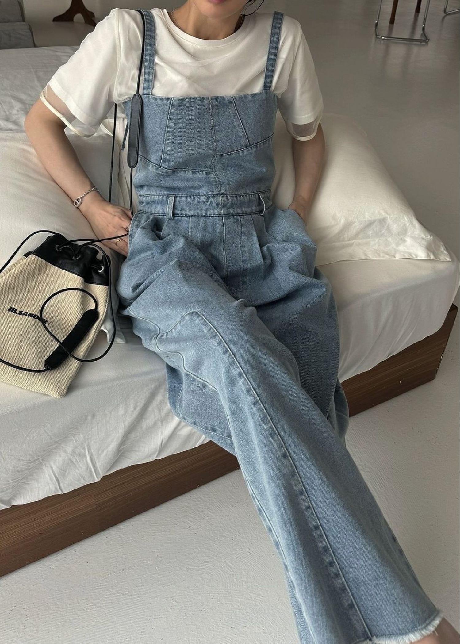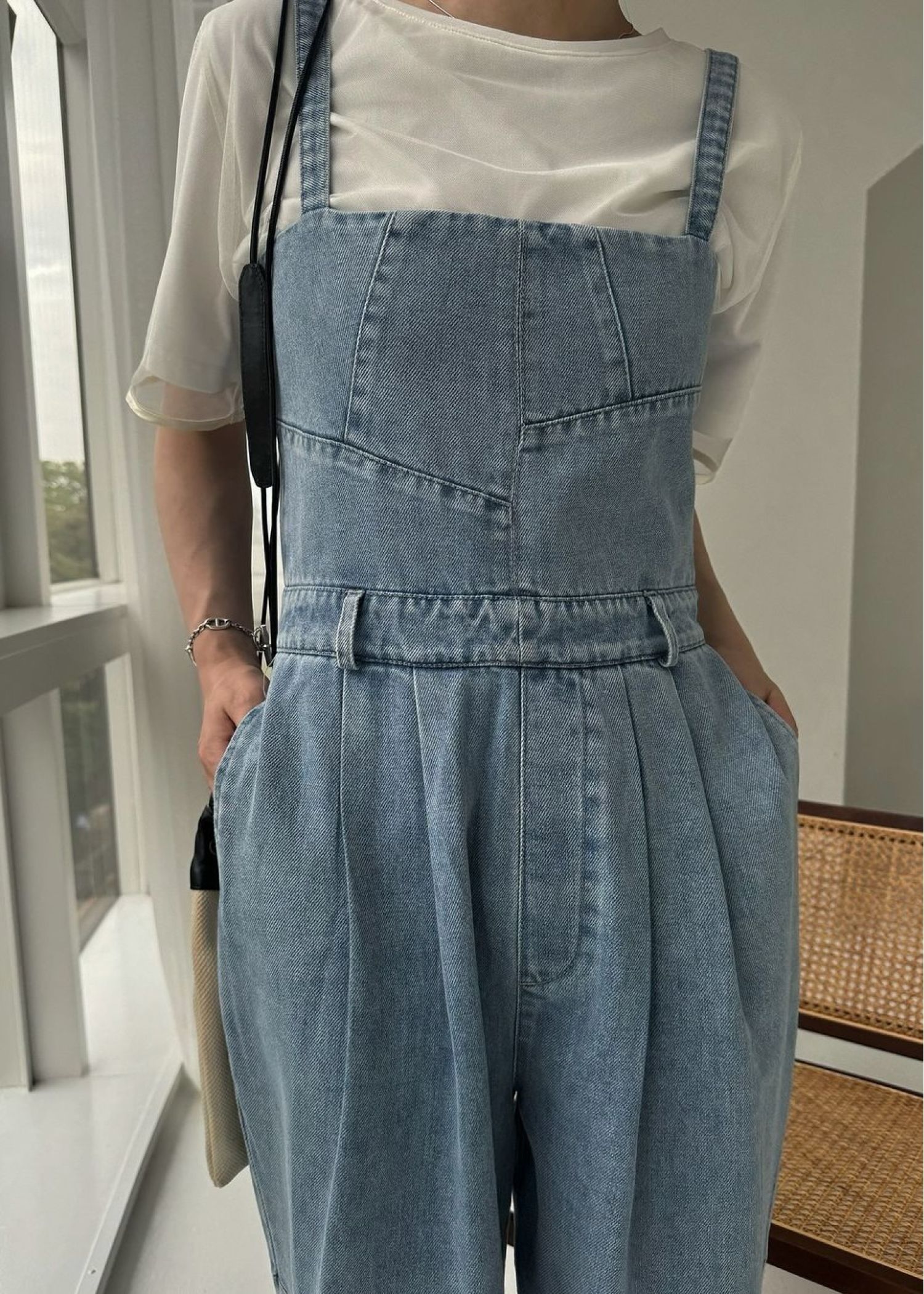 asymmetry patchwork denim all-in-one