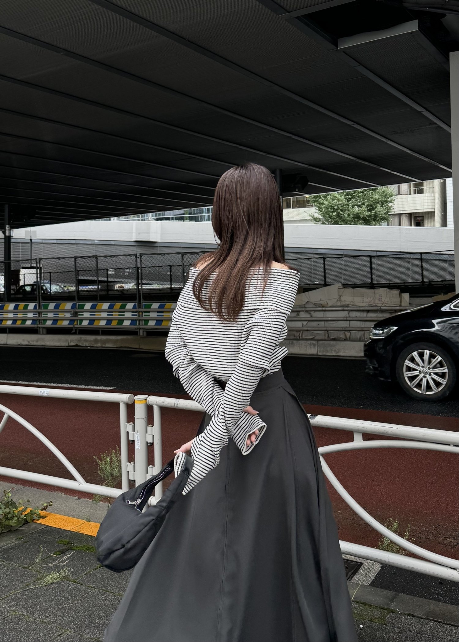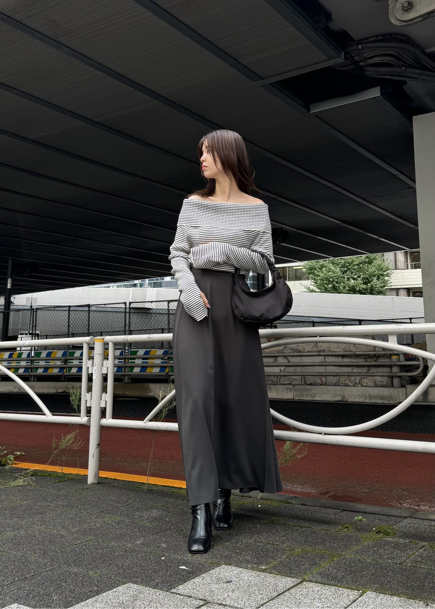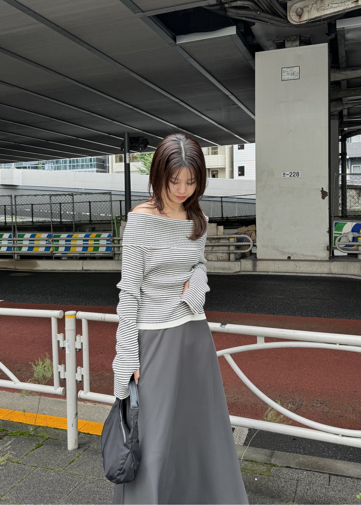 rib turnup off shoulder color schem knit