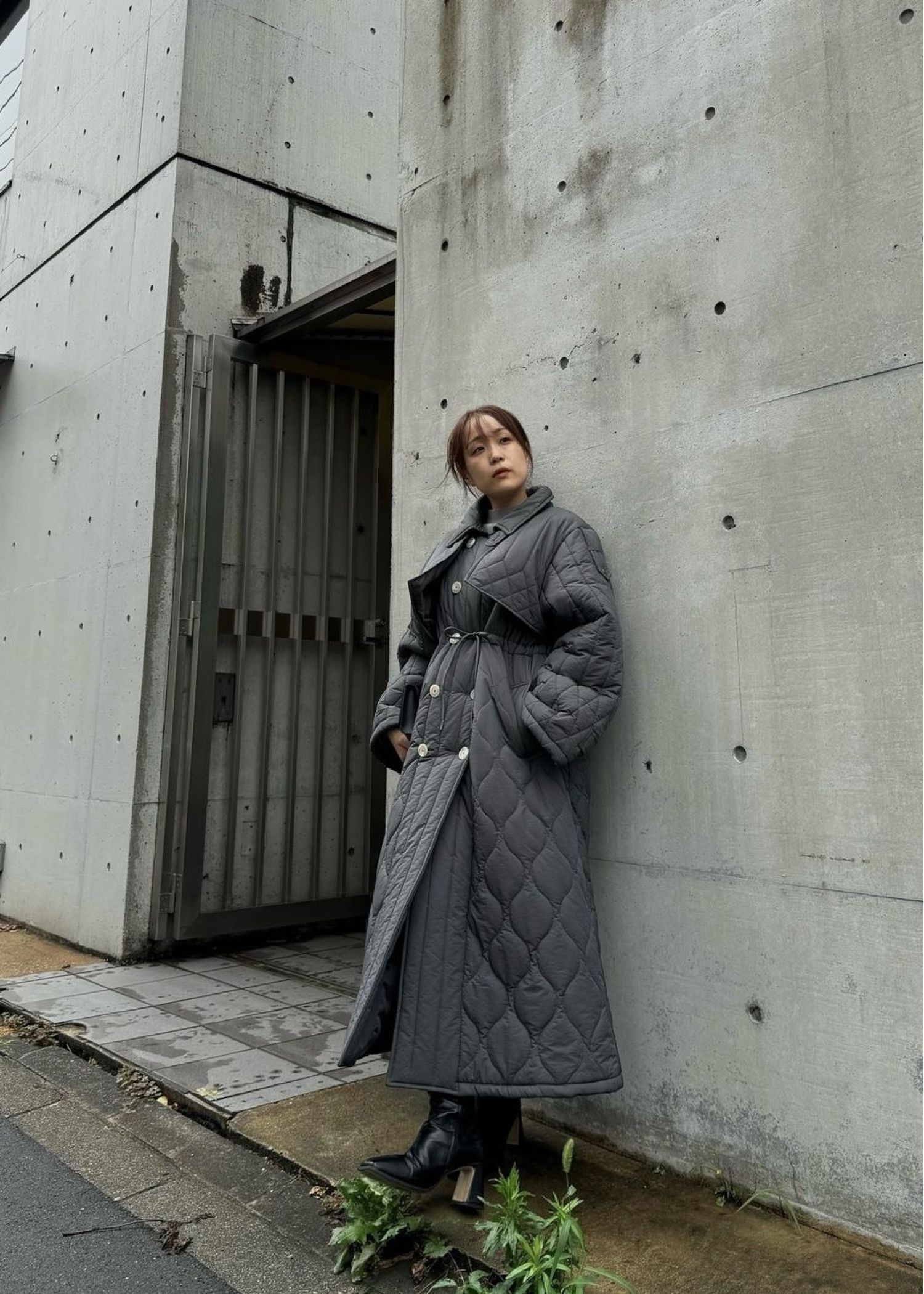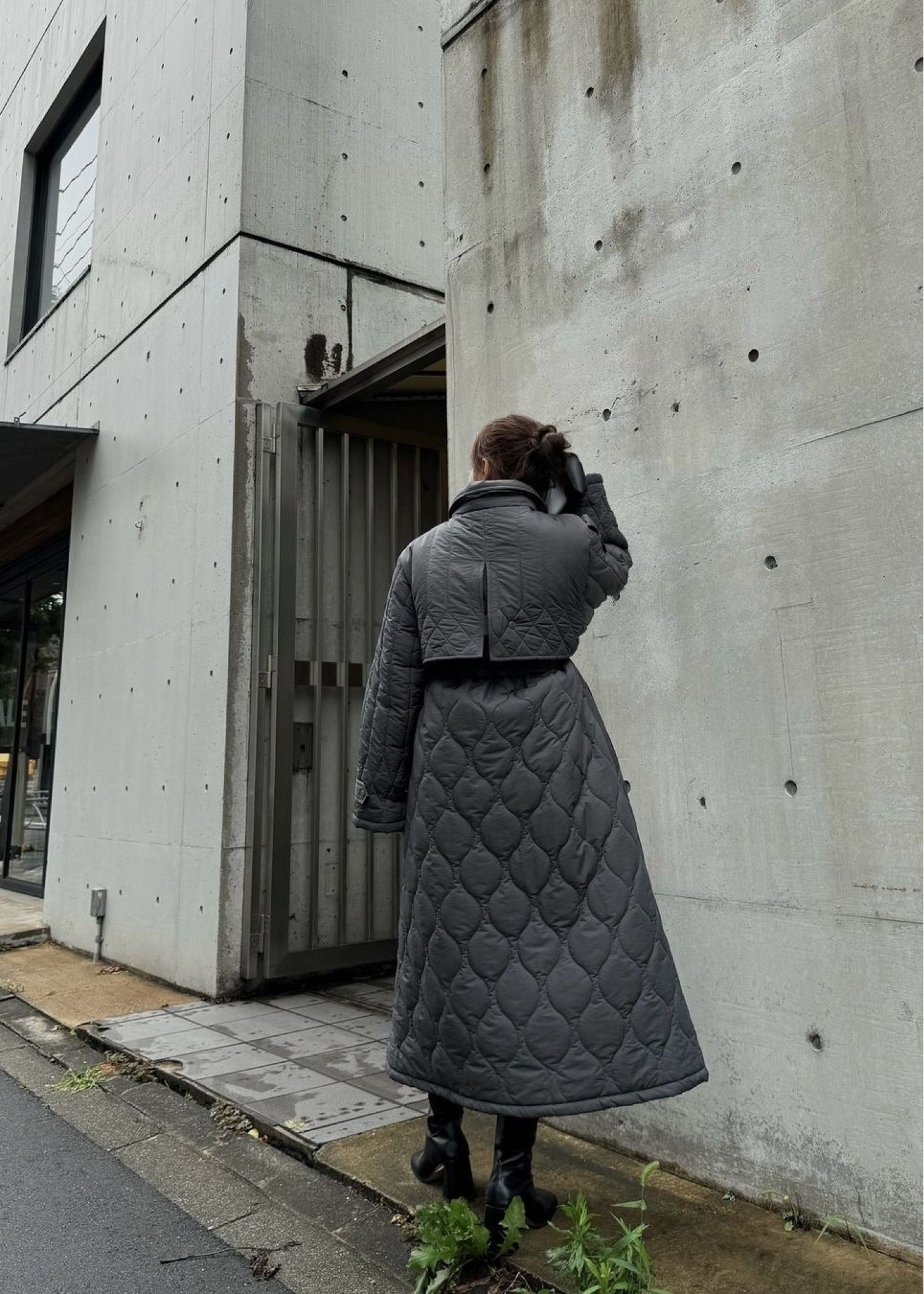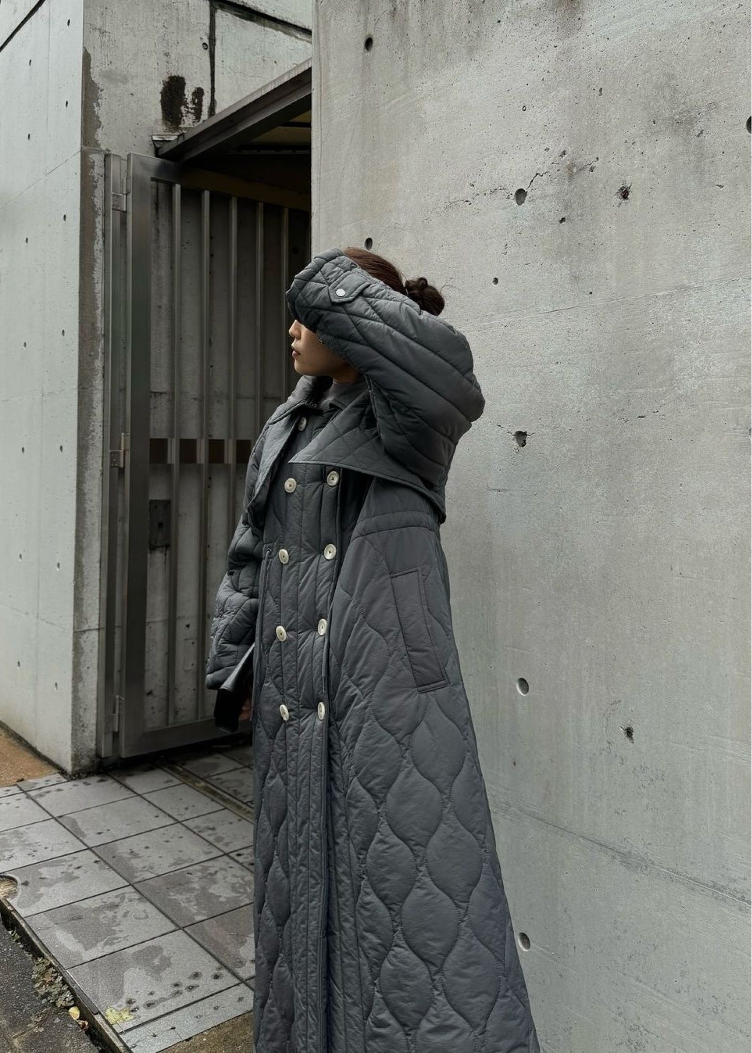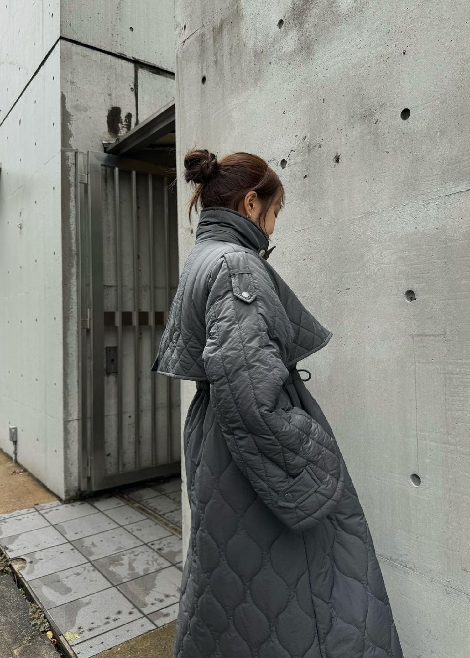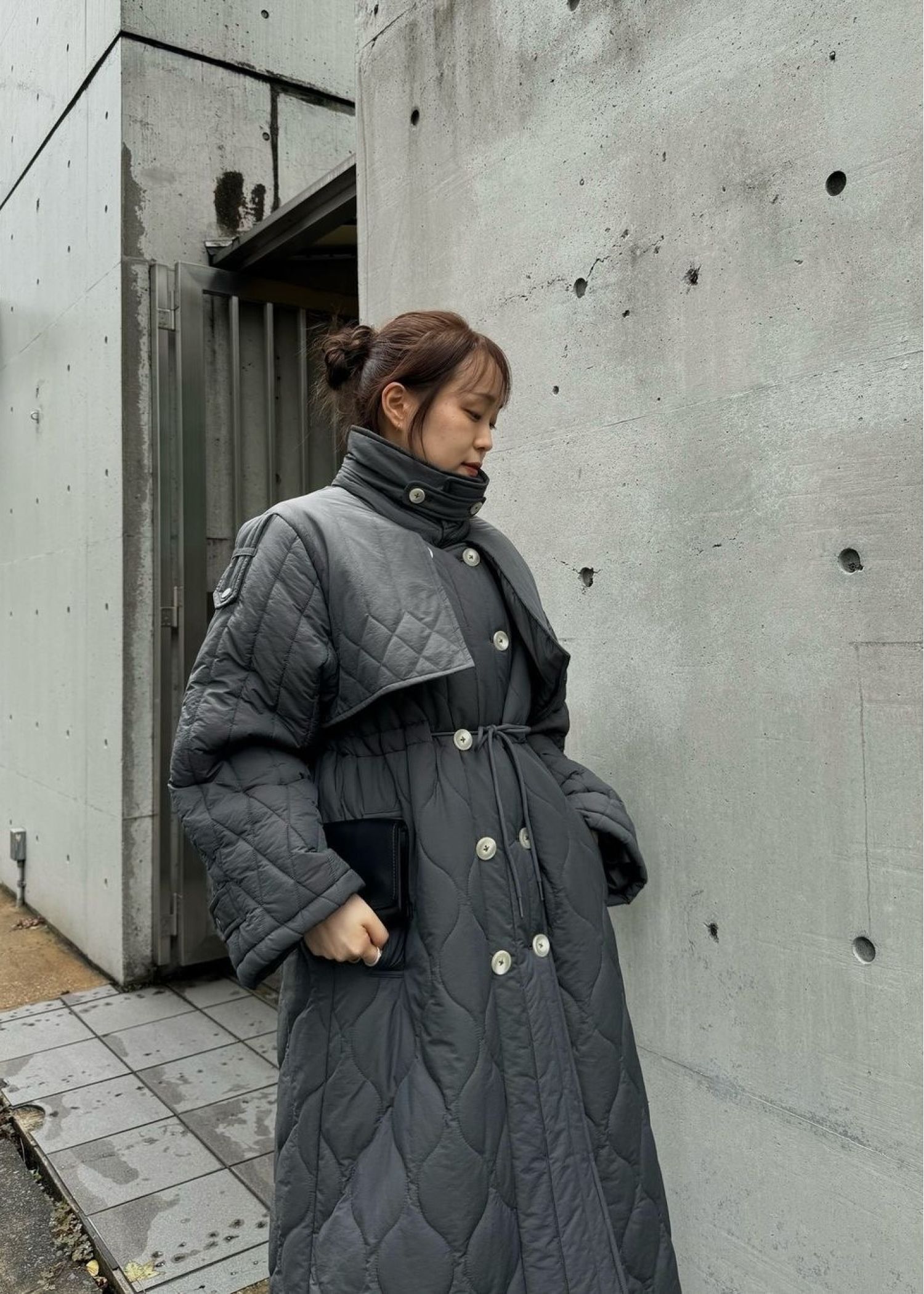 traverse quilting trench detail coat