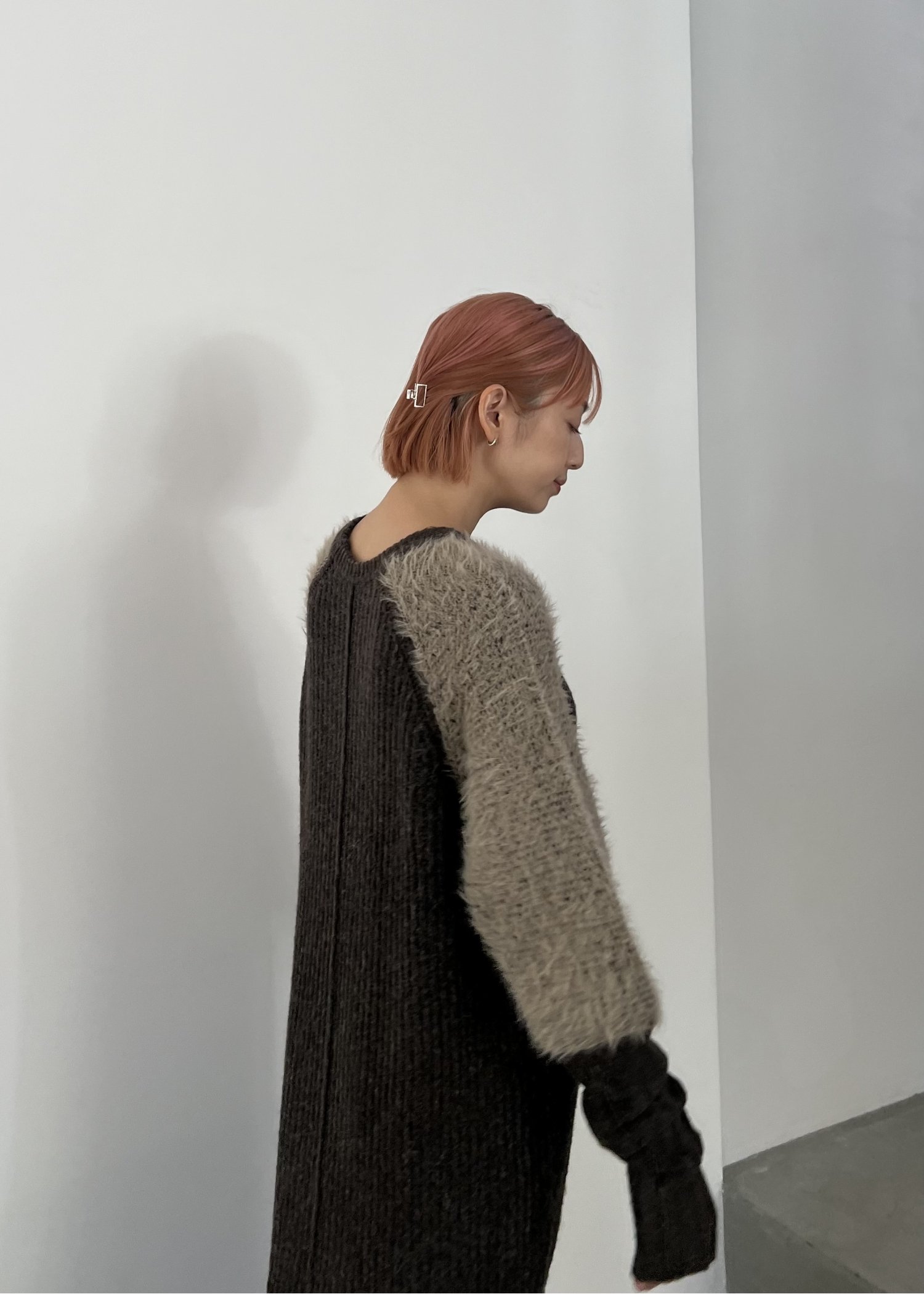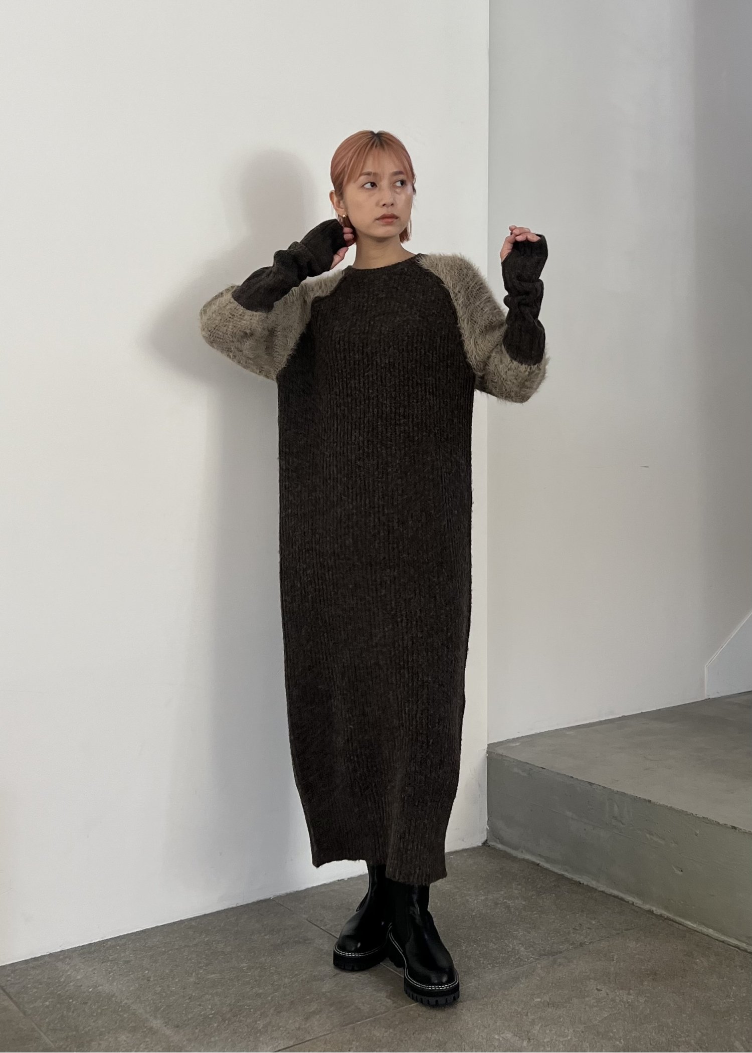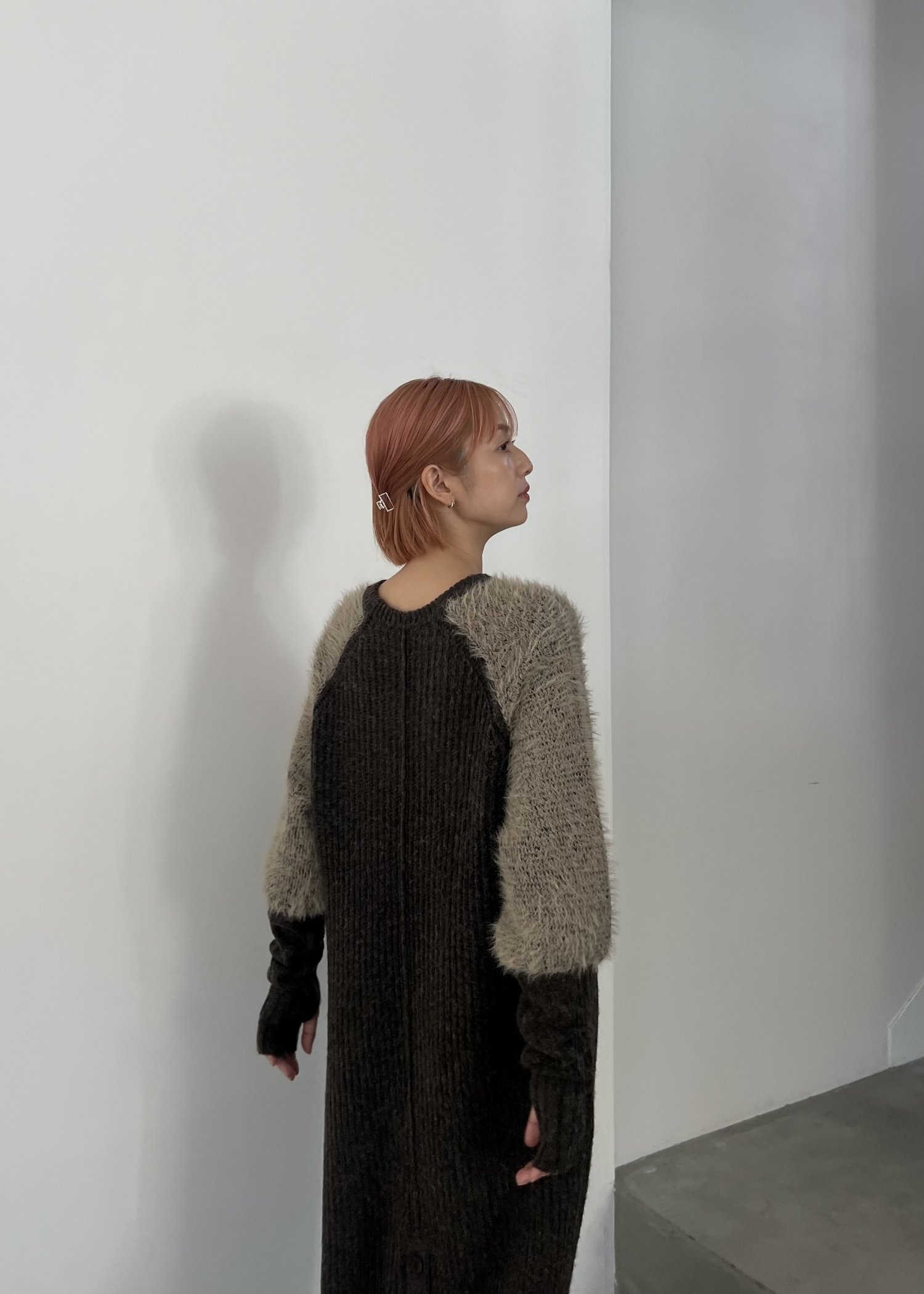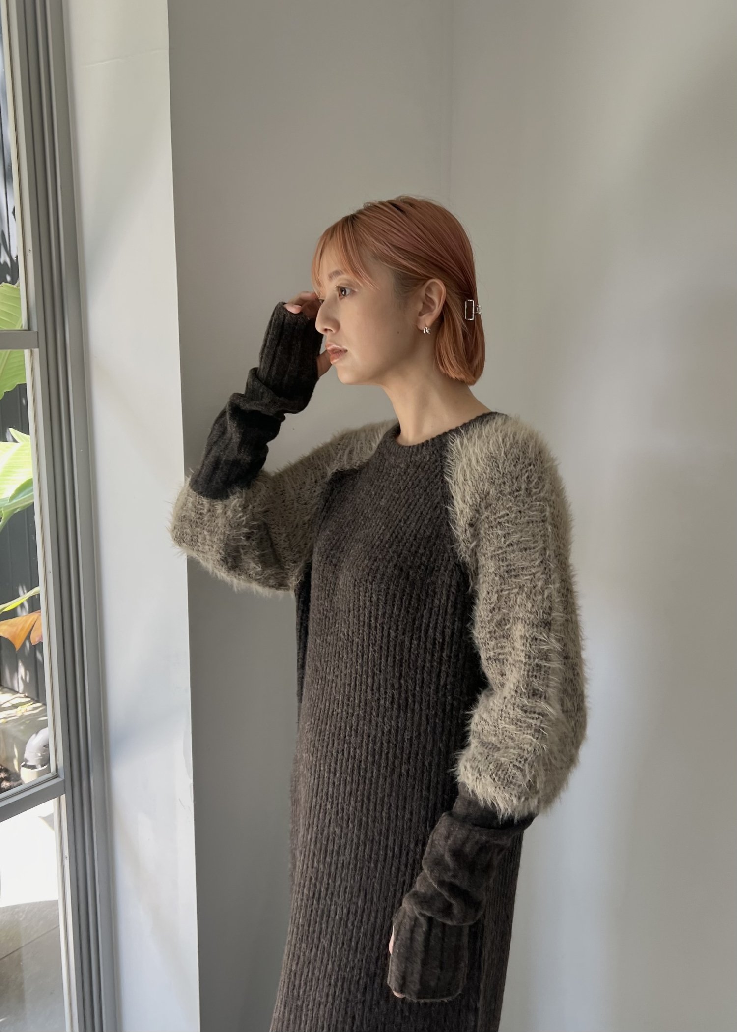 shaggy sleeve finger hole long knit op