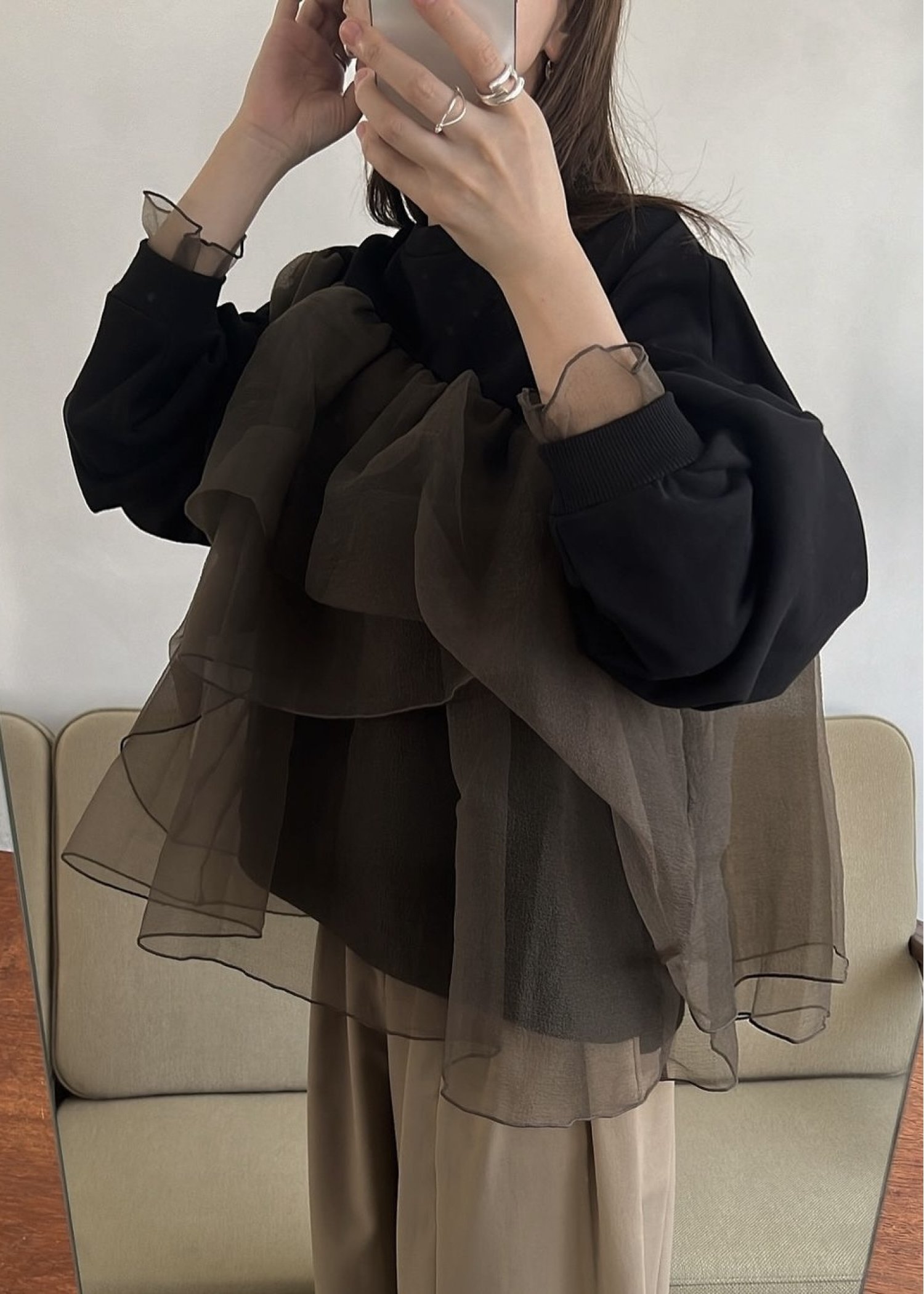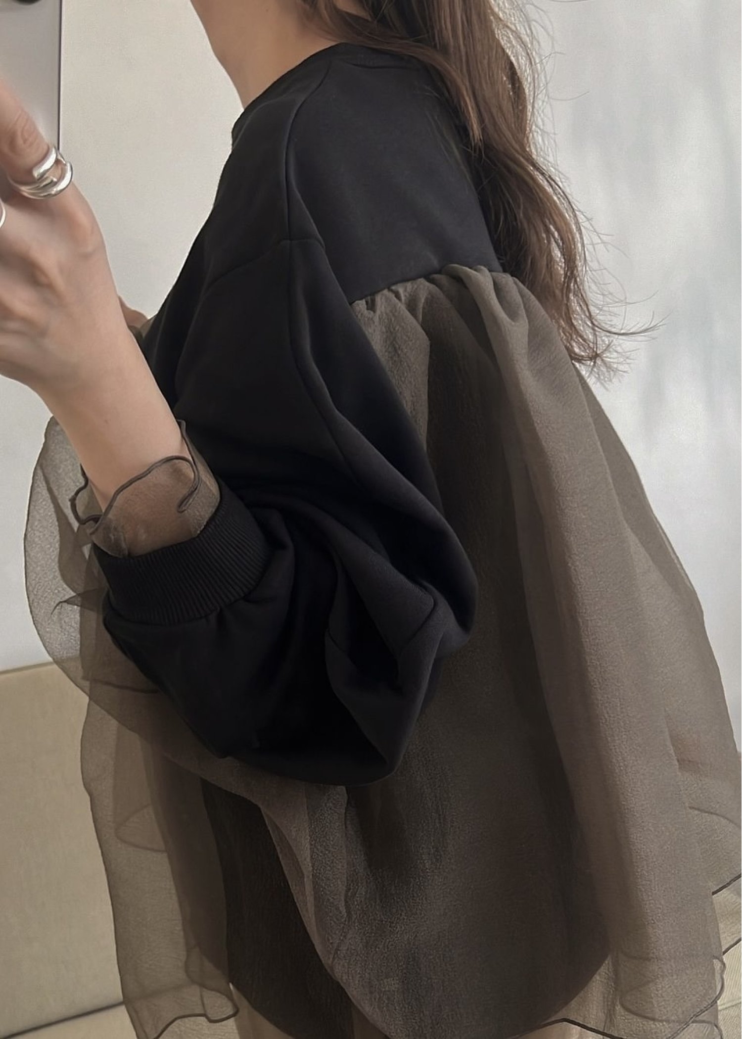 slant organdy docking sweat tops
