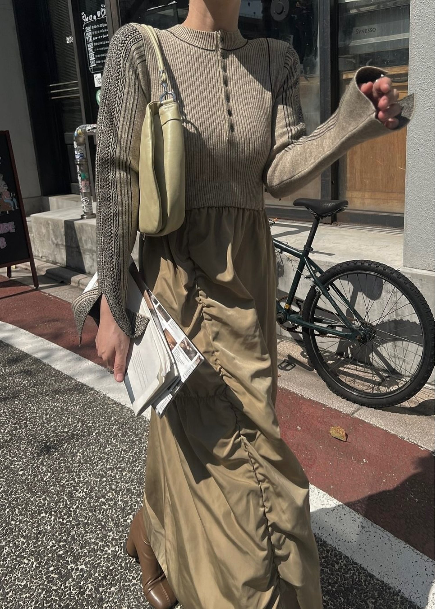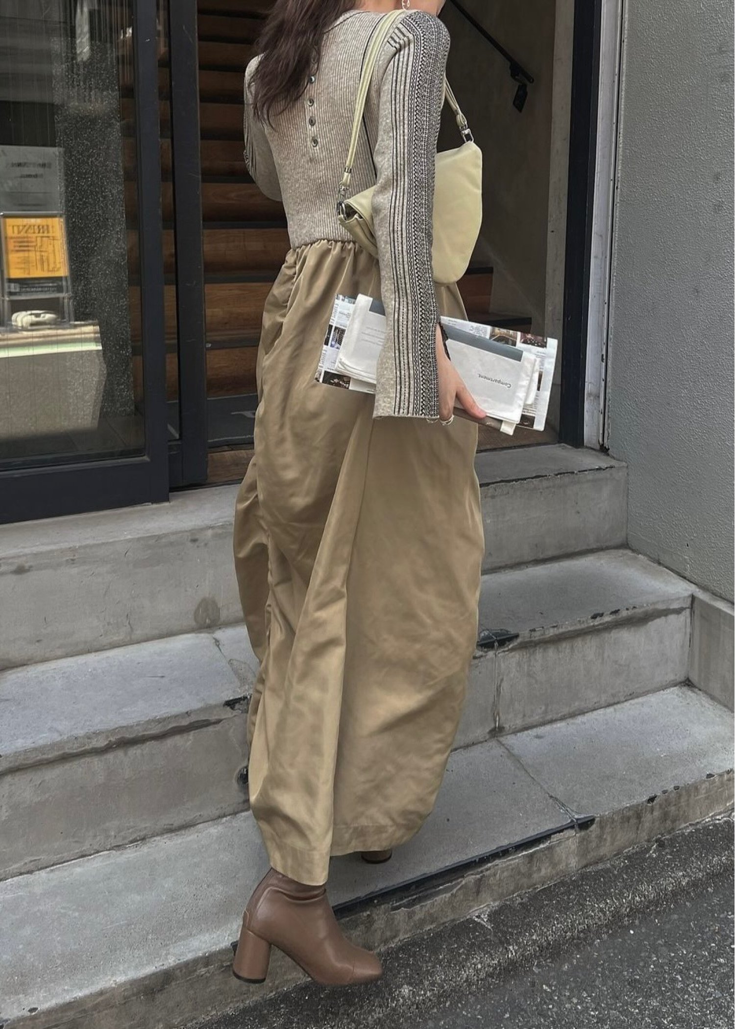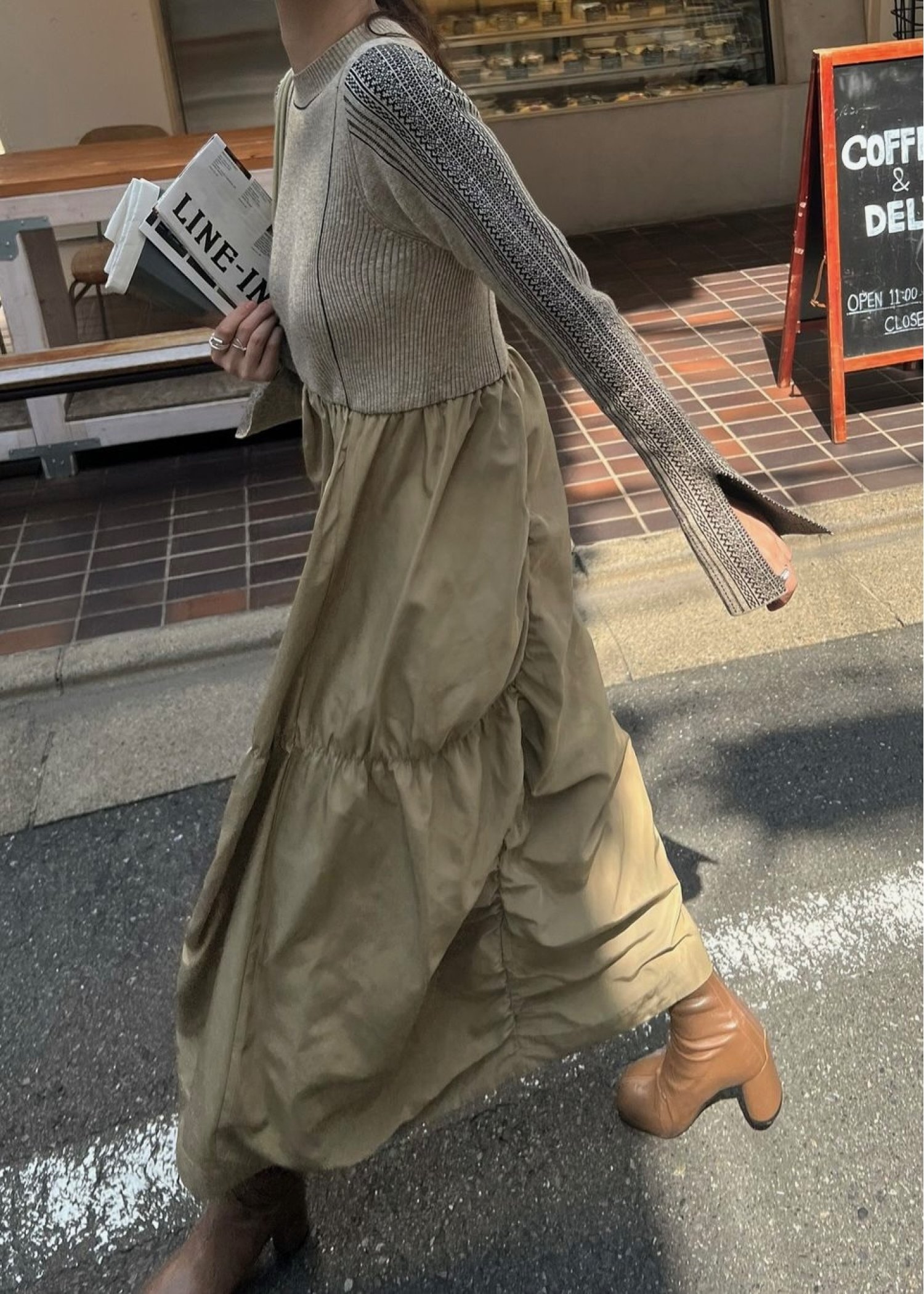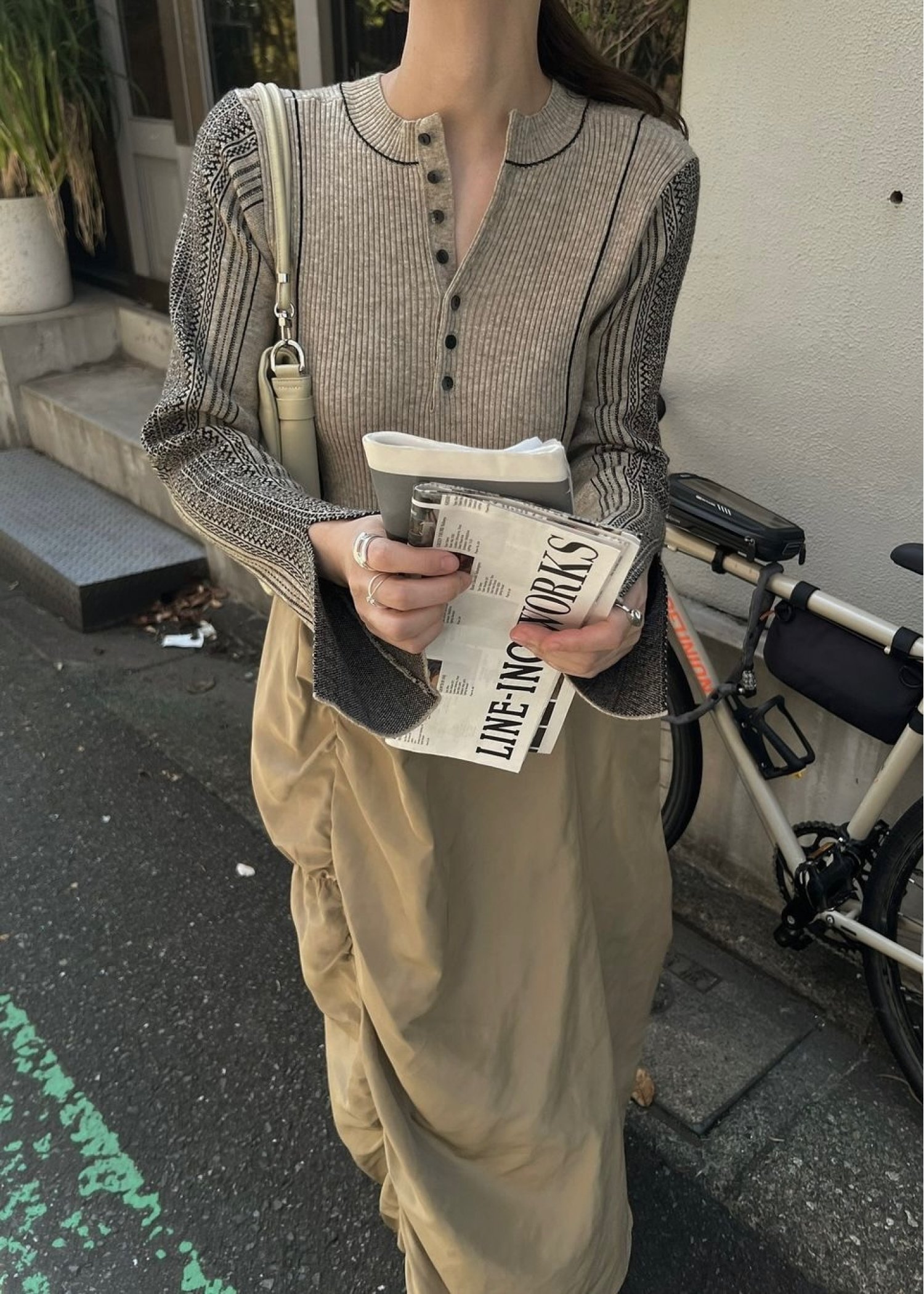 knit docking jacquard sleeve gather SK/OP