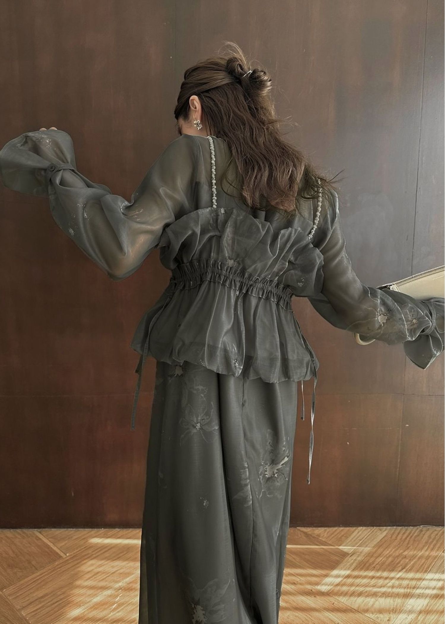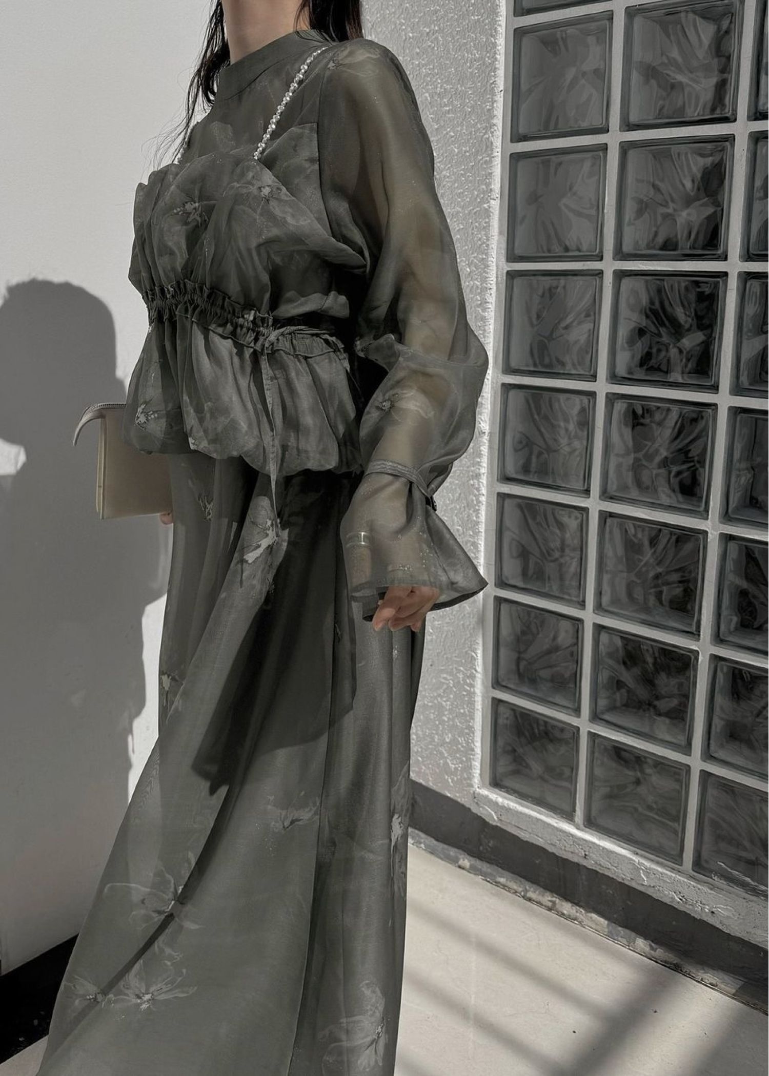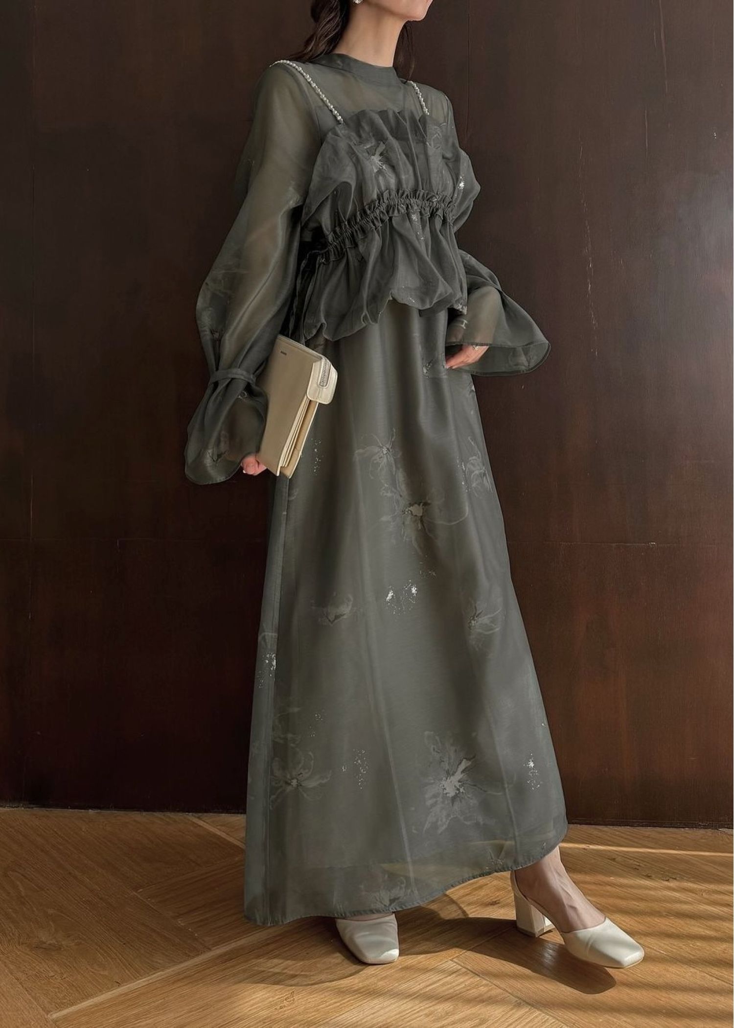 pearl shoulder camisole set original big flower print OP
