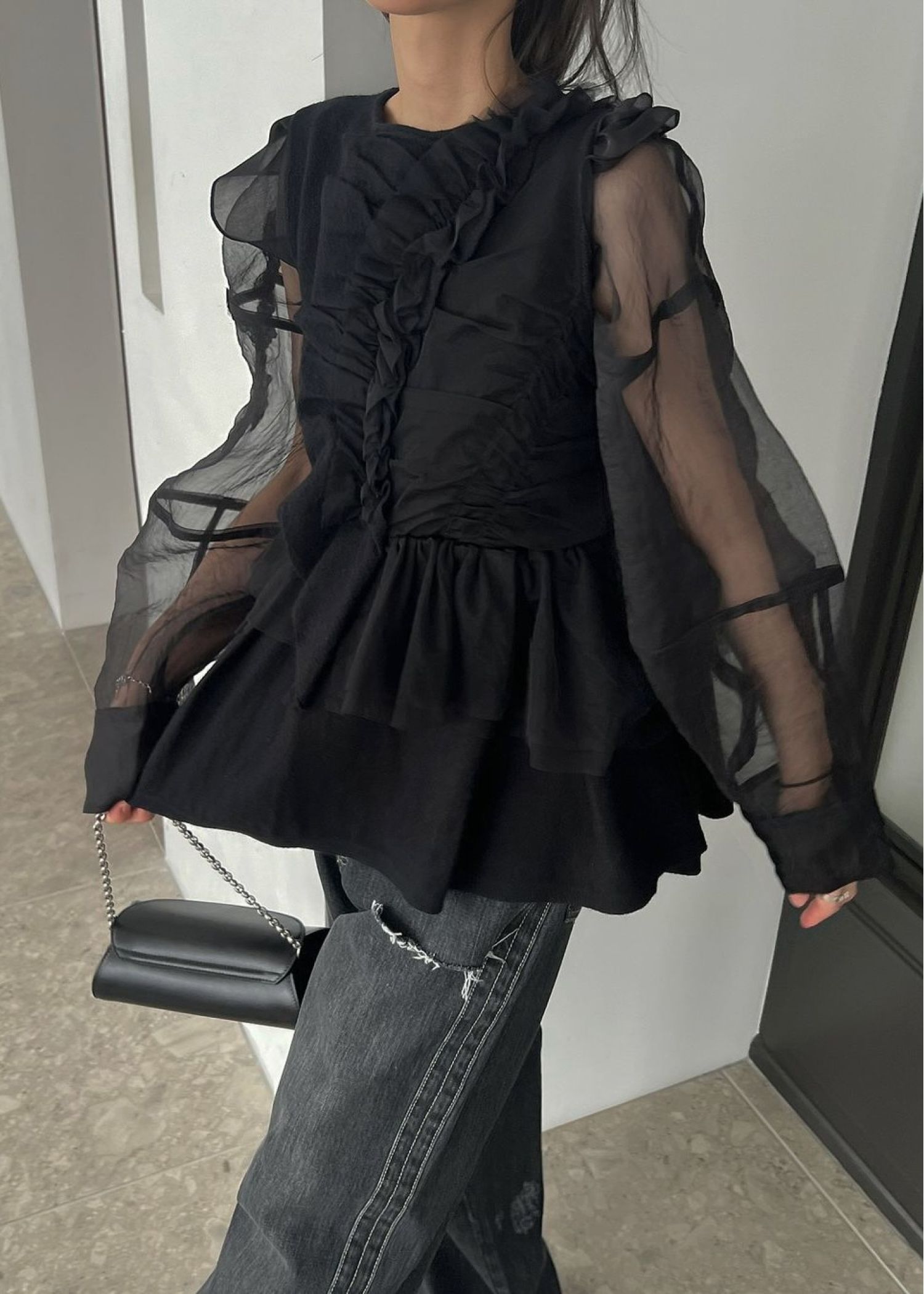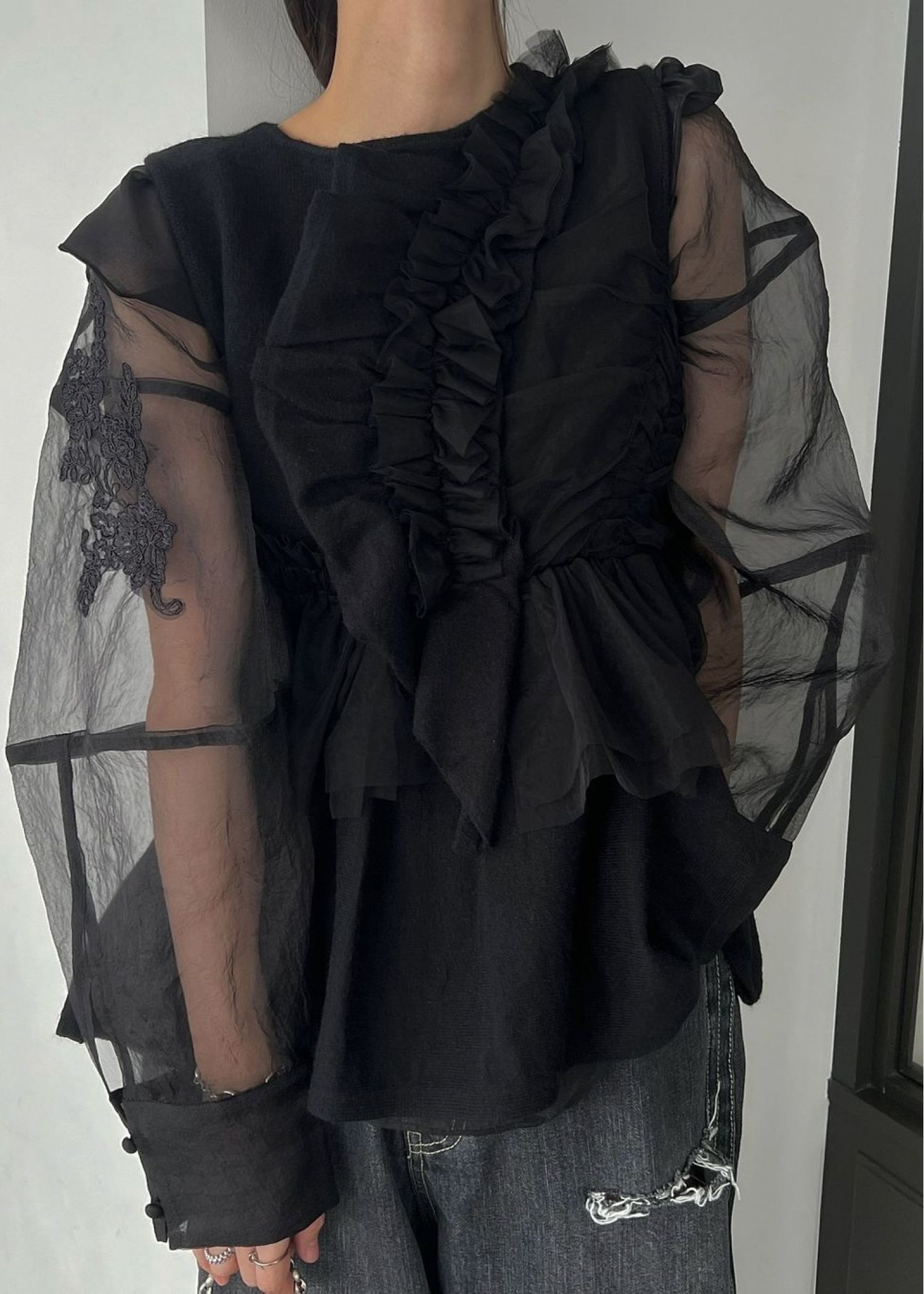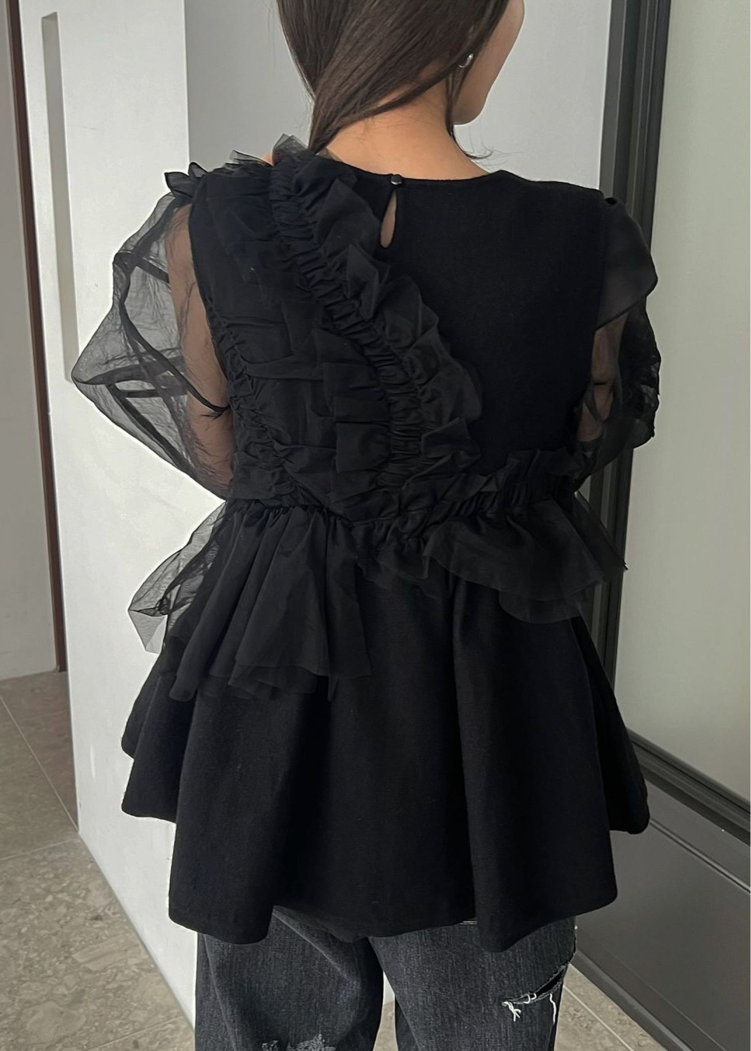 freely gather frill tulle combination no sleeve knit