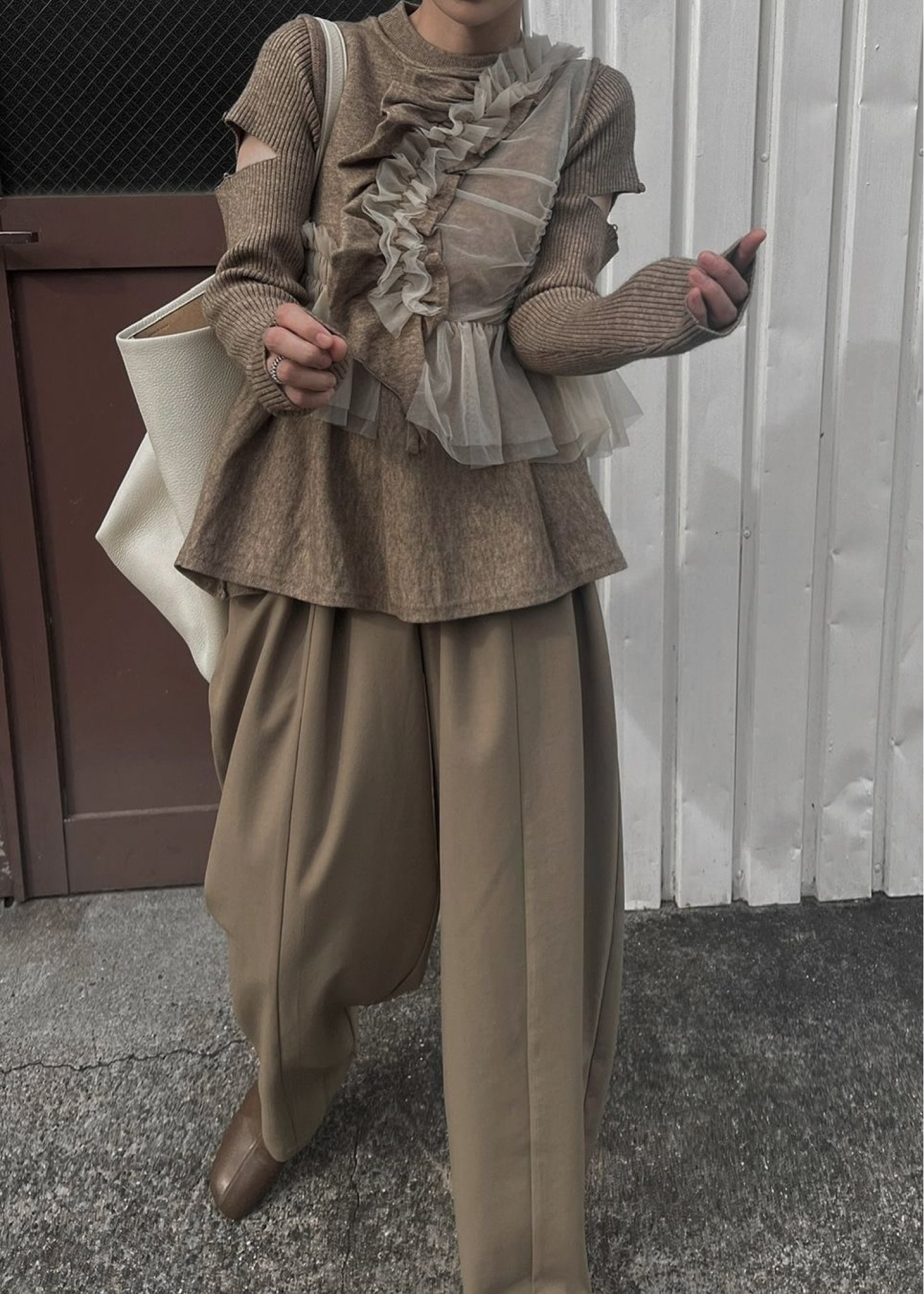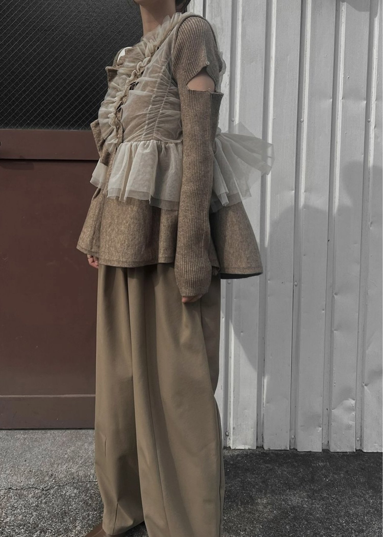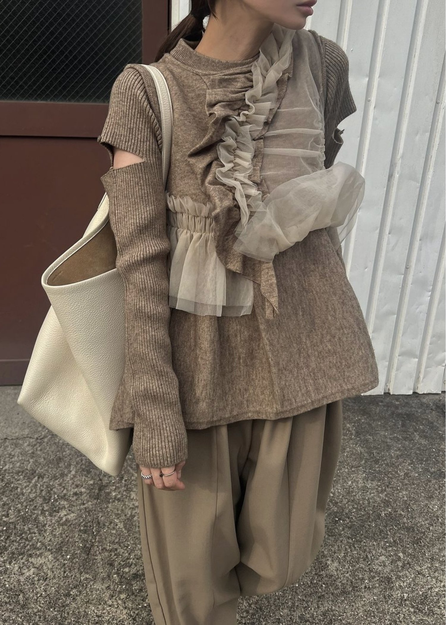 freely gather frill tulle combination no sleeve knit