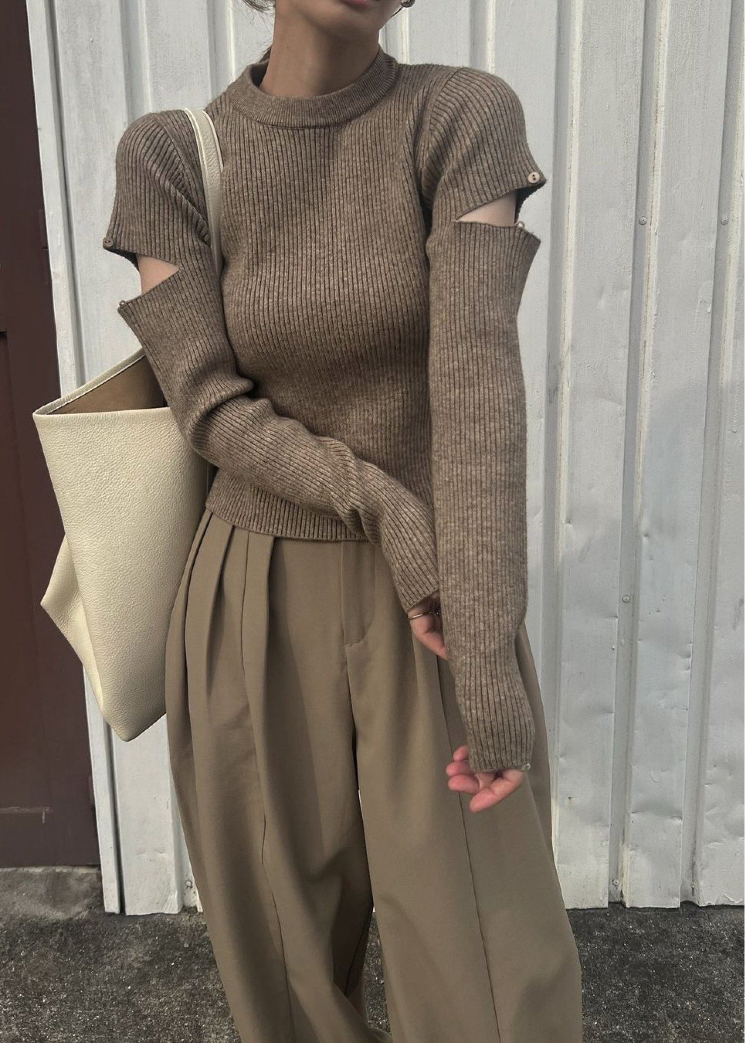 sleeve side notch rib knit