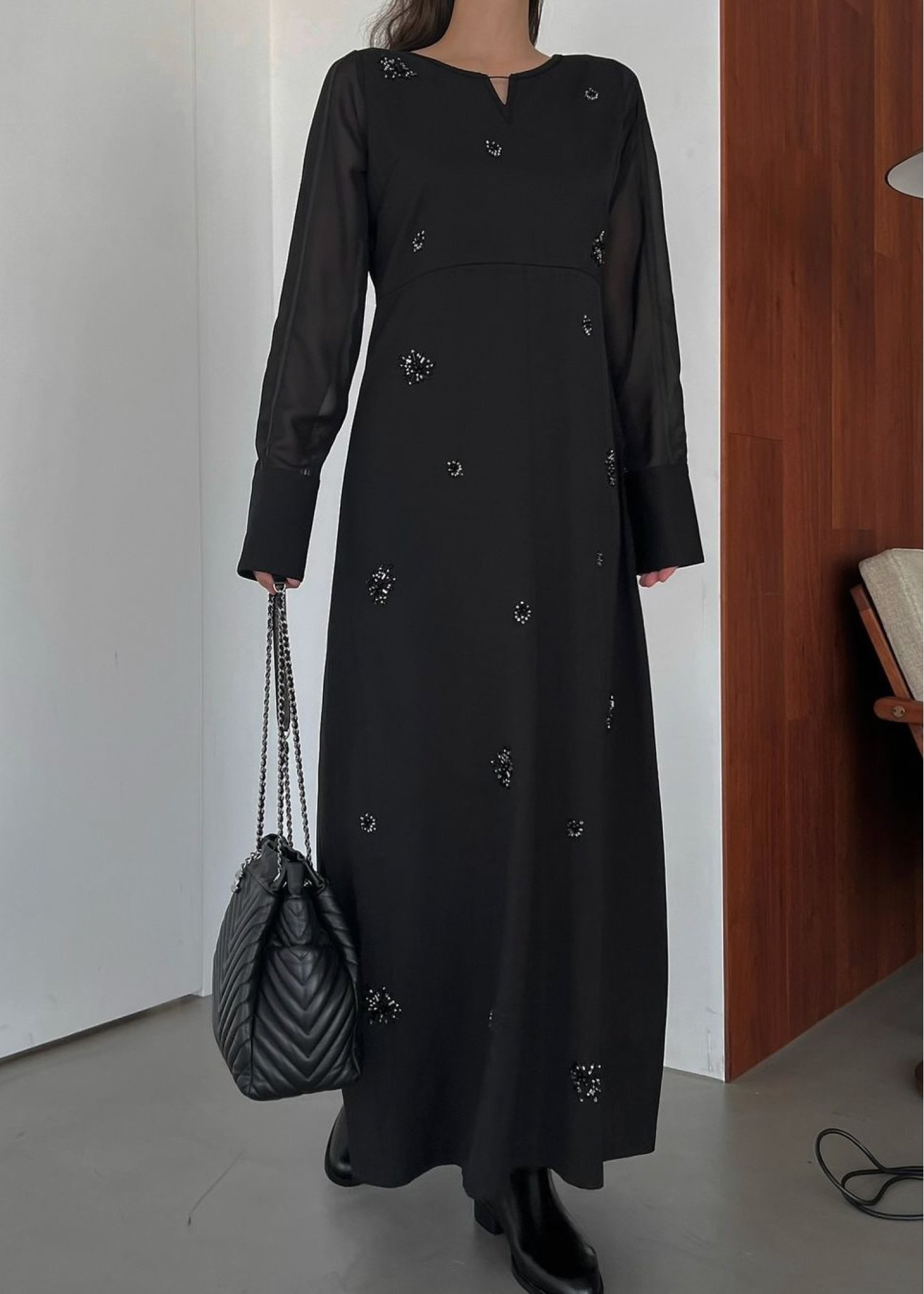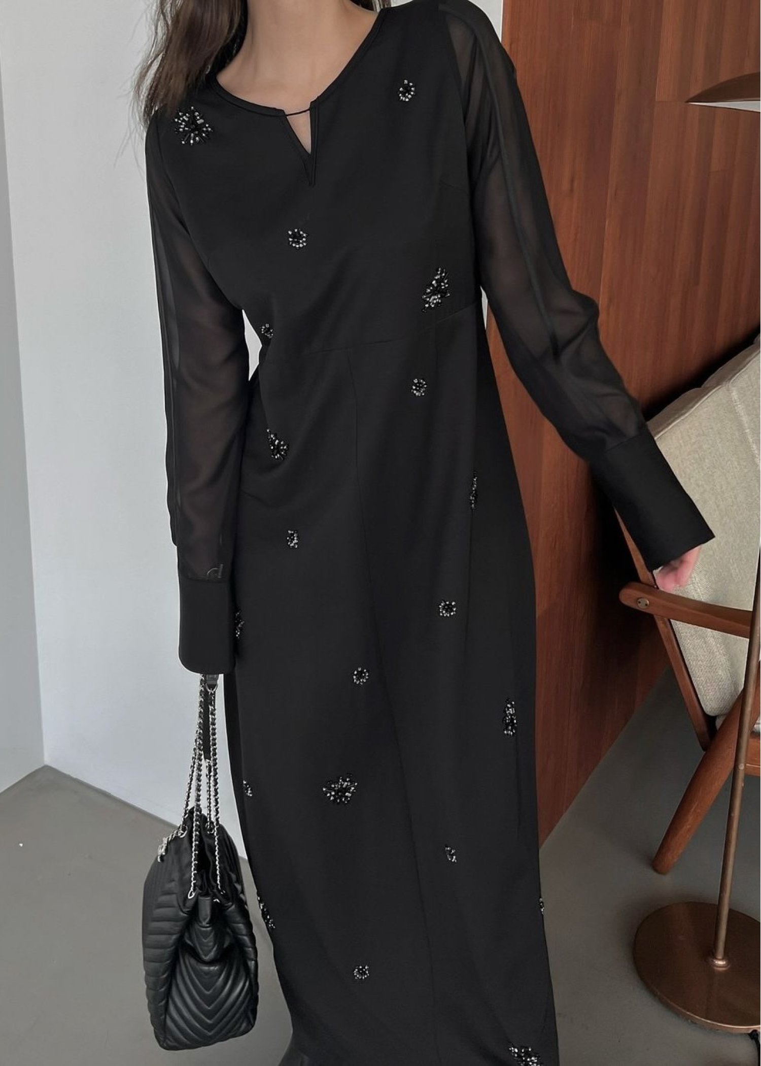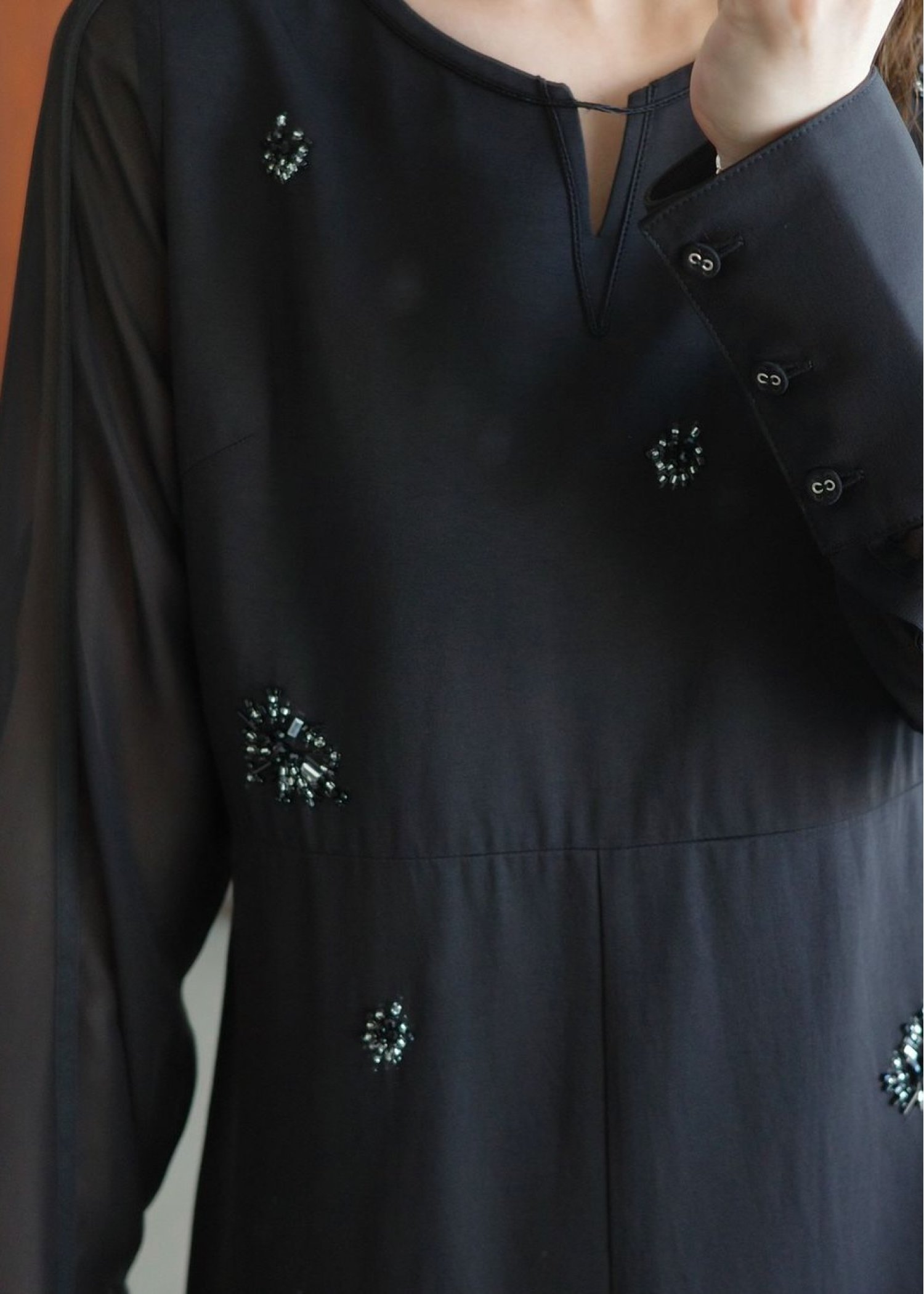 bijou motif sheer sleeve graceful OP