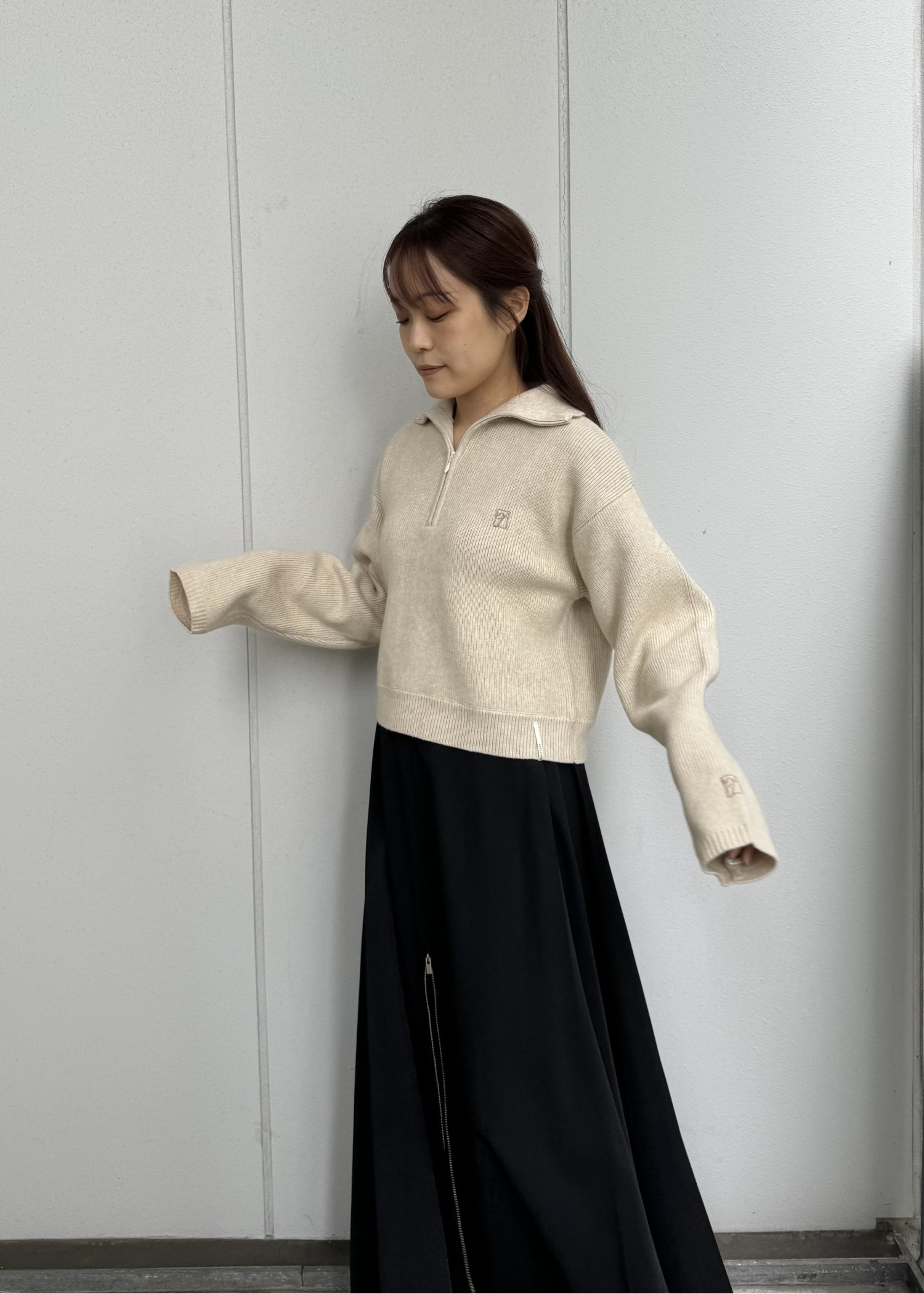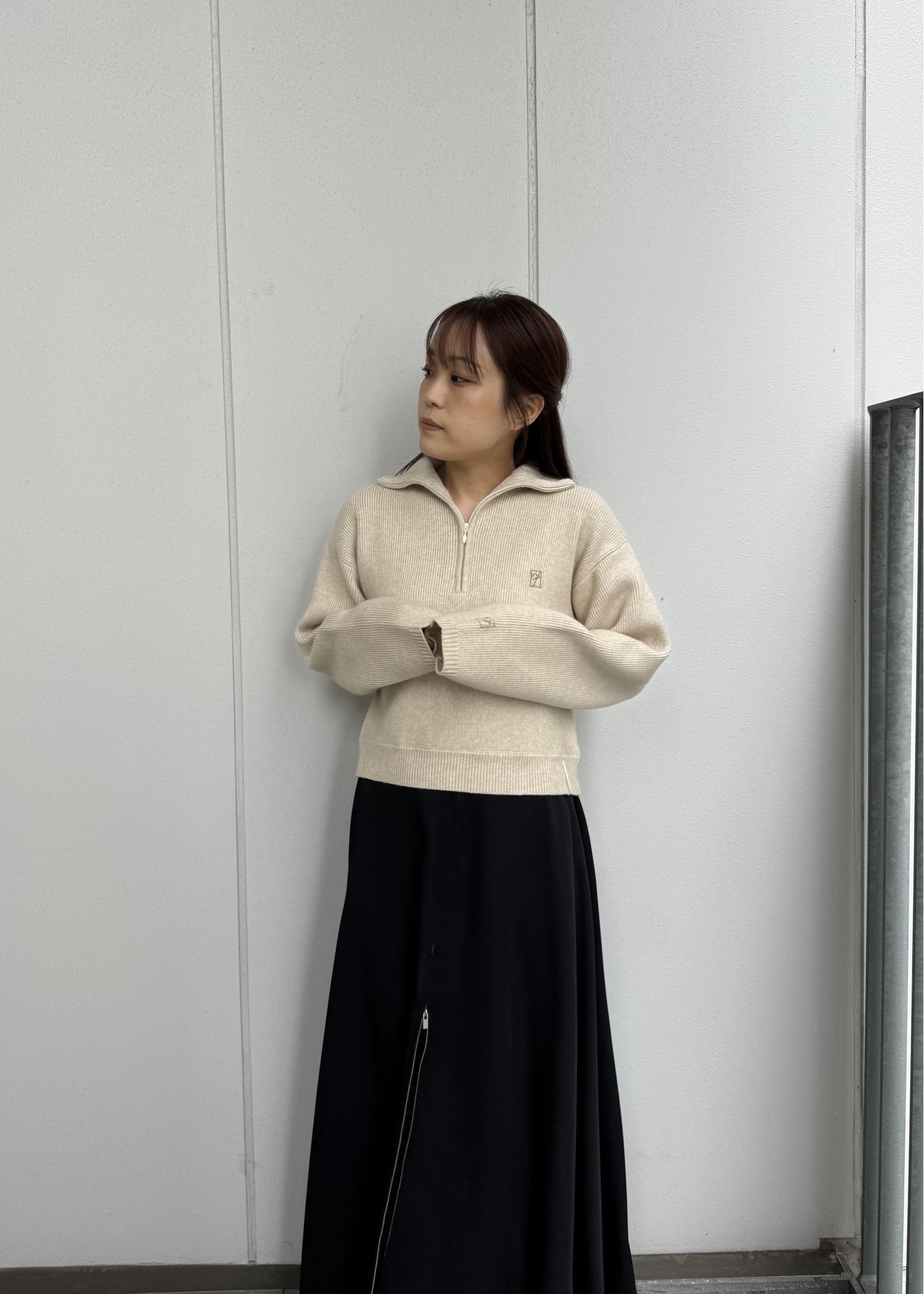 logo embroidery half zip high neck knit