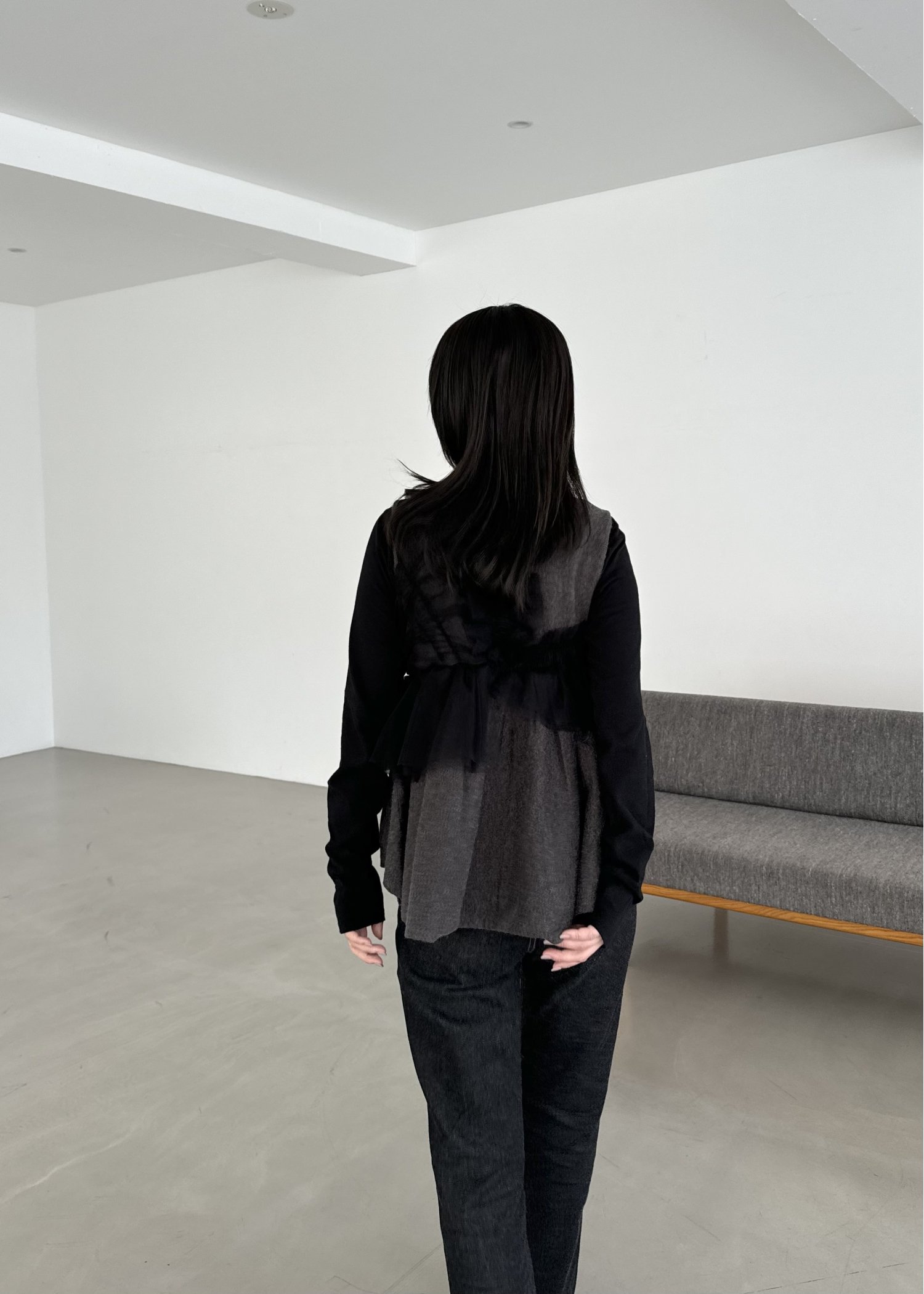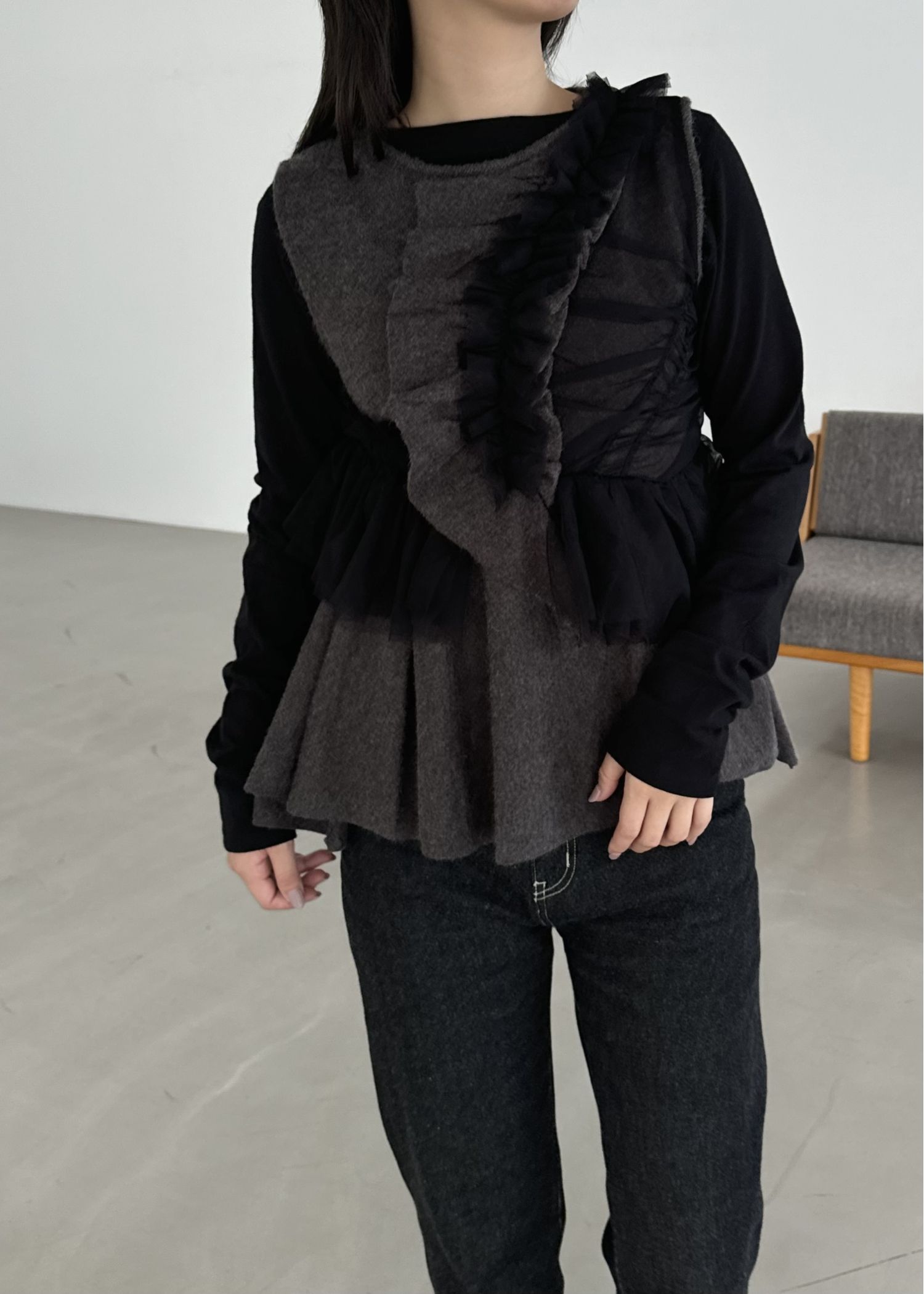 freely gather frill tulle combination no sleeve knit