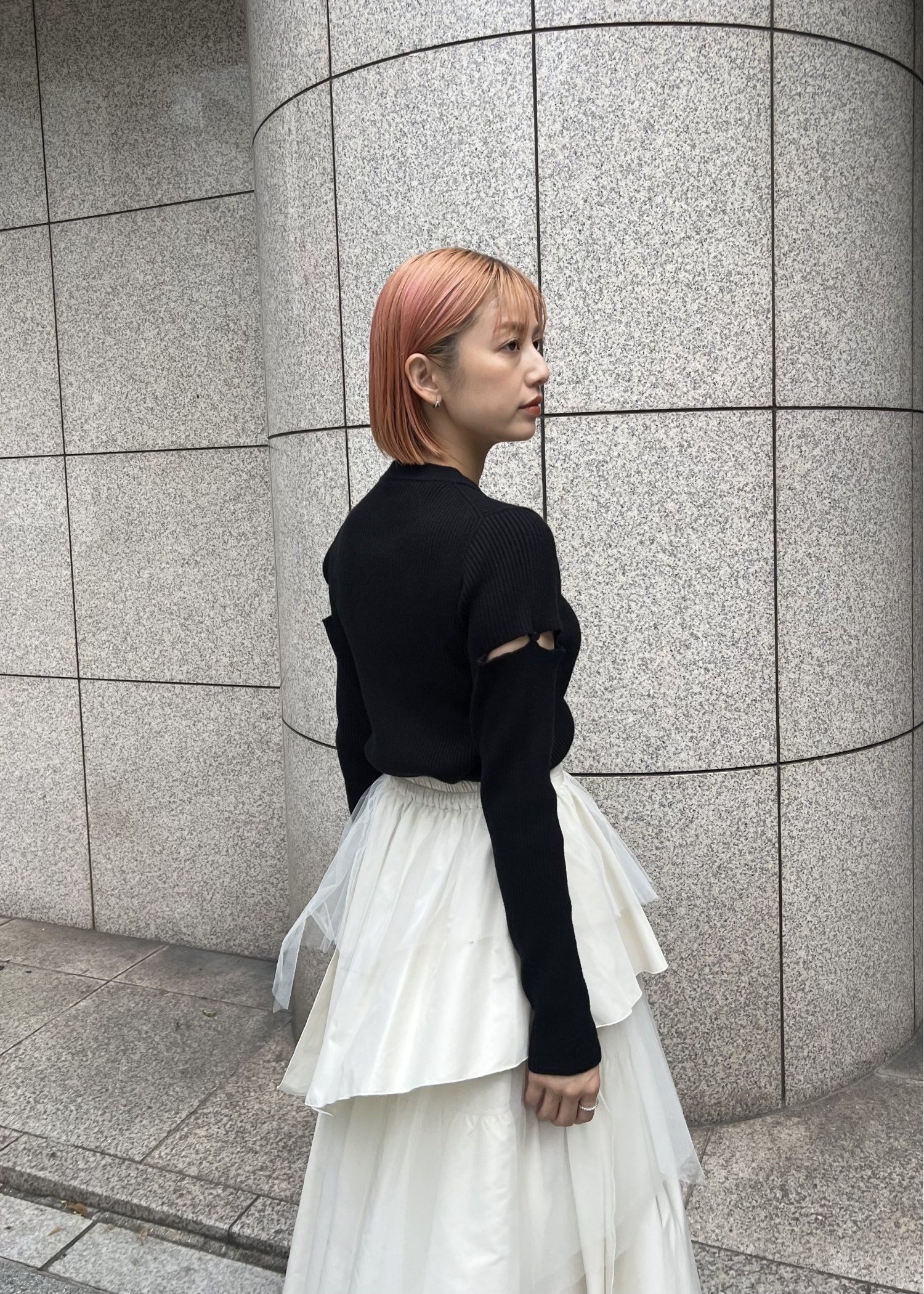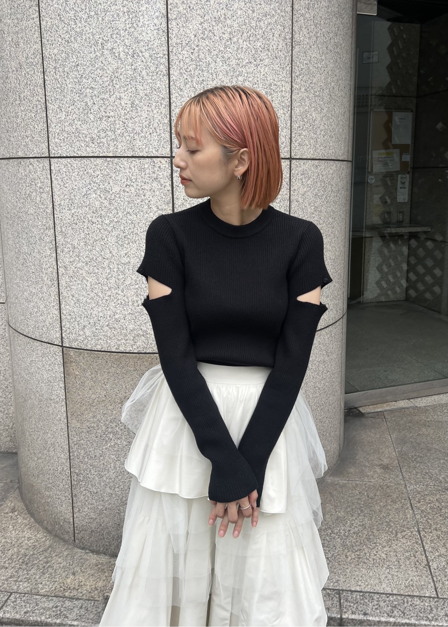sleeve side notch rib knit