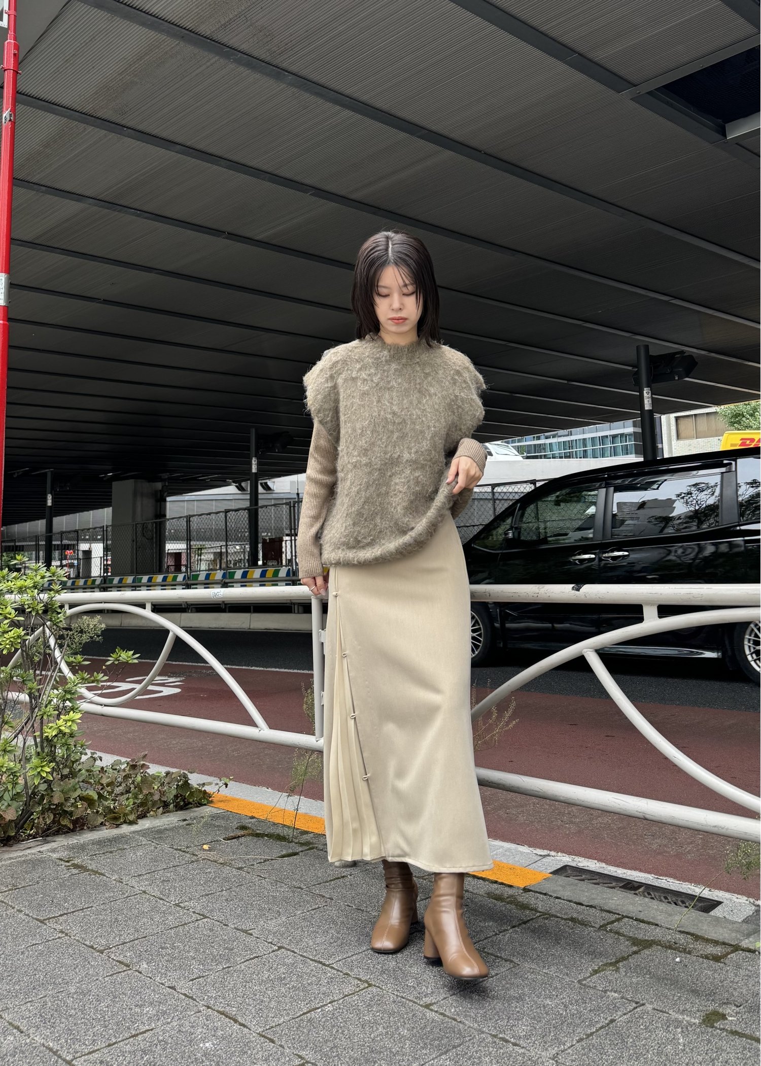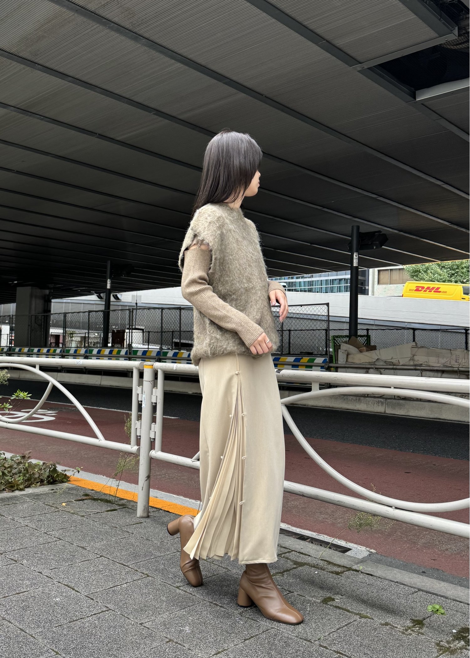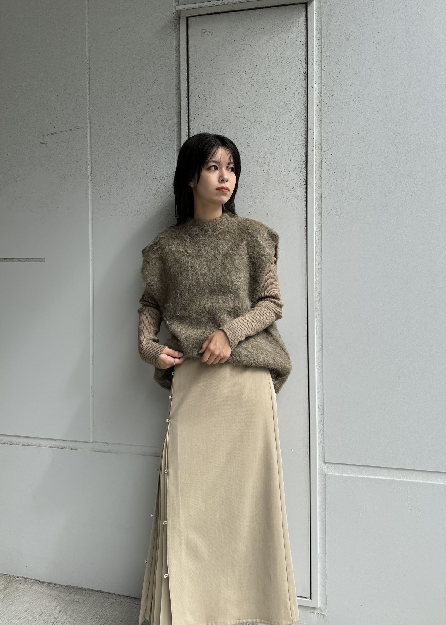 one side pleats peep through SK