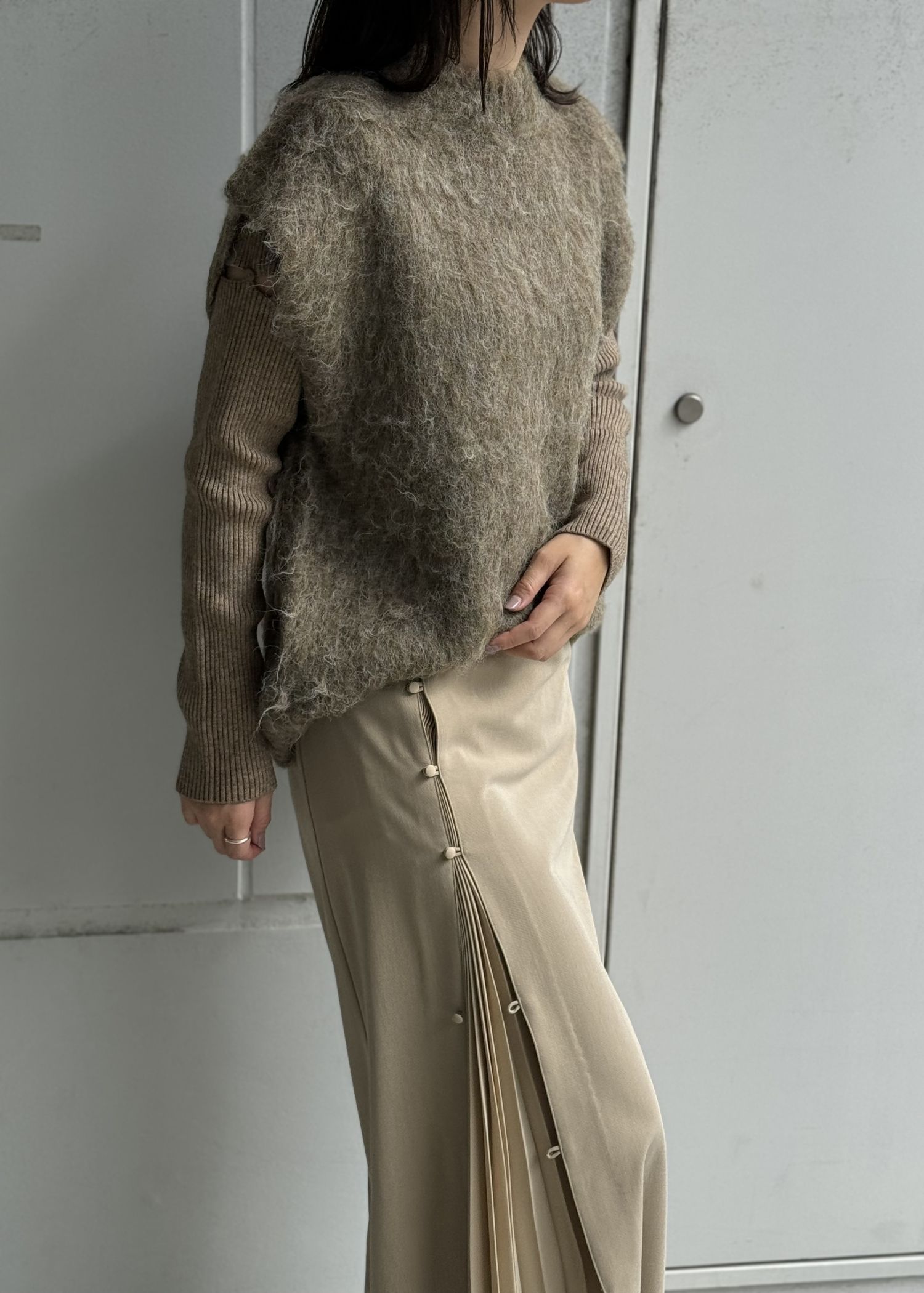 sleeve side notch rib knit